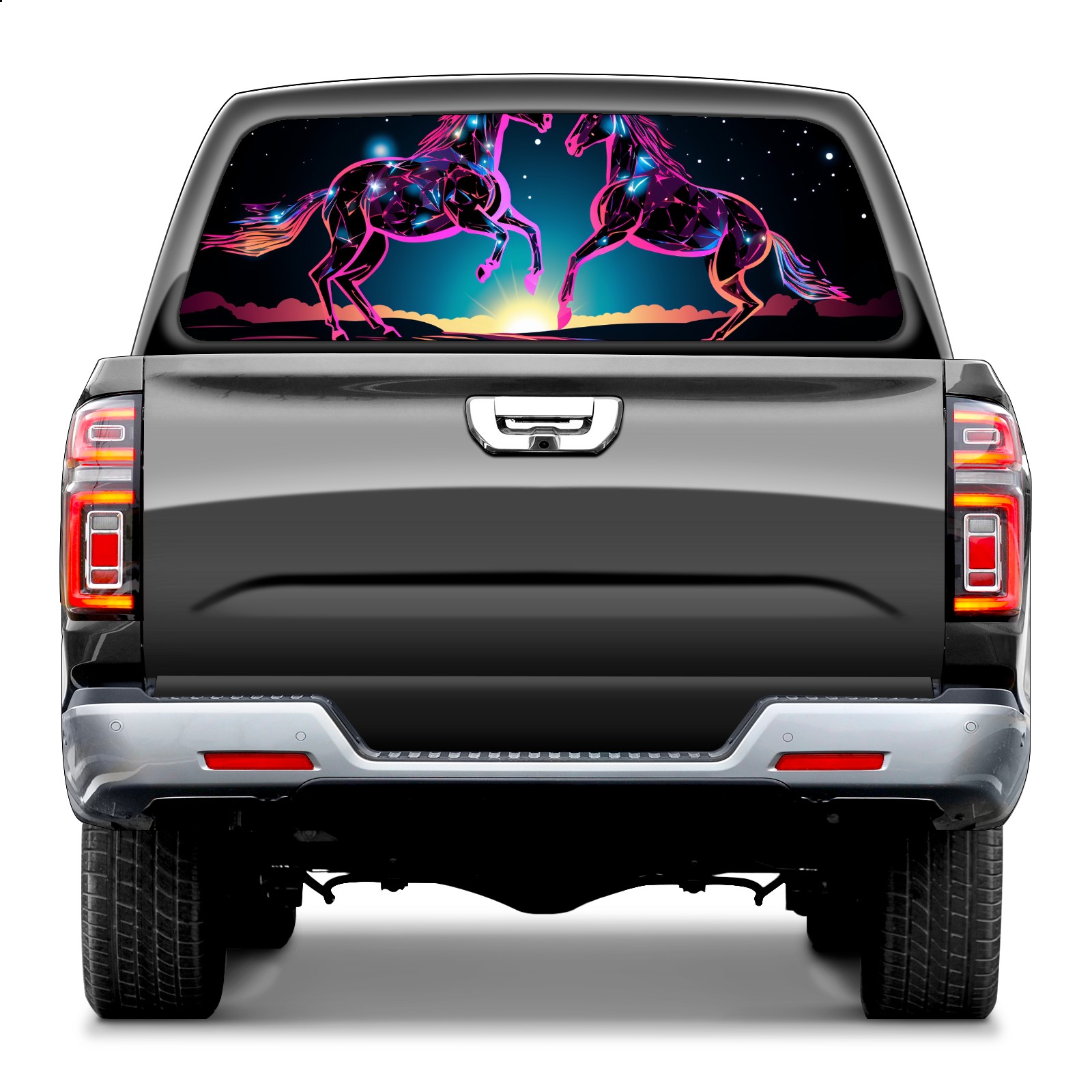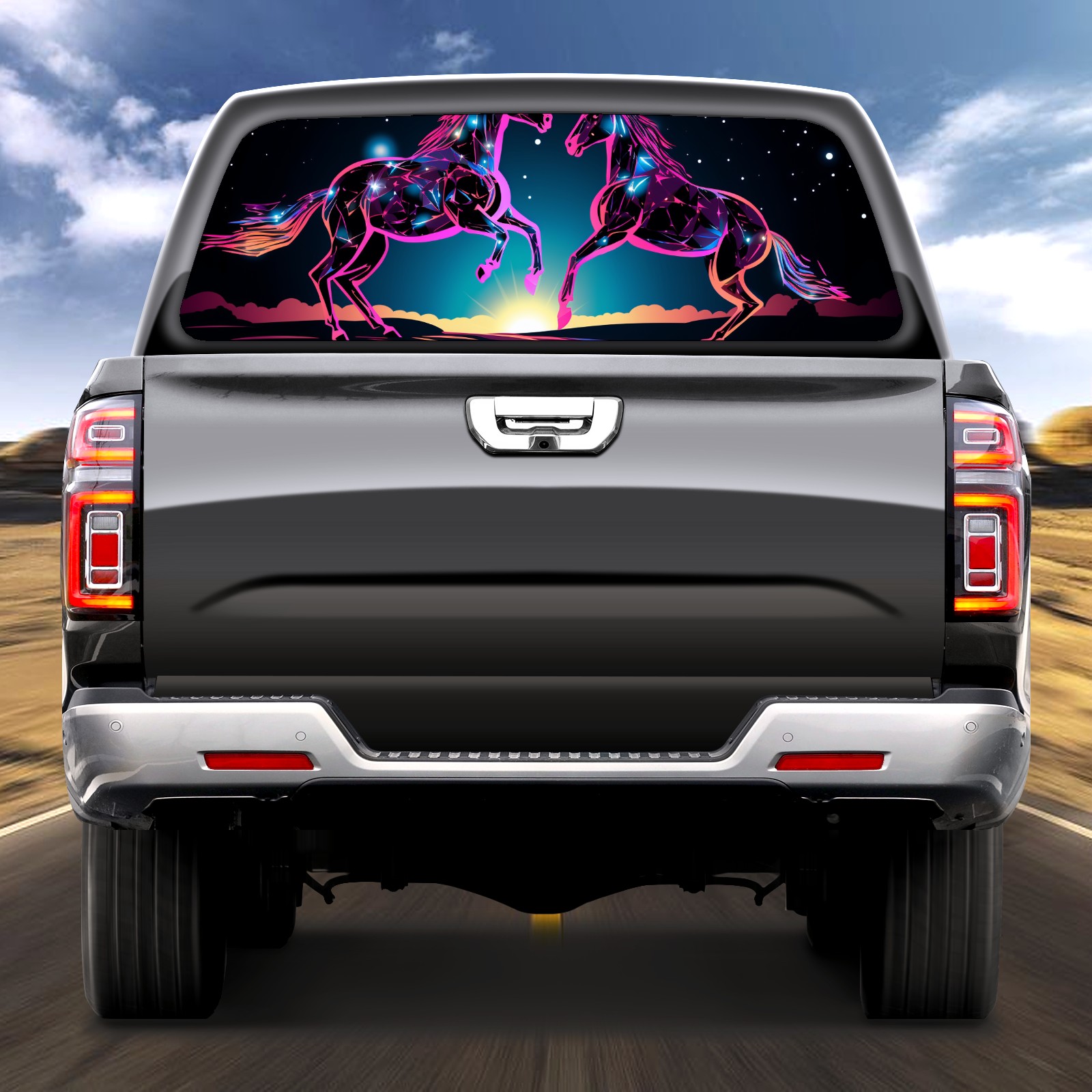 Truck Rear Window Graphics Decals Pickup Trucks Back Window Sticker Full Window Film Decal One Way Visual Waterproof Car Rear Tint Horse (27)