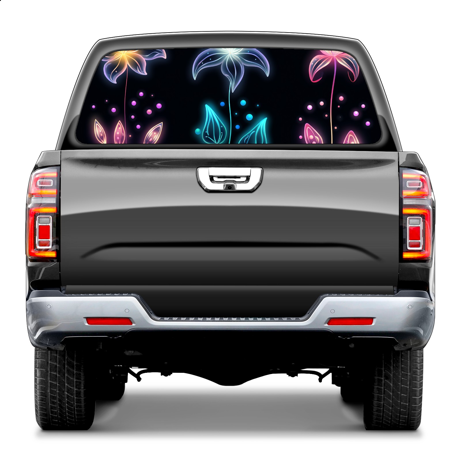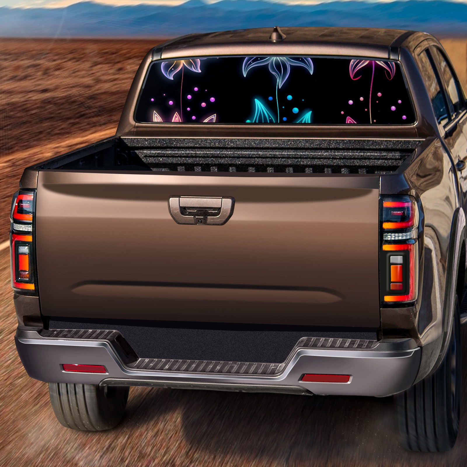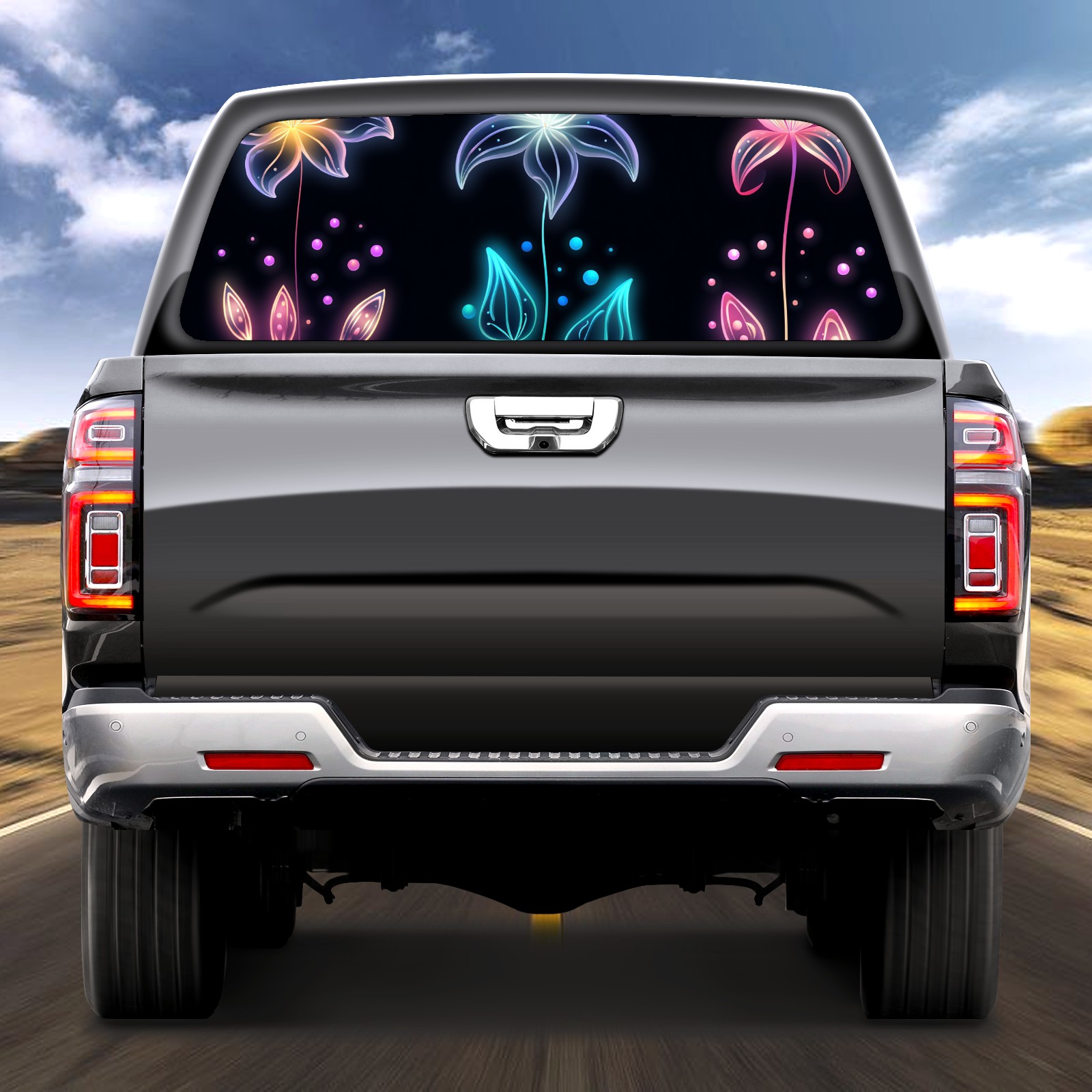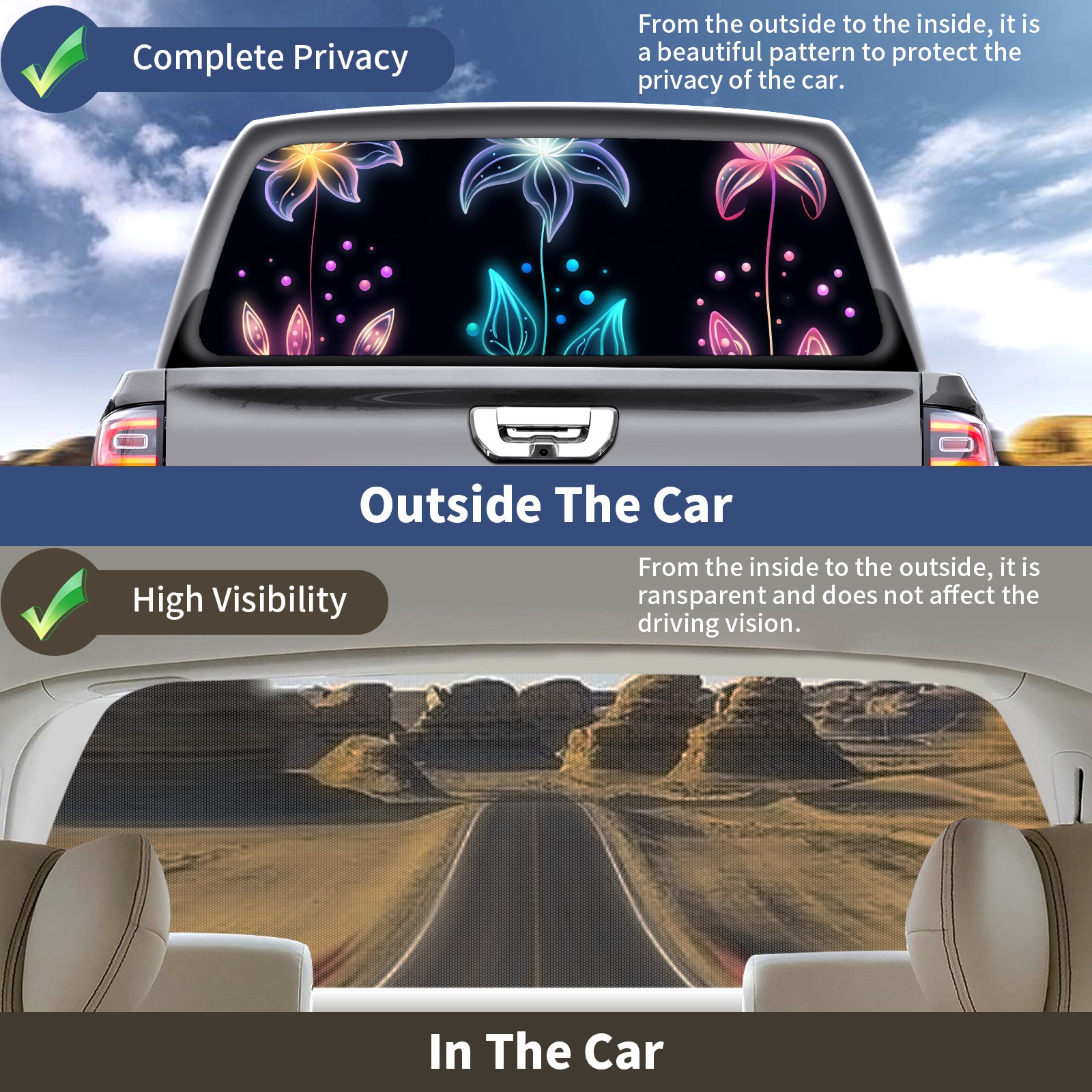 Truck Rear Window Graphics Decals Pickup Trucks Back Window Sticker Full Window Film Decal One Way Visual Waterproof Car Rear Tint Flower (139)