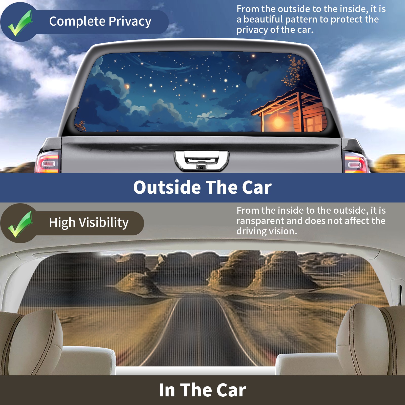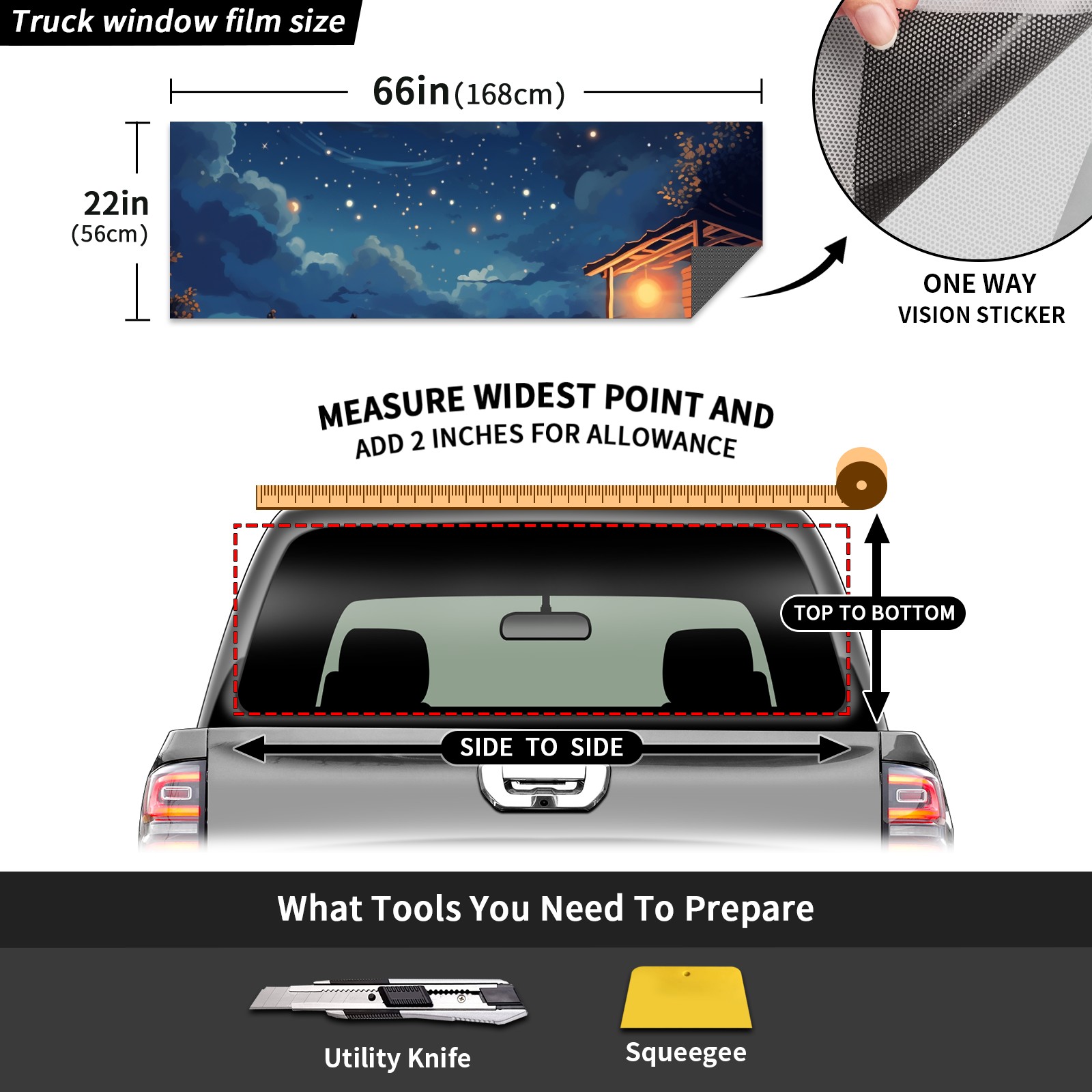 Truck Rear Window Graphics Decals Pickup Trucks Back Window Sticker Full Window Film Decal One Way Visual Waterproof Car Rear Tint Night