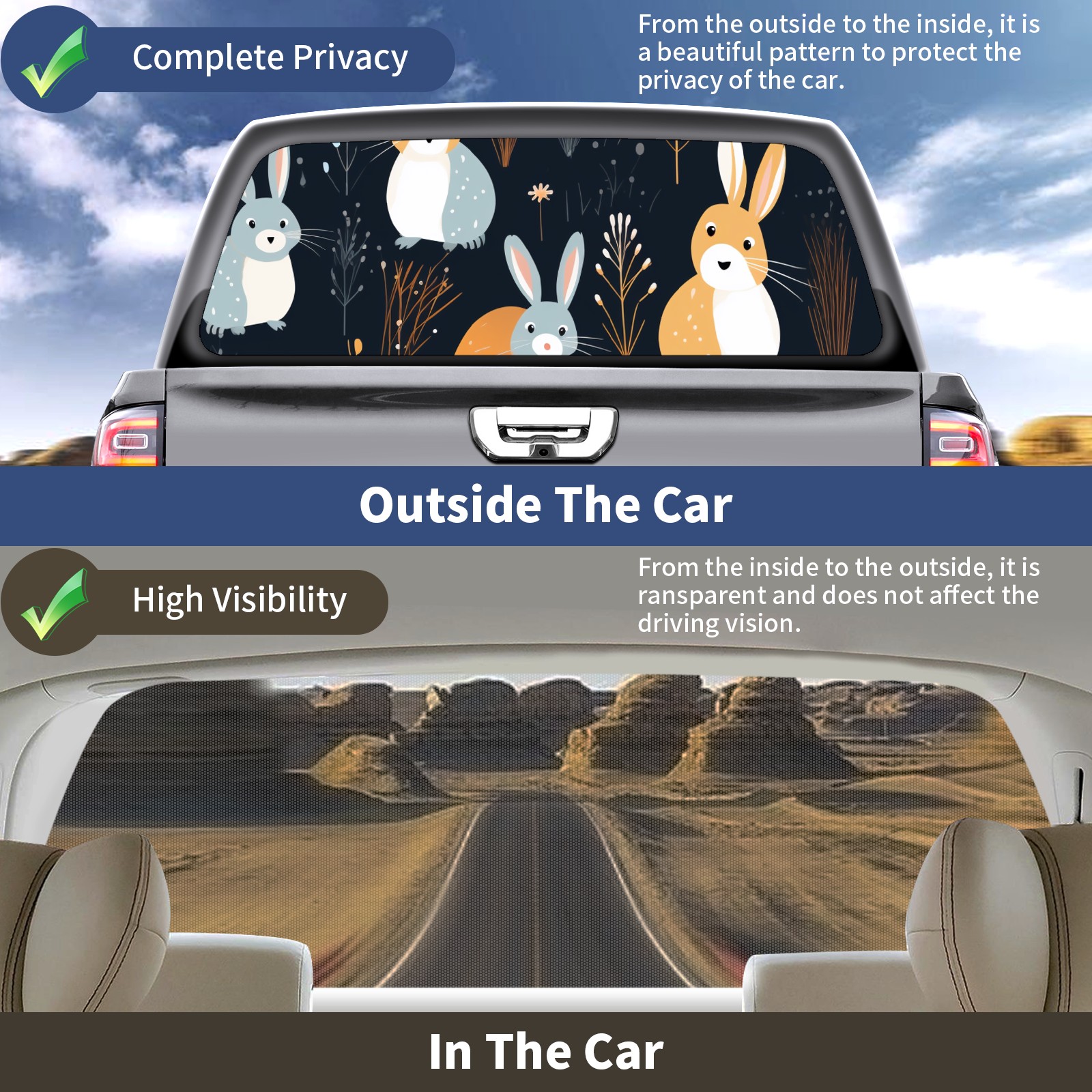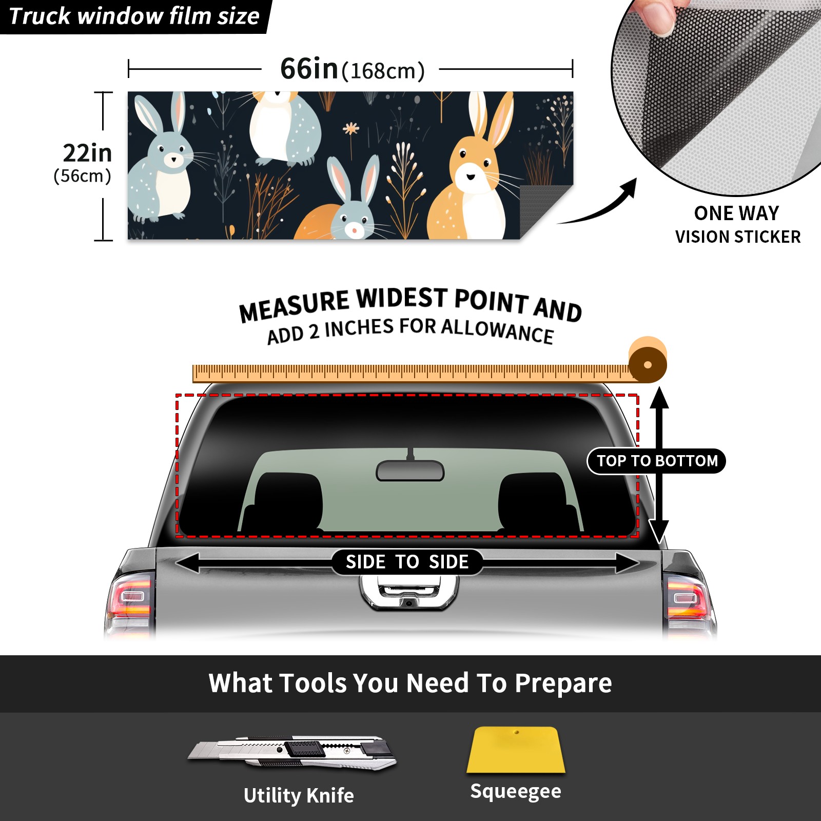 Truck Rear Window Graphics Decals Pickup Trucks Back Window Sticker Full Window Film Decal One Way Visual Waterproof Car Rear Tint Easter 257
