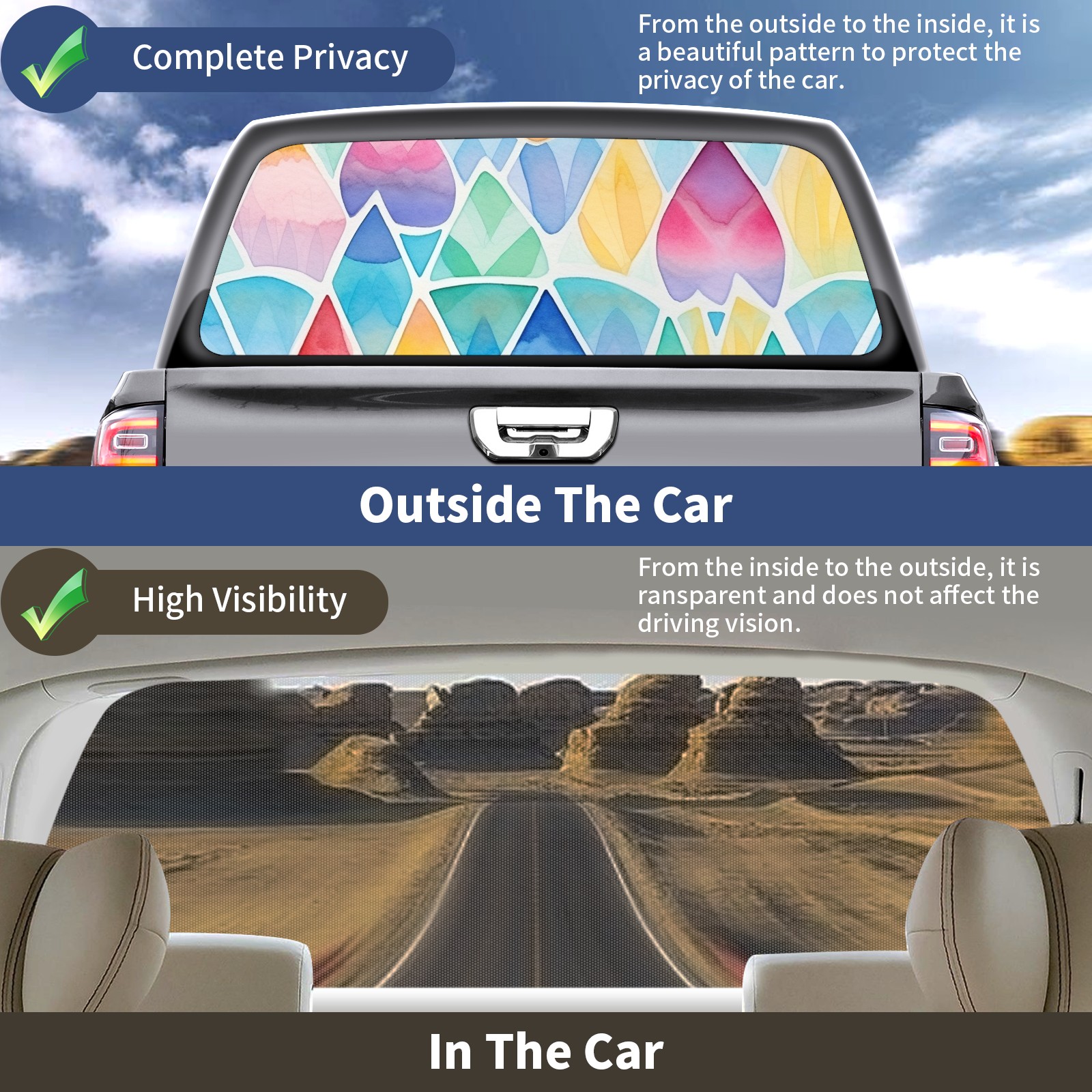 Truck Rear Window Graphics Decals Pickup Trucks Back Window Sticker Full Window Film Decal One Way Visual Waterproof Car Rear Tint Easter 210