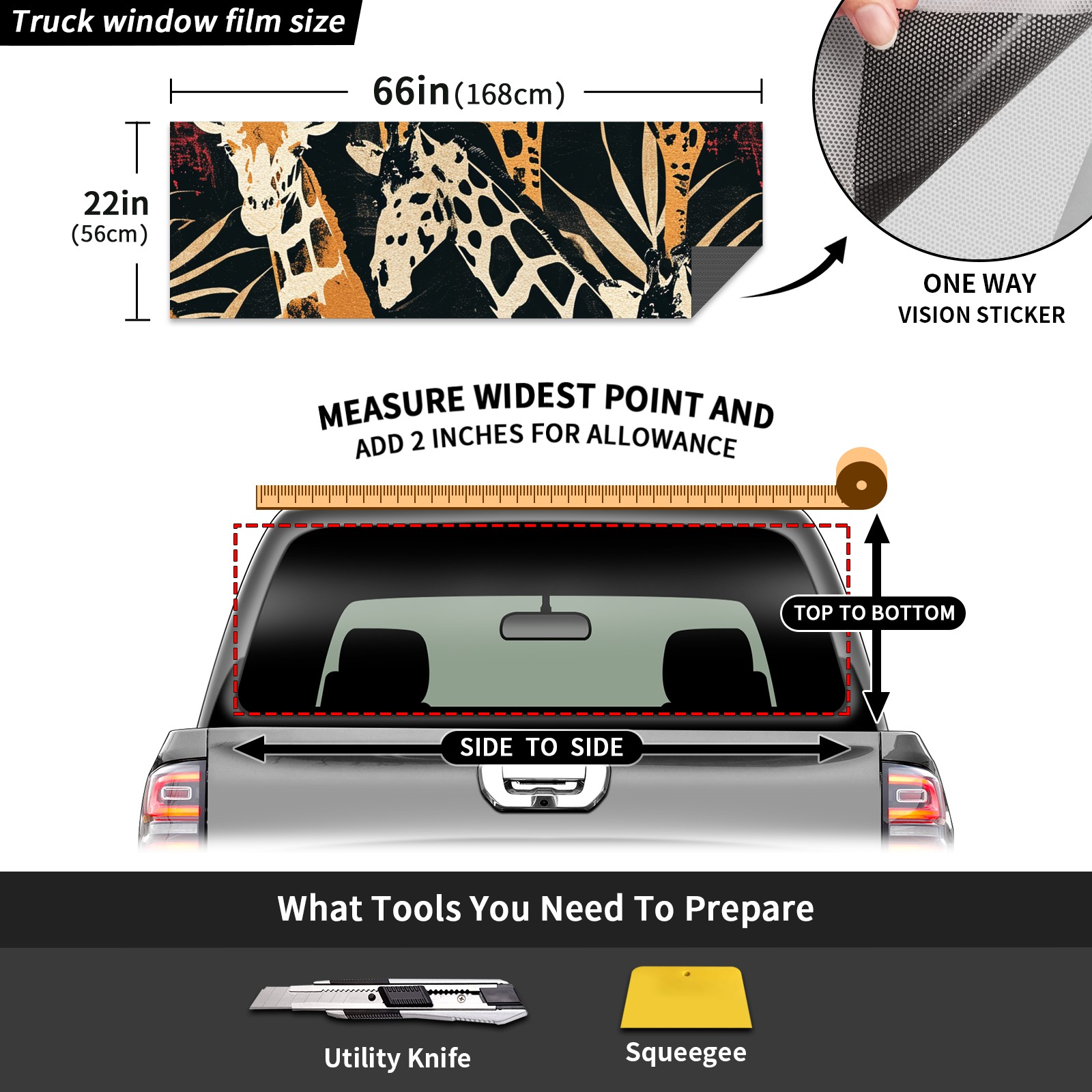 Truck Rear Window Graphics Decals Pickup Trucks Back Window Sticker Full Window Film Decal One Way Visual Waterproof Car Rear Tint Easter 66