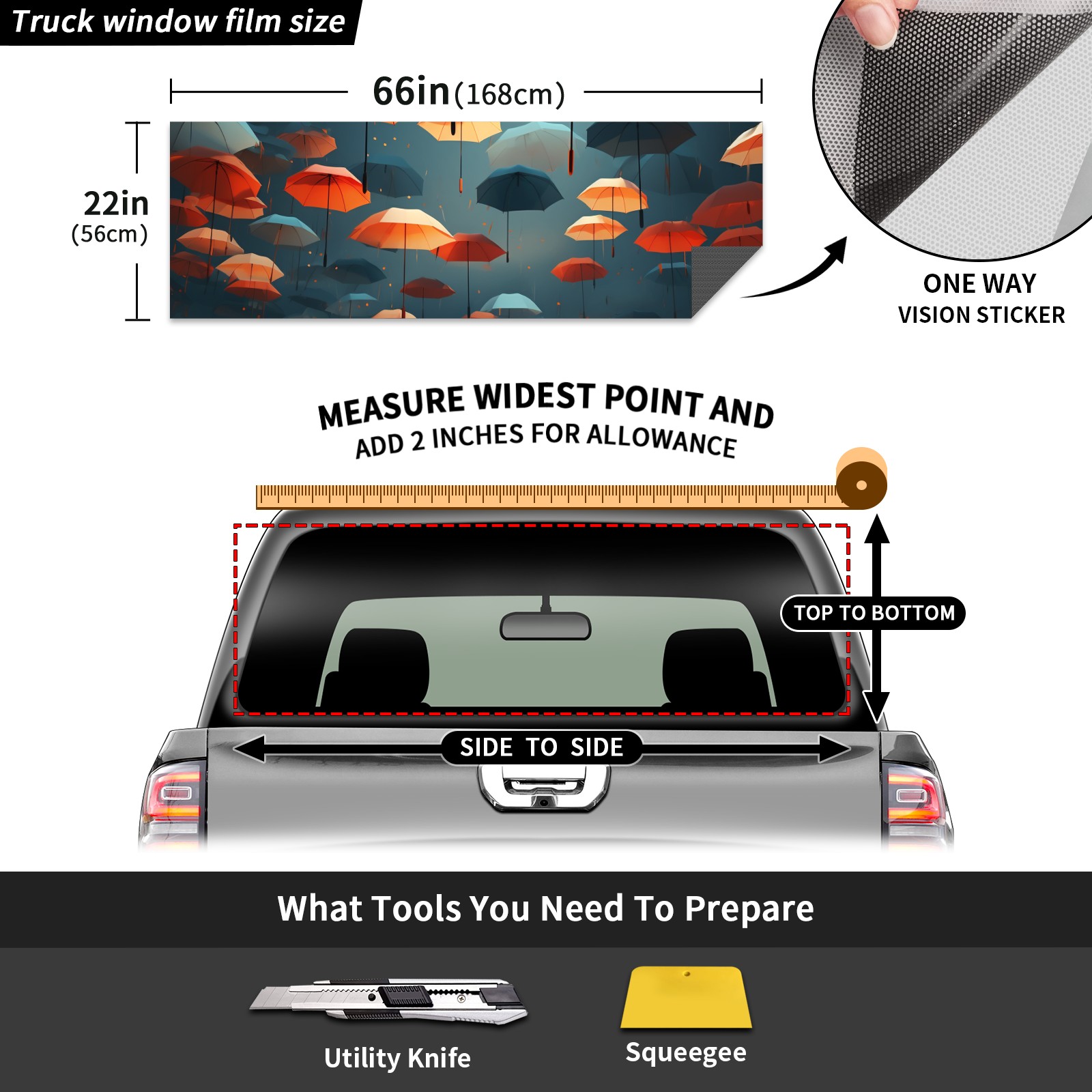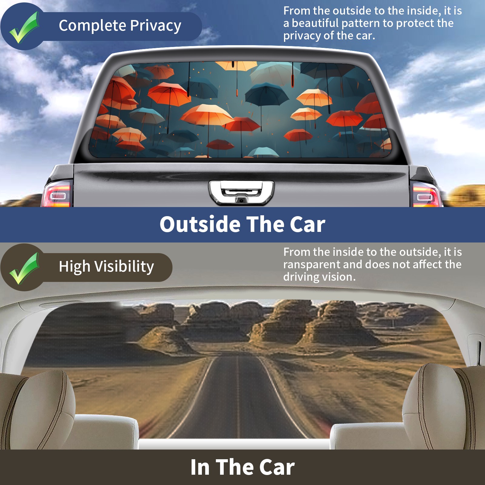 Truck Rear Window Graphics Decals Pickup Trucks Back Window Sticker Full Window Film Decal One Way Visual Waterproof Car Rear Tint Umbrellas