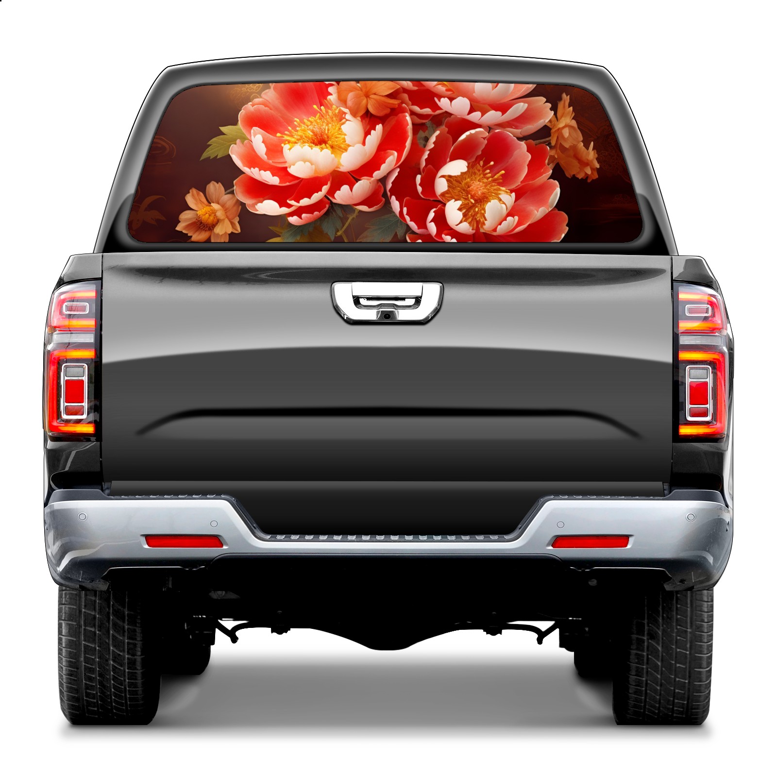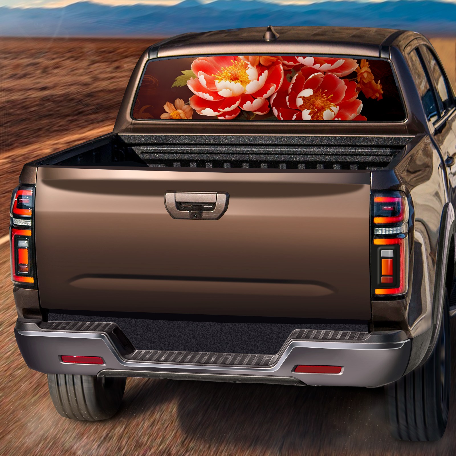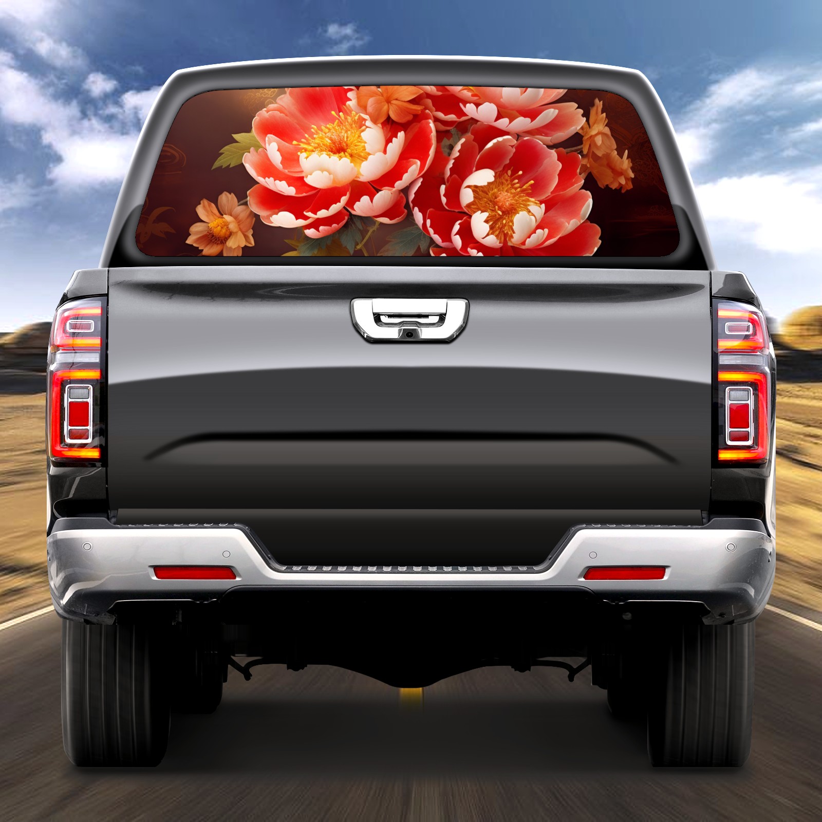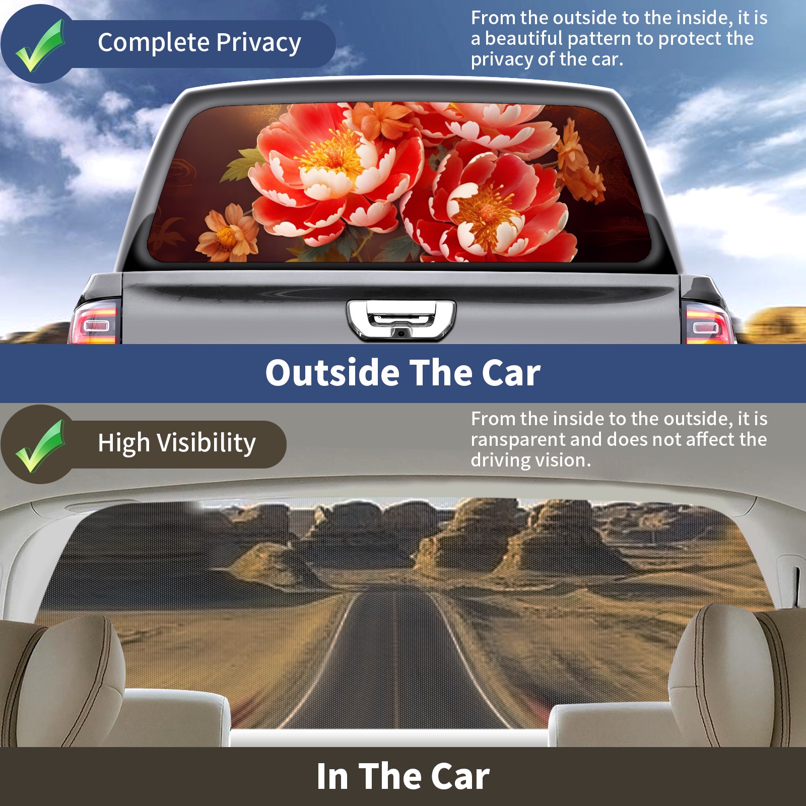 Truck Rear Window Graphics Decals Pickup Trucks Back Window Sticker Full Window Film Decal One Way Visual Waterproof Car Rear Tint Peonies