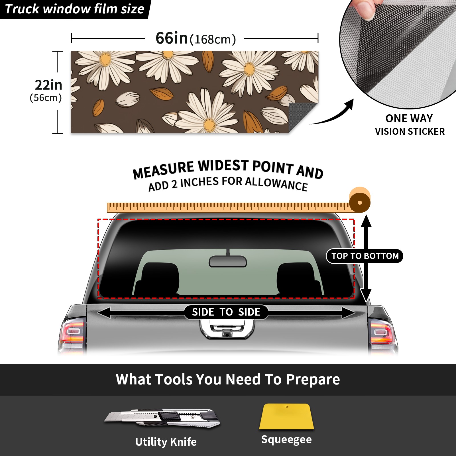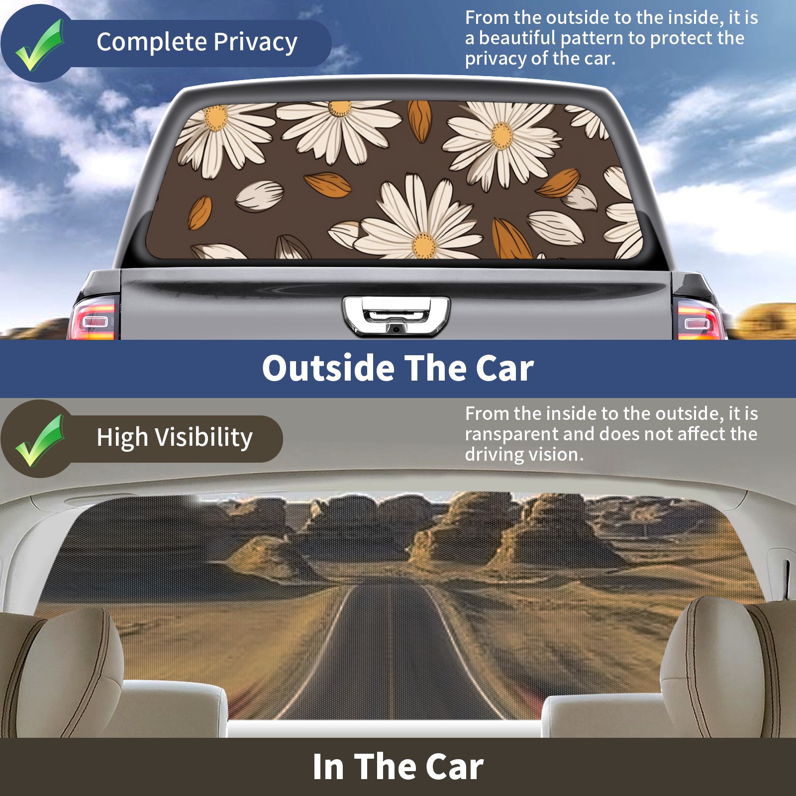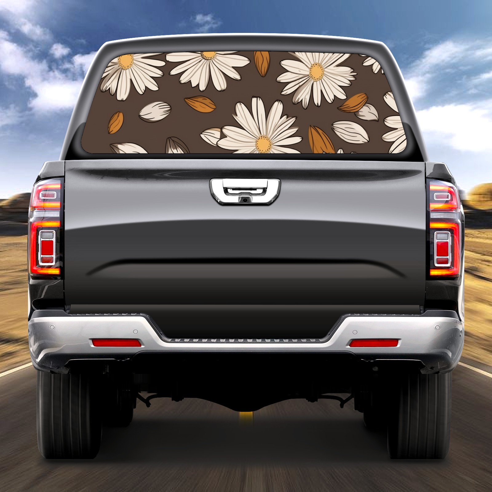 Truck Rear Window Graphics Decals Pickup Trucks Back Window Sticker Full Window Film Decal One Way Visual Waterproof Car Rear Tint Daisy Flowers 2
