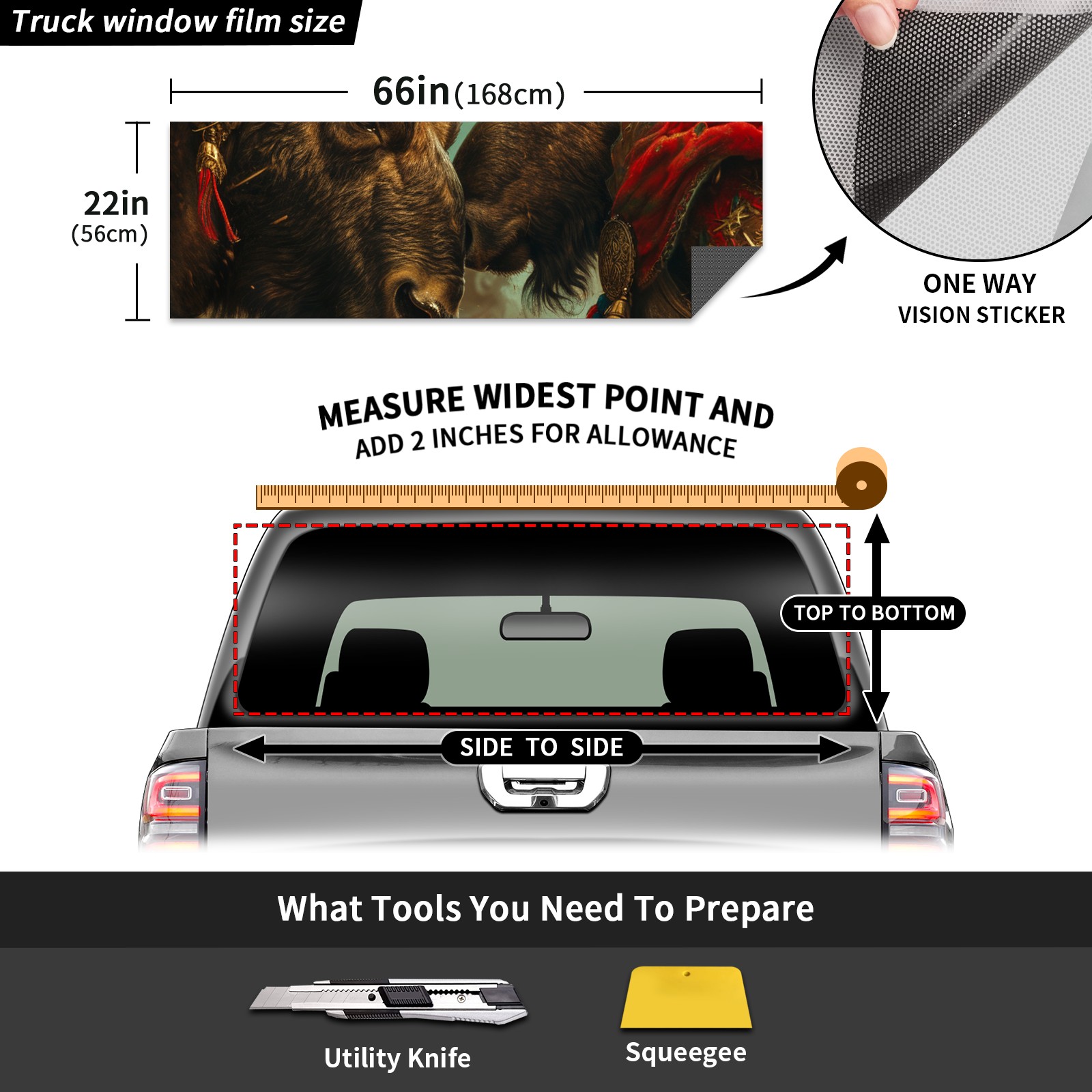 Truck Rear Window Graphics Decals Pickup Trucks Back Window Sticker Full Window Film Decal One Way Visual Waterproof Car Rear Tint Animal