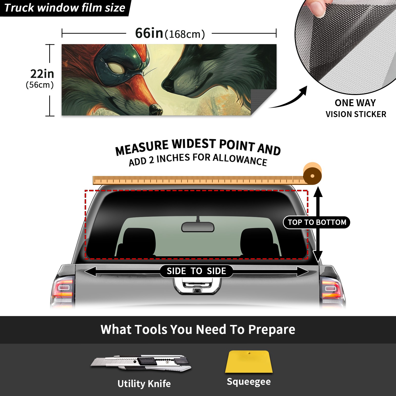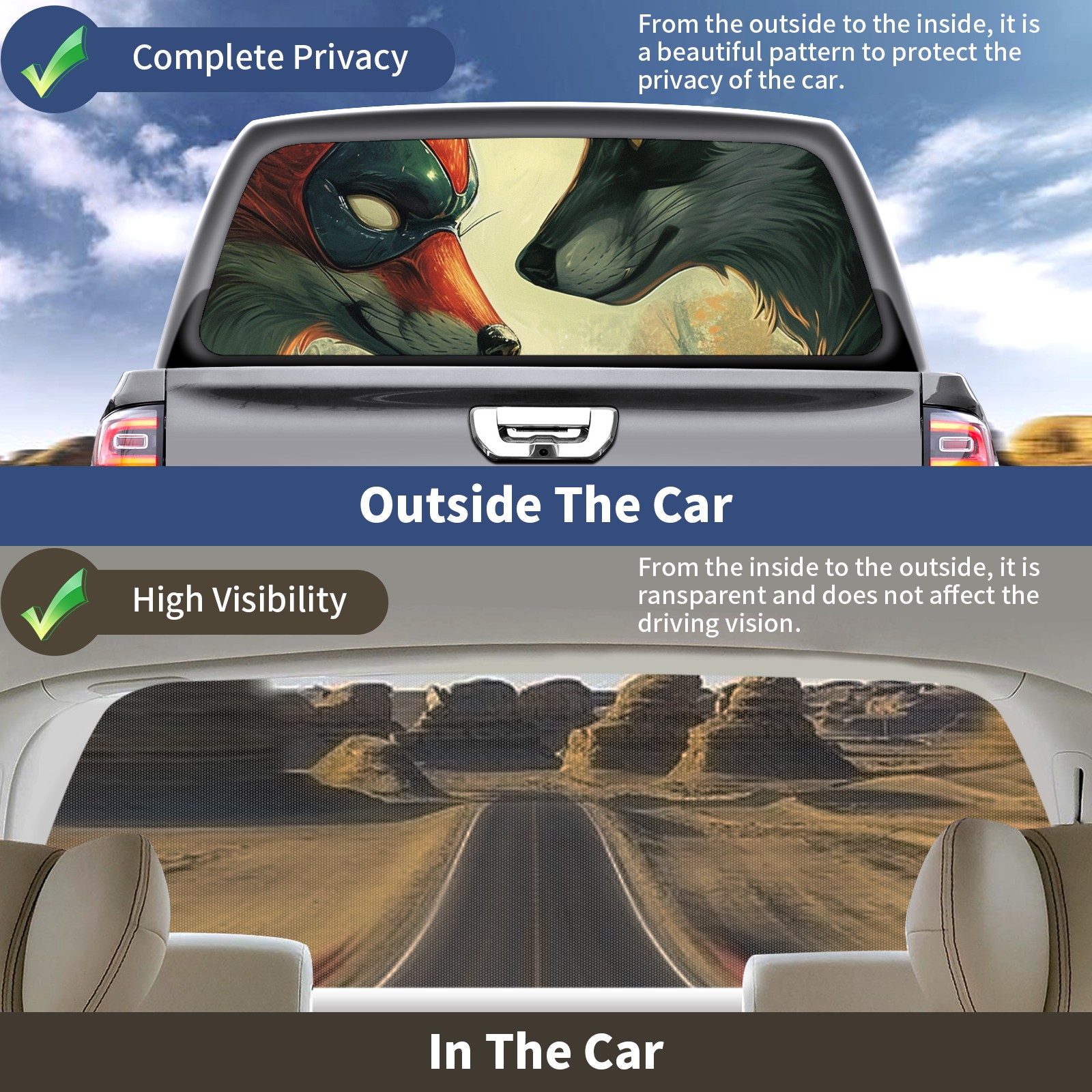 Truck Rear Window Graphics Decals Pickup Trucks Back Window Sticker Full Window Film Decal One Way Visual Waterproof Car Rear Tint Wolf