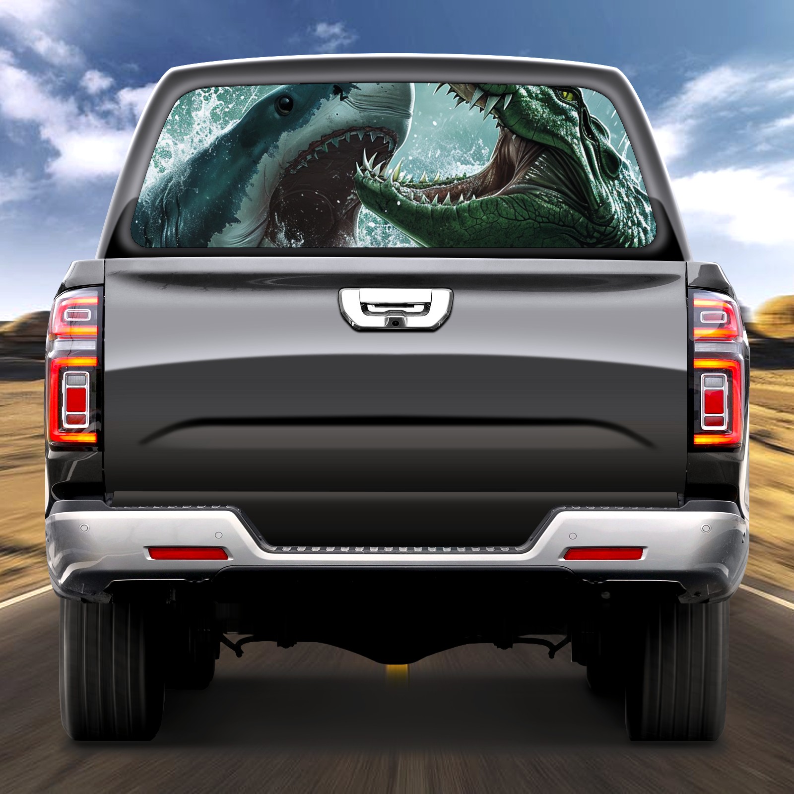 Truck Rear Window Graphics Decals Pickup Trucks Back Window Sticker Full Window Film Decal One Way Visual Waterproof Car Rear Tint Crocodile