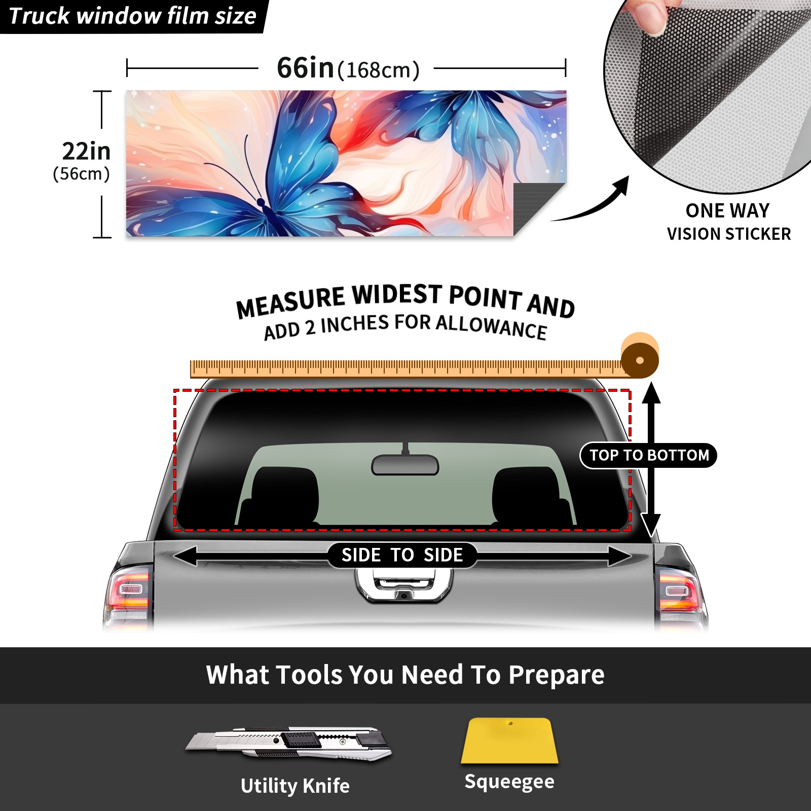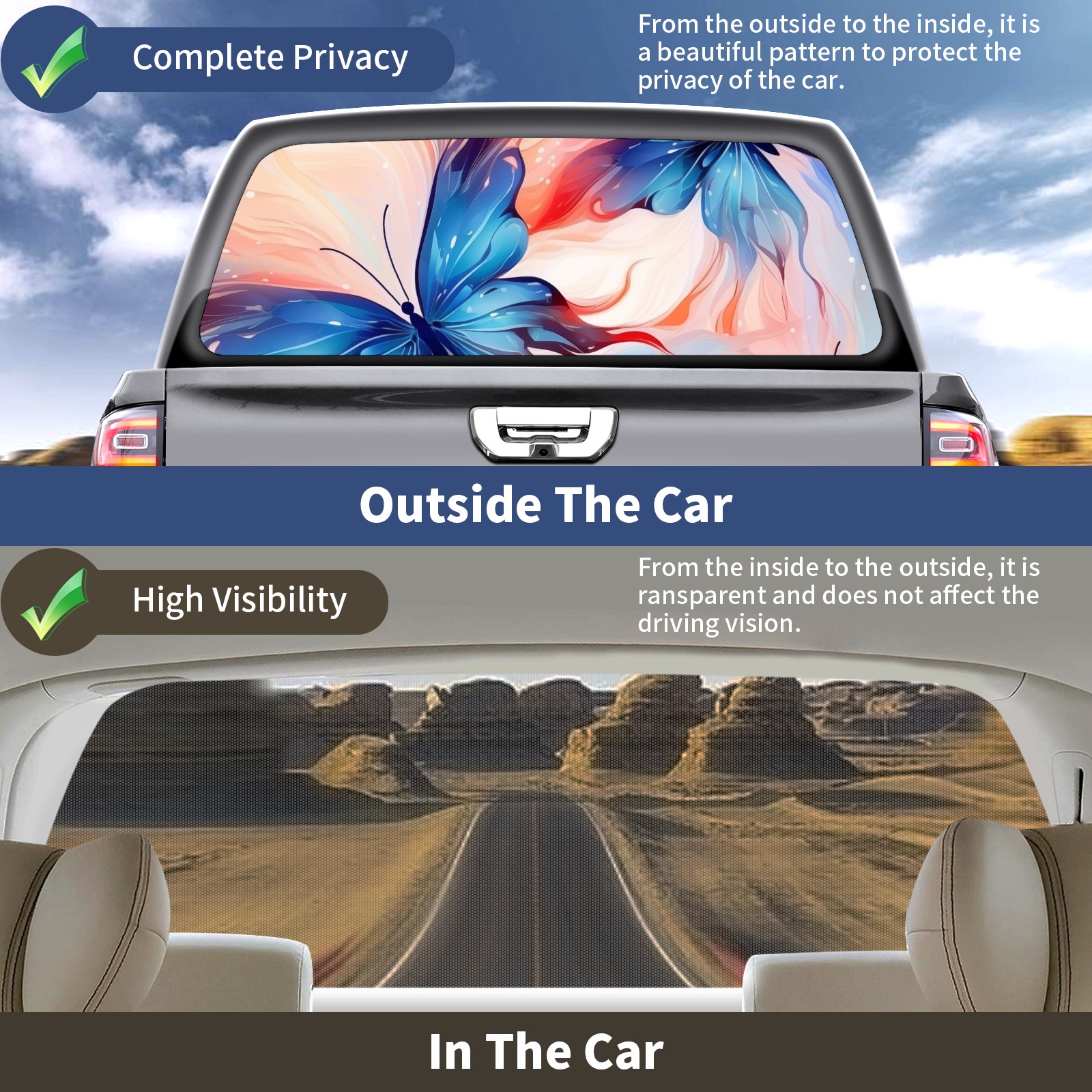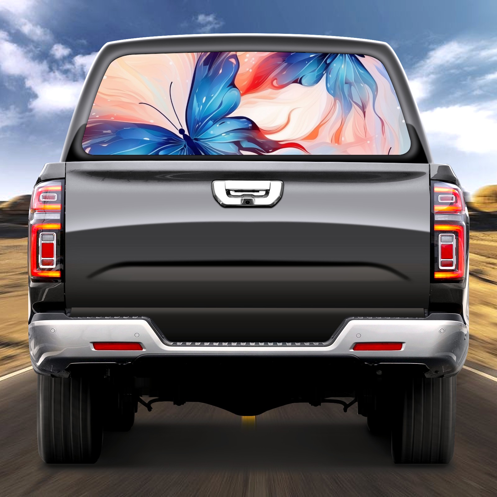 Truck Rear Window Graphics Decals Pickup Trucks Back Window Sticker Full Window Film Decal One Way Visual Waterproof Car Rear Tint Beautiful Butterfly