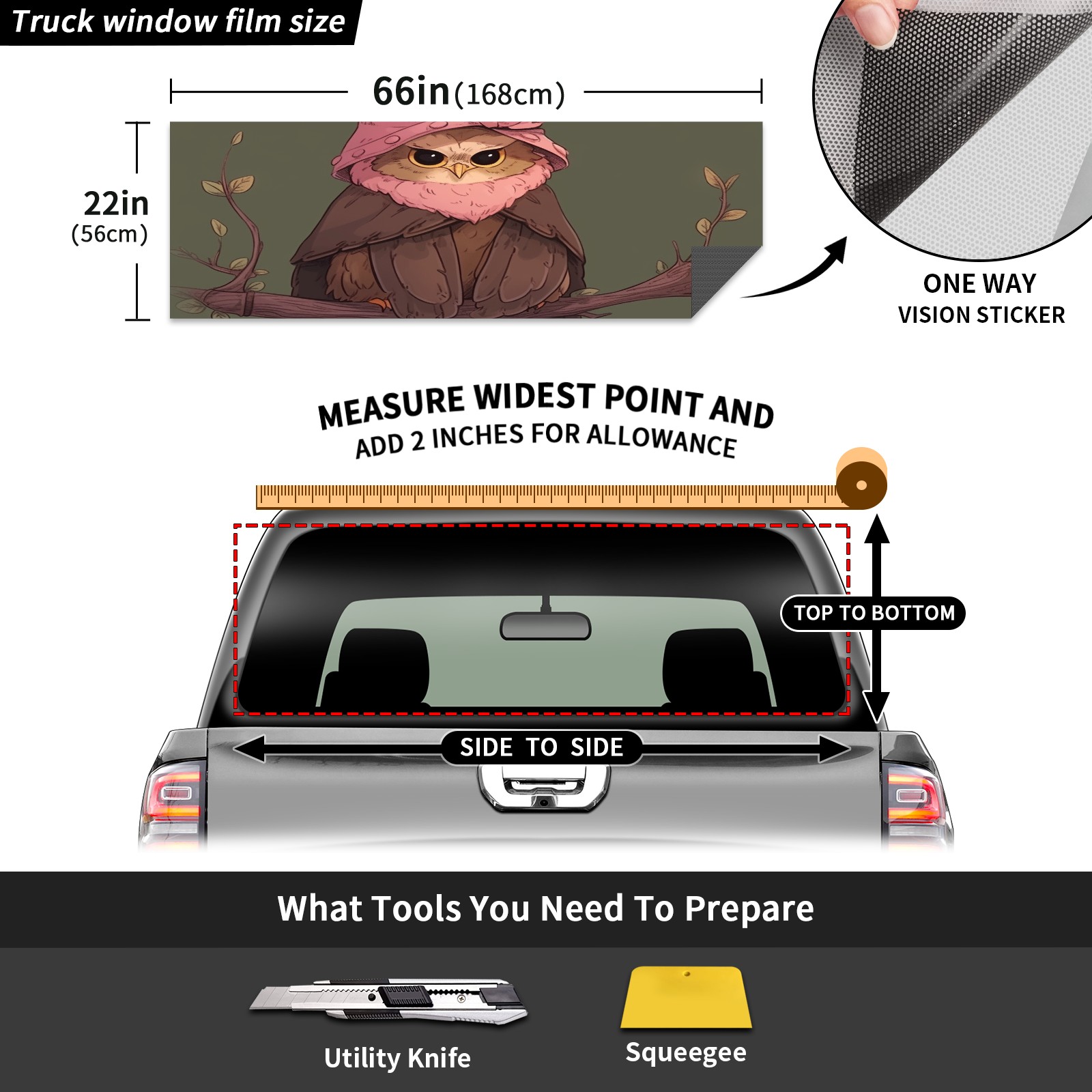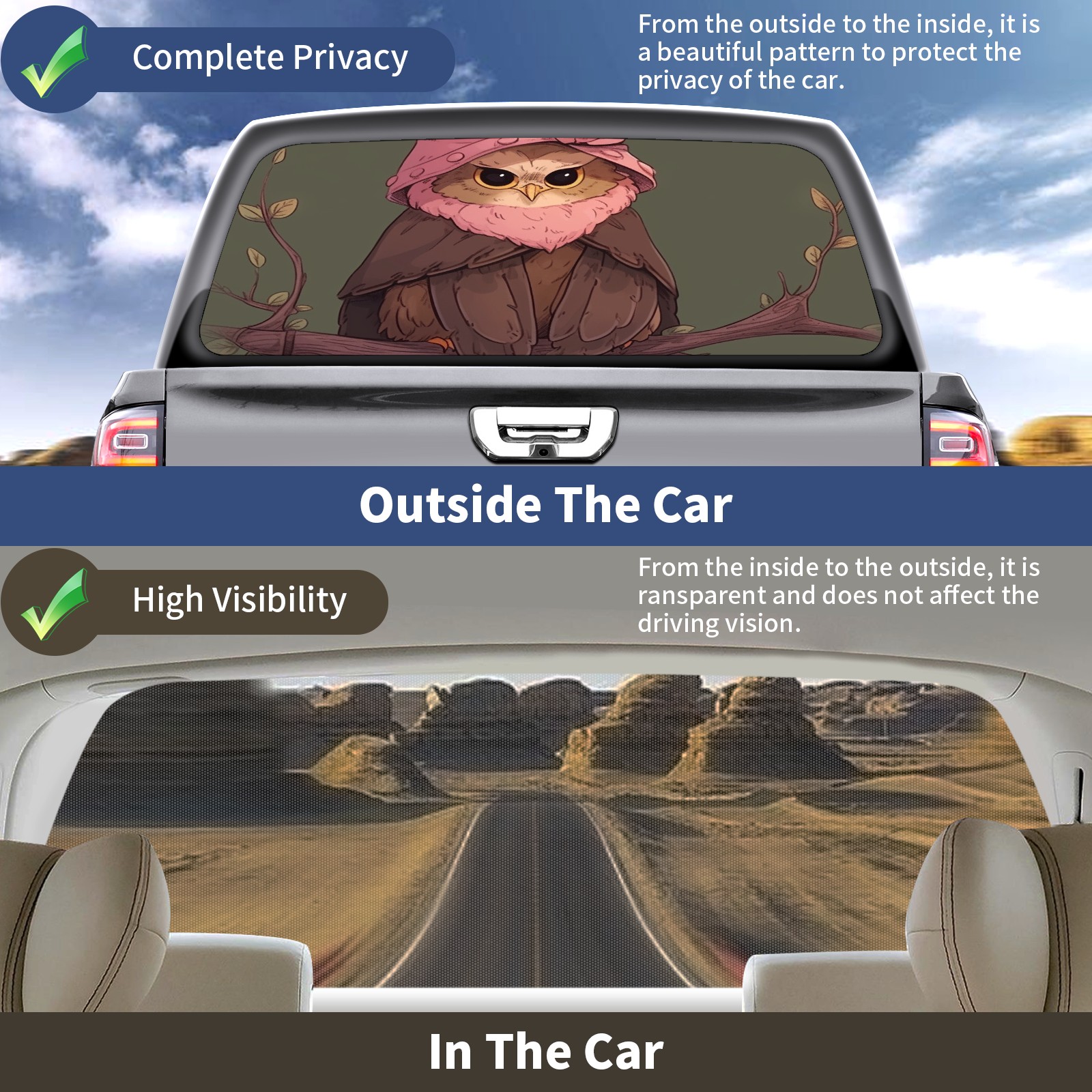 Truck Rear Window Graphics Decals Pickup Trucks Back Window Sticker Full Window Film Decal One Way Visual Waterproof Car Rear Tint Owl