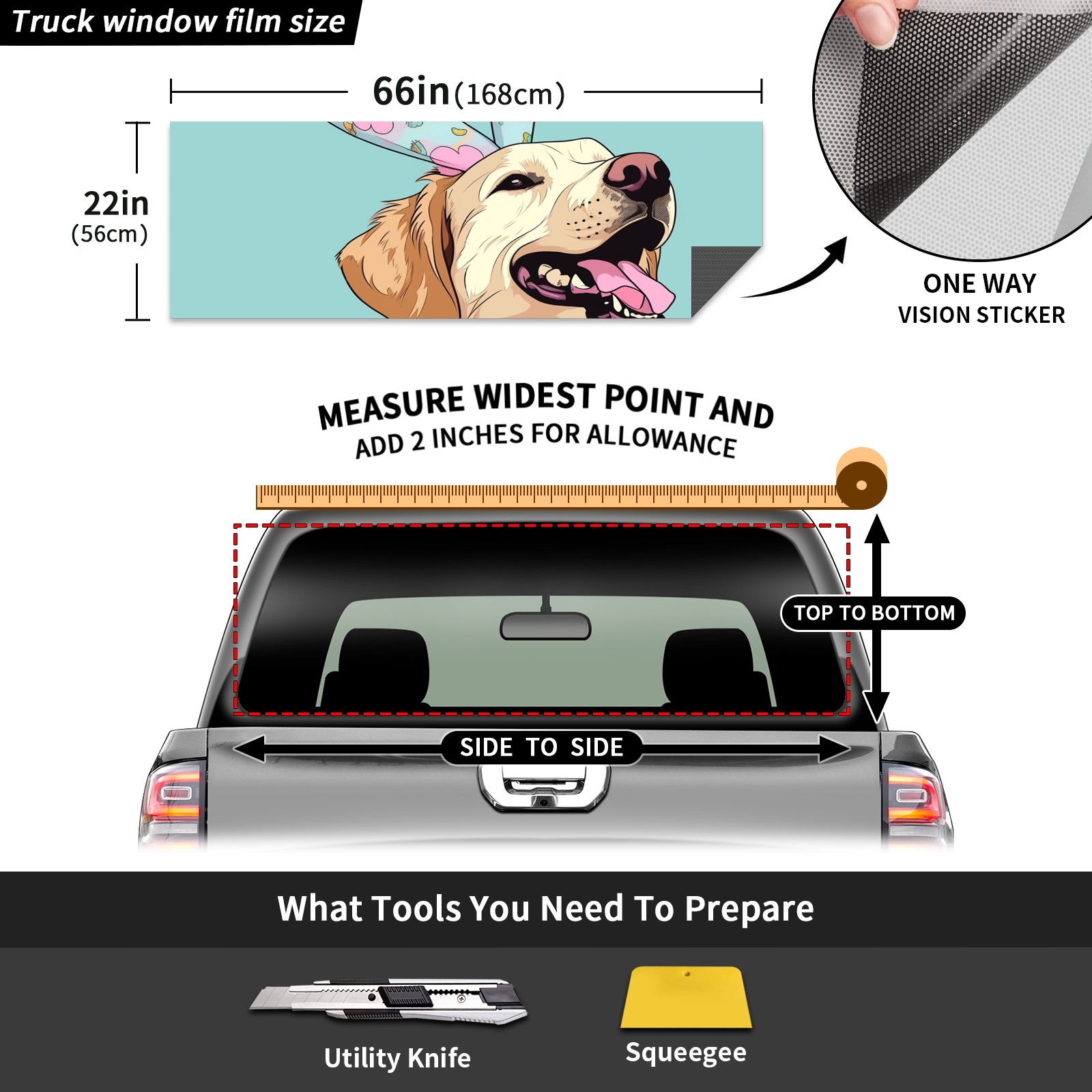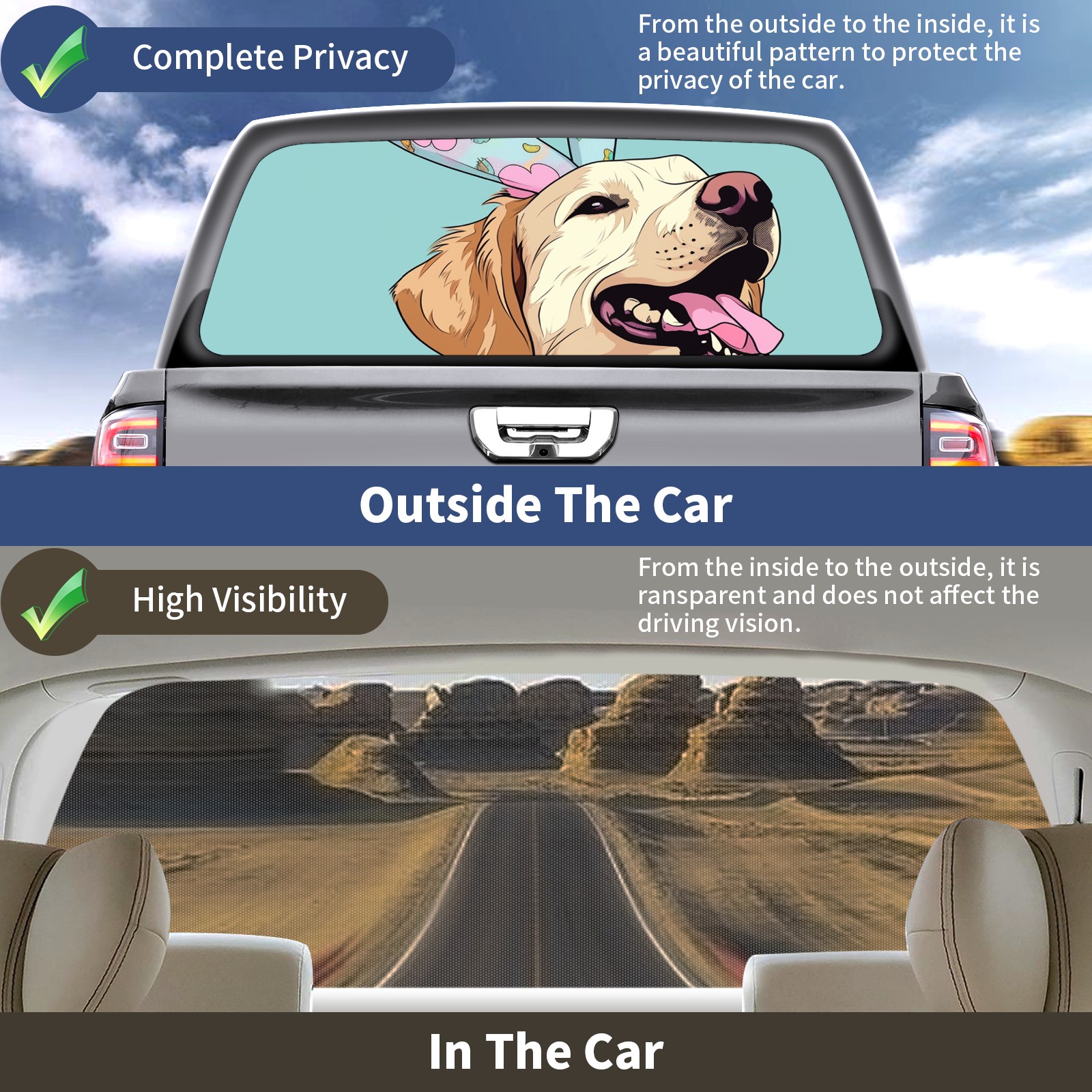 Truck Rear Window Graphics Decals Pickup Trucks Back Window Sticker Full Window Film Decal One Way Visual Waterproof Car Rear Tint Dog