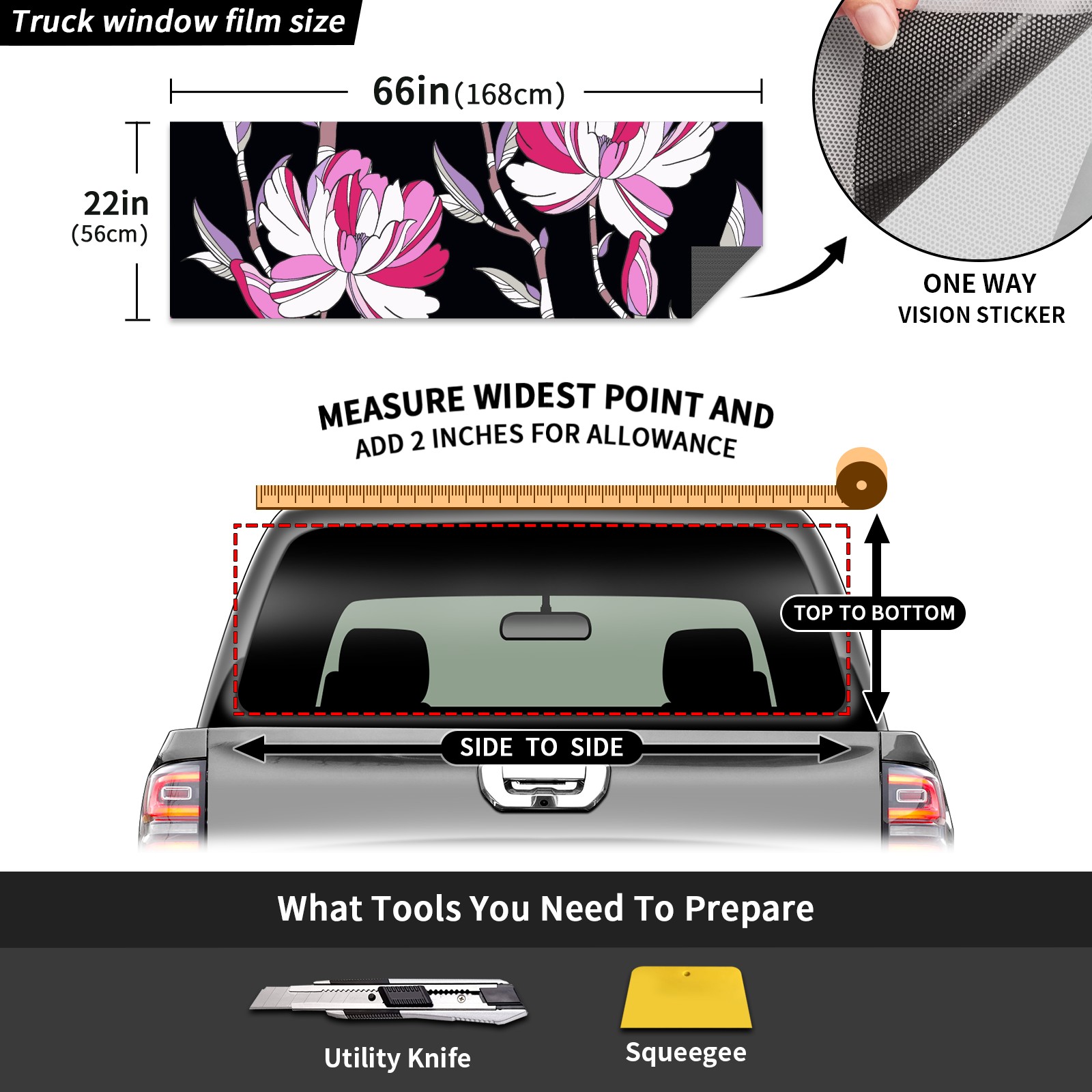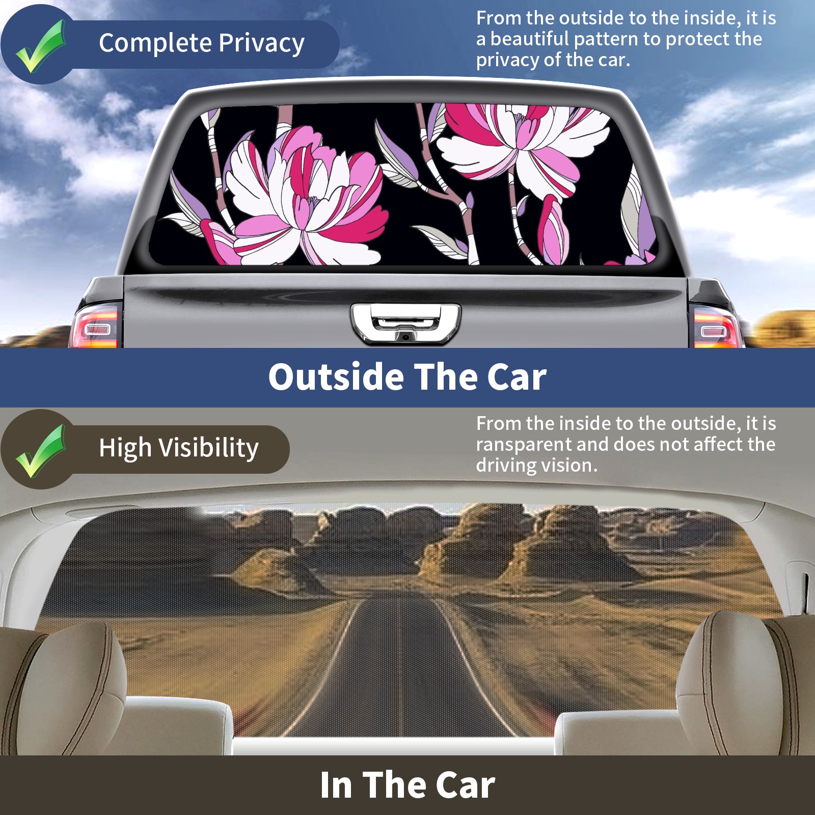 Truck Rear Window Graphics Decals Pickup Trucks Back Window Sticker Full Window Film Decal One Way Visual Waterproof Car Rear Tint Flowers Plants
