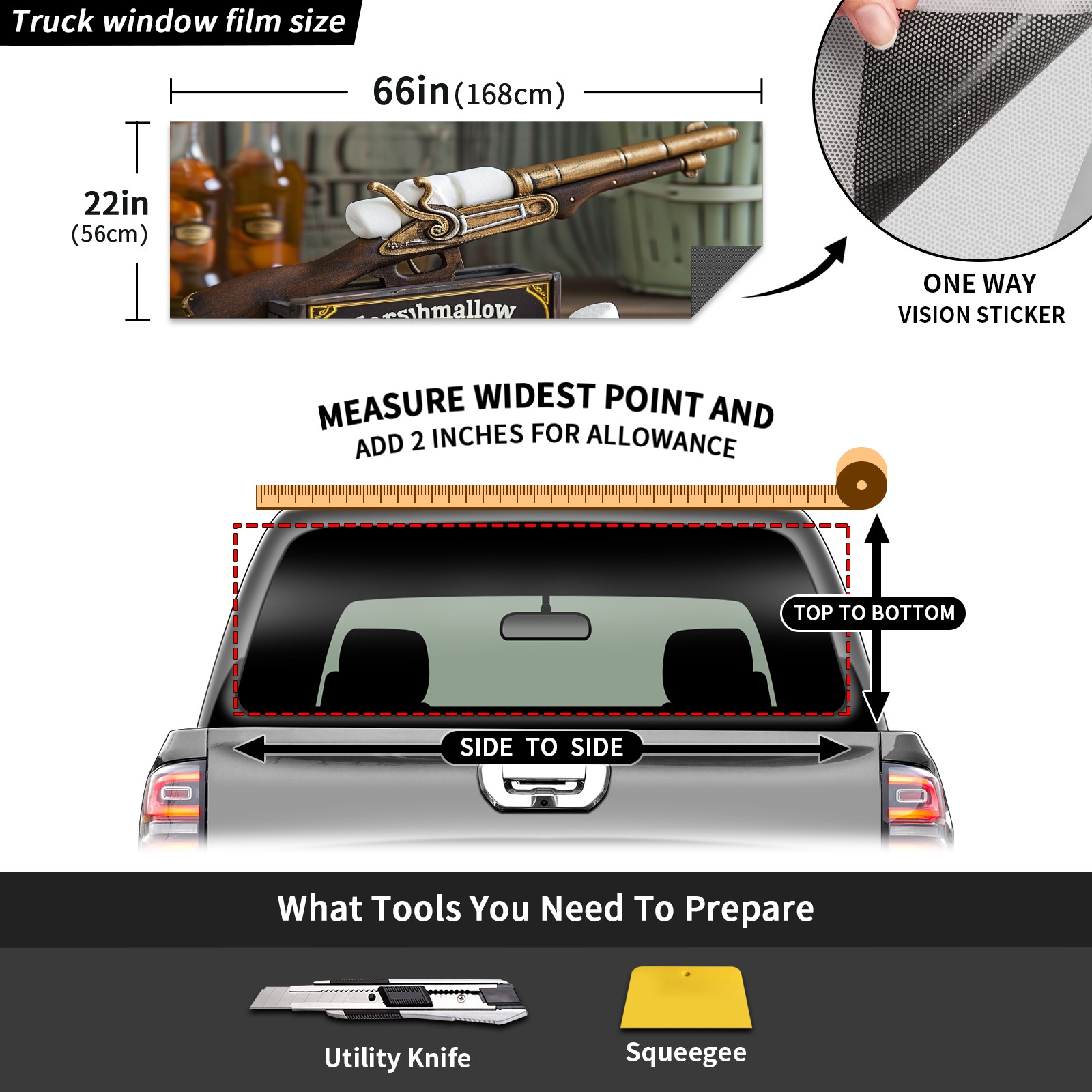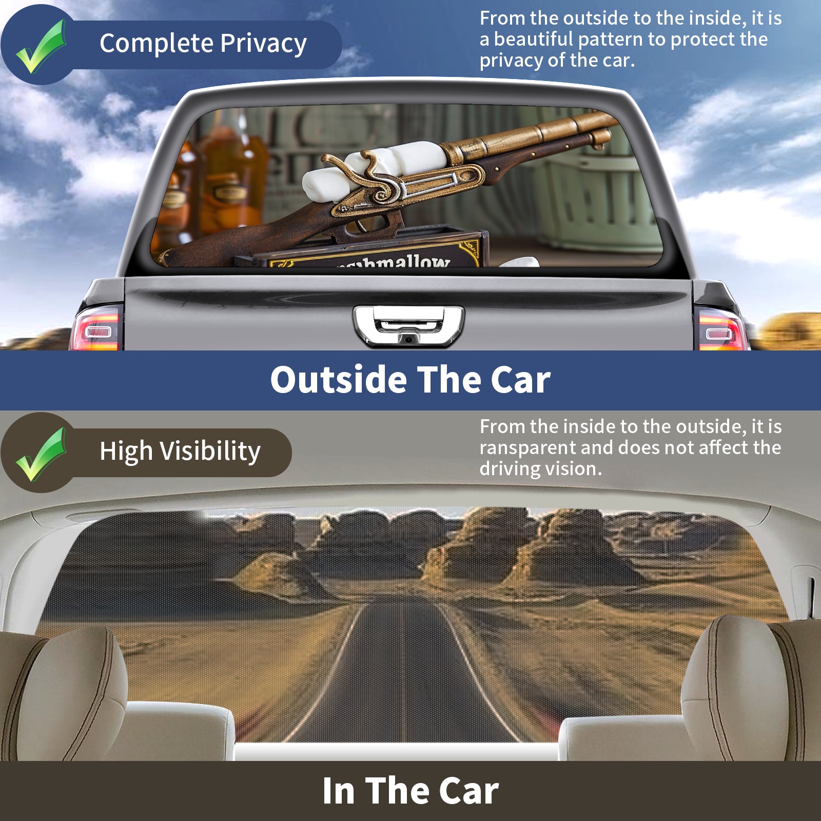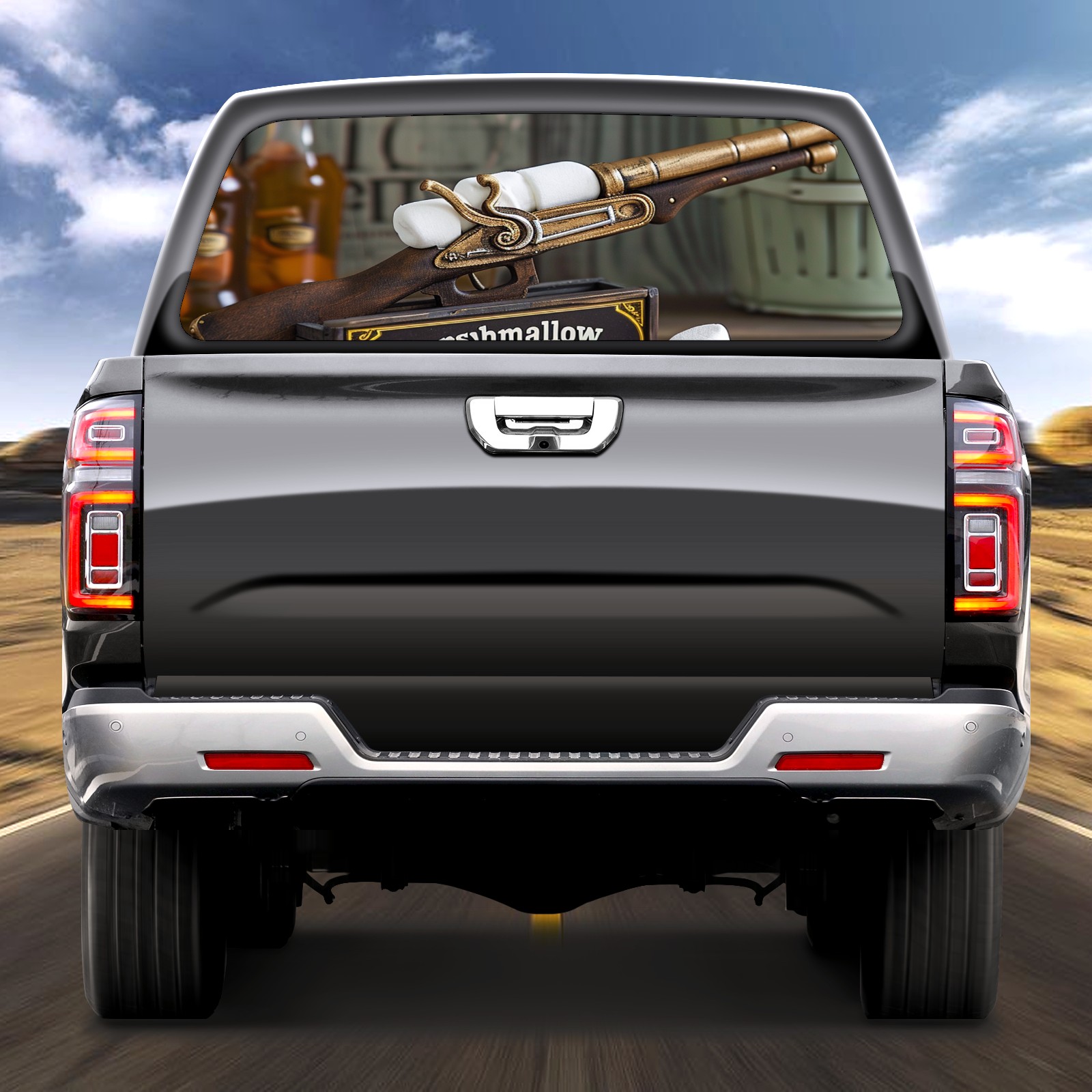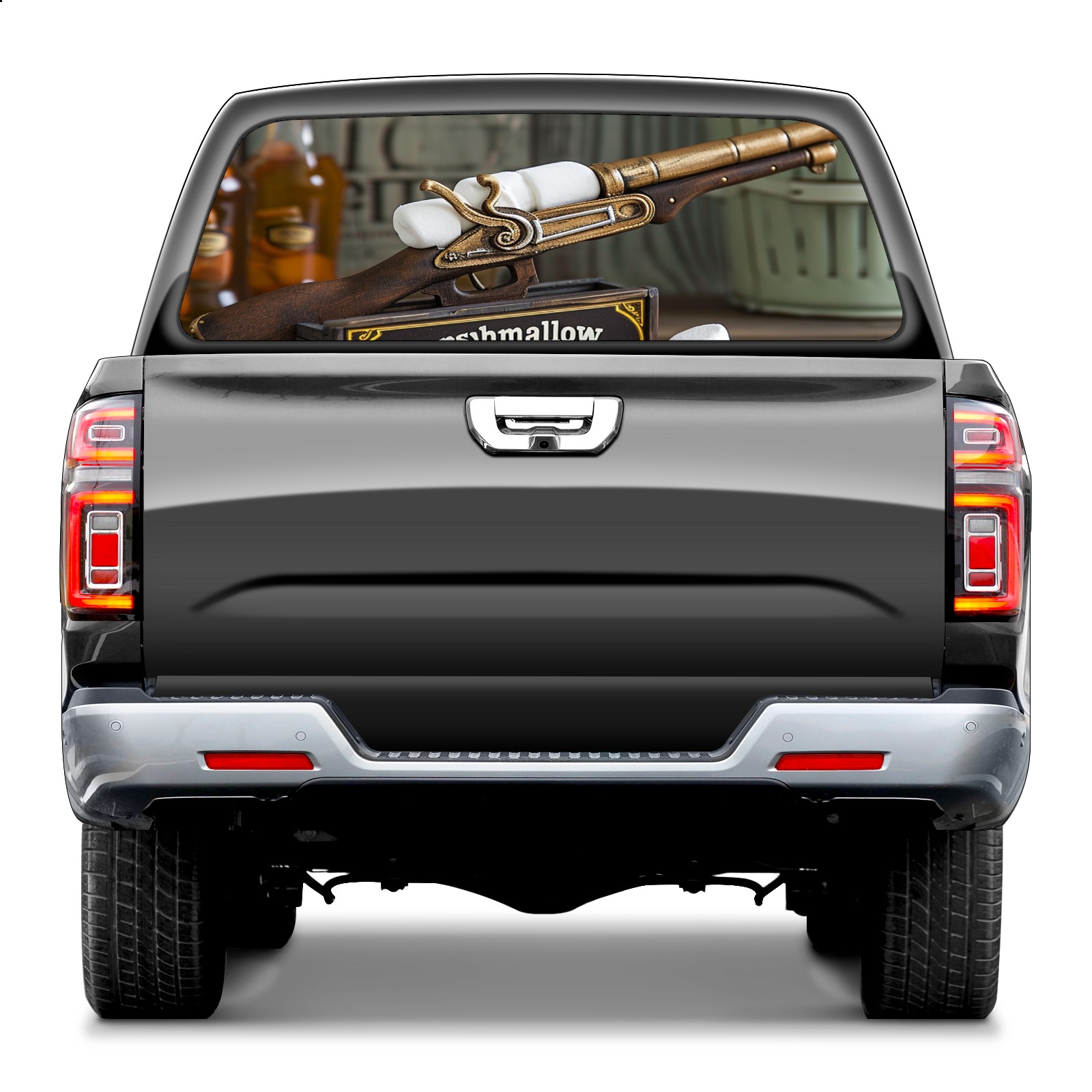 Truck Rear Window Graphics Decals Pickup Trucks Back Window Sticker Full Window Film Decal One Way Visual Waterproof Car Rear Tint Toy Gun