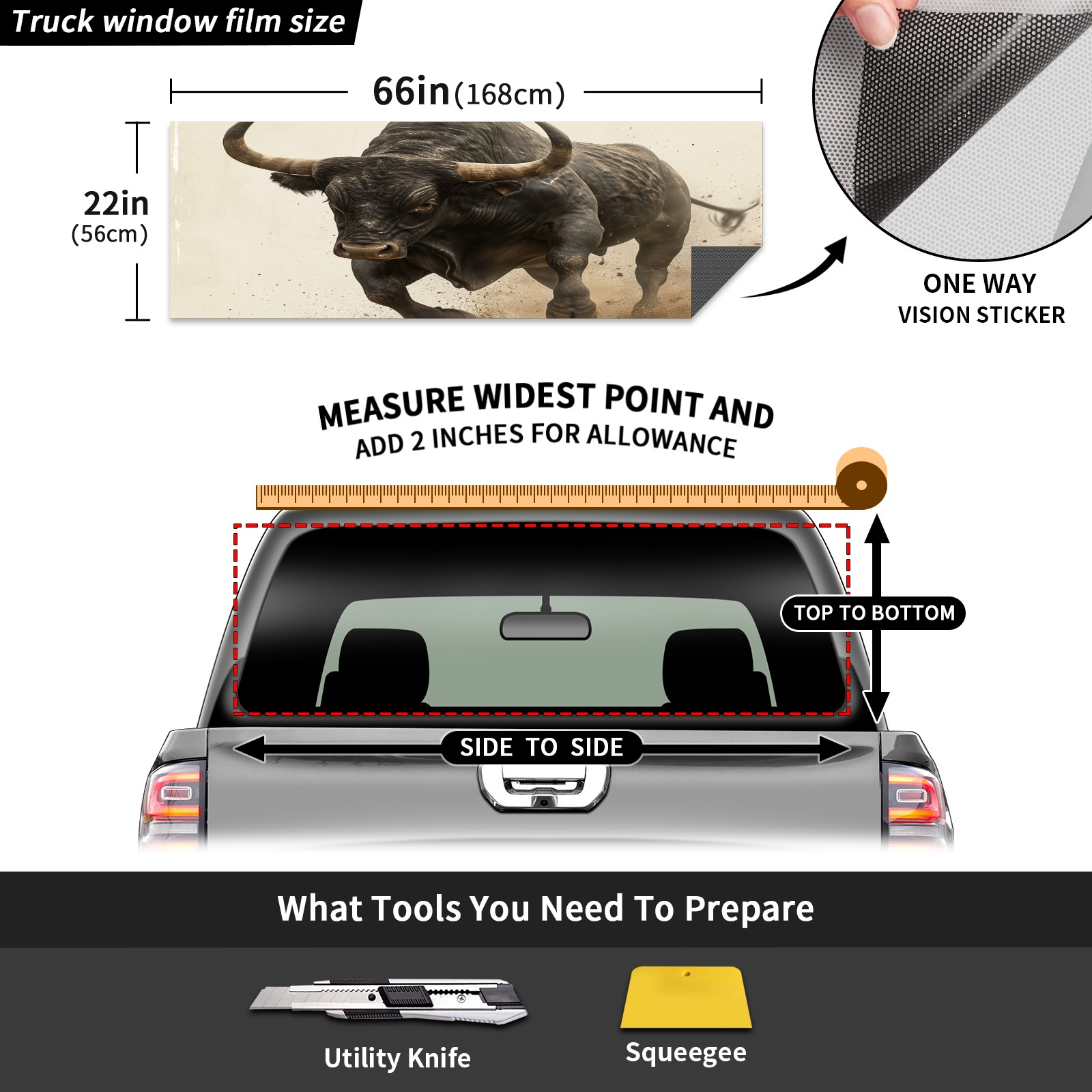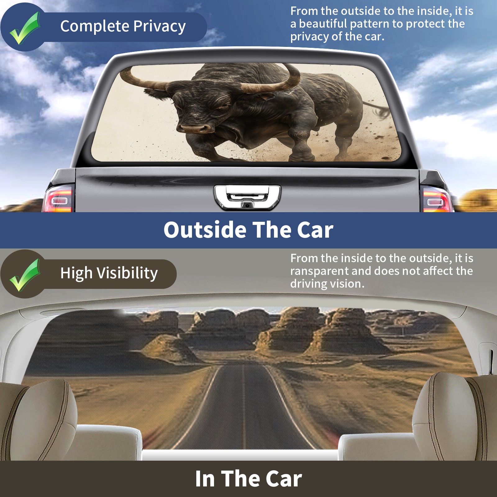 Truck Rear Window Graphics Decals Pickup Trucks Back Window Sticker Full Window Film Decal One Way Visual Waterproof Car Rear Tint Cattle