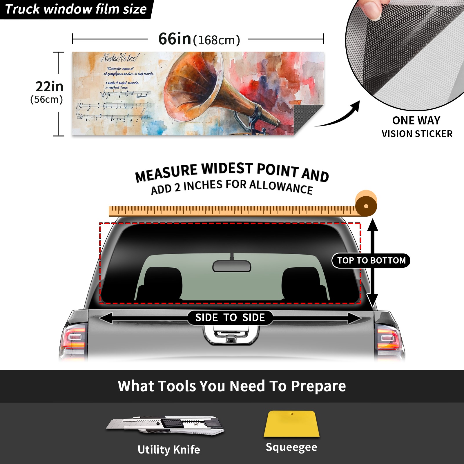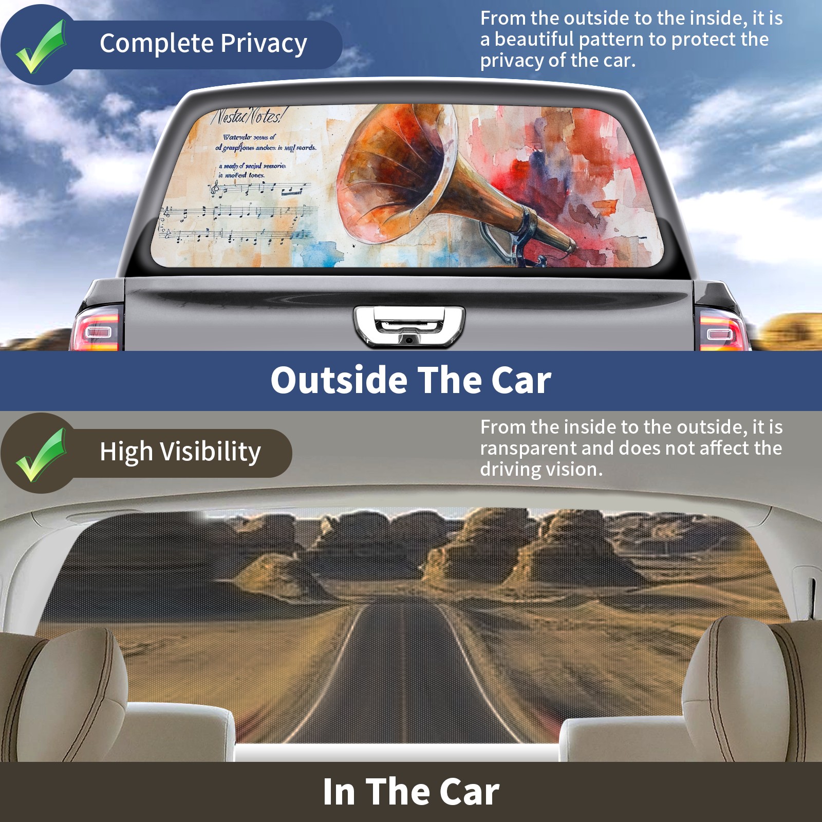 Truck Rear Window Graphics Decals Pickup Trucks Back Window Sticker Full Window Film Decal One Way Visual Waterproof Car Rear Tint Horn