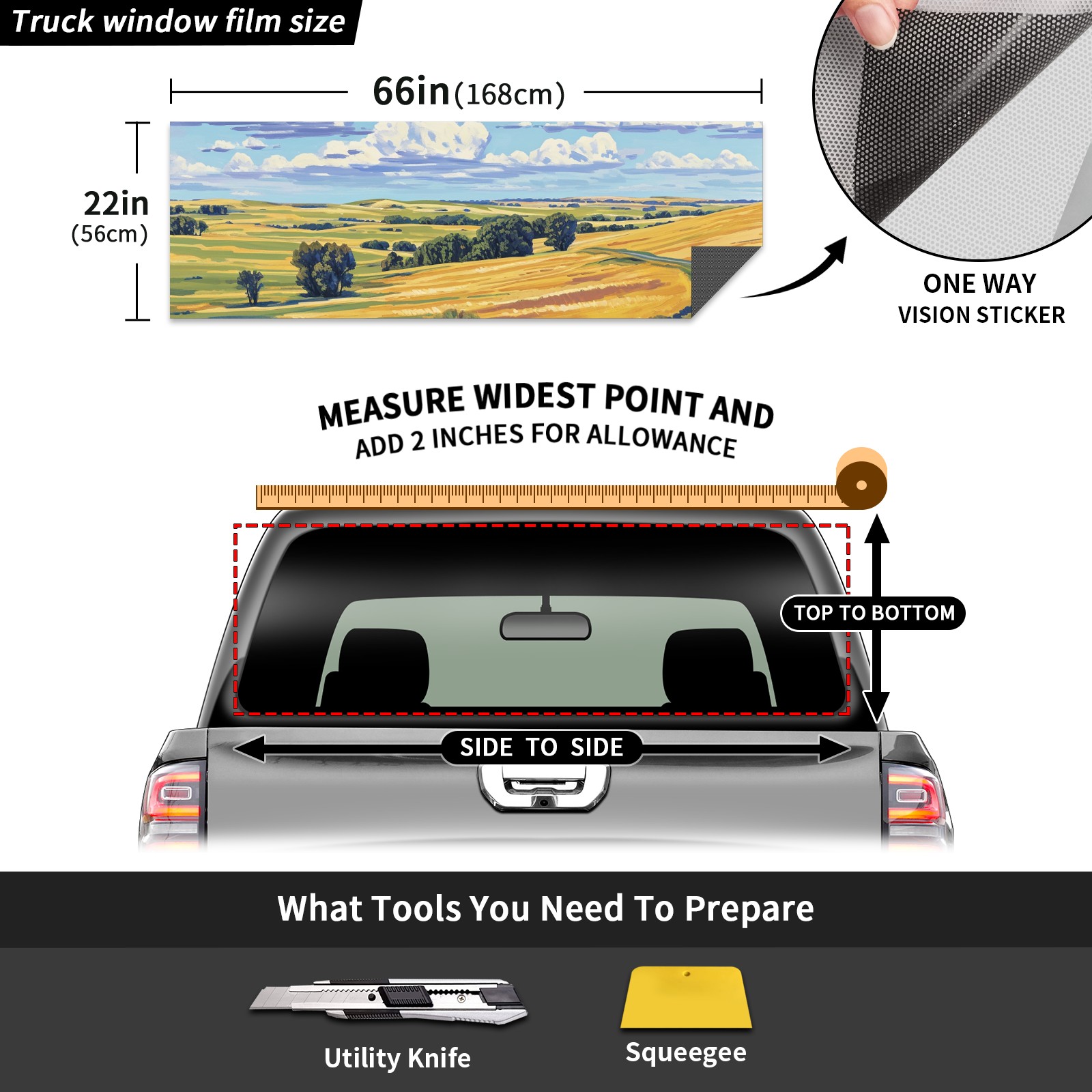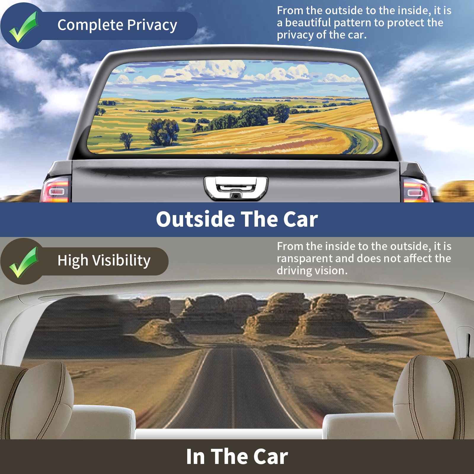 Truck Rear Window Graphics Decals Pickup Trucks Back Window Sticker Full Window Film Decal One Way Visual Waterproof Car Rear Tint Field