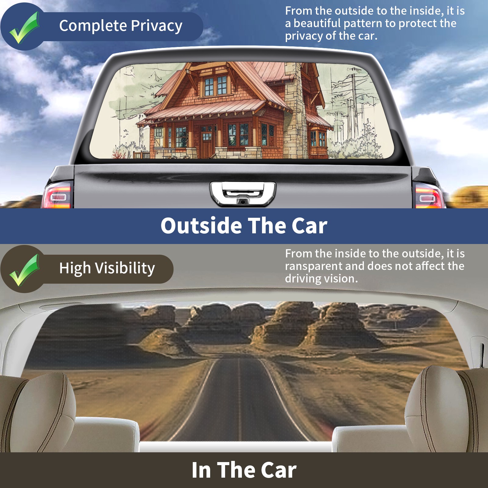 <b>One-Way Light Transmission Window Film Protect Your Privacy While Allowing You To Enjoy The Scenery Outside Your Window!</b> <br> <b>●Decals Instructions Usage--Teach You To Use Quickly</b> <br> 1.Clean the window galss thoroughly <br> 2.Use a Squeegee or other card to scrape off the remaining water and bumps(don't use too much force) <br> 3.Remove the film's back cover .Use a knife to cut out a suitable contour and wipe off the remaining water(you can also use a hair dryer to blow dry) <br> 4.Find a suitable location and stick a sticker <br> <b>●Unique Design</b> <br> ZXIVGOQFR Back window stickers ‘s smart looking and unique cute design makes your vehicle special under sunshine. Makes your car easy to identify, perfect for finding your car in crowded parking lots and garages.funny visor reflects personality and attitude. <br> <b>●Perfect Gift for all Drivers<br></b> We create all the gifts and accessories you only need to choose what you like. Get full tailgate wraps, rear window decals, and everything you need to make your pickup truck look awesome. <br> <b>Decorate Your Pickup Truck With Rear Window Decal Today!</b>