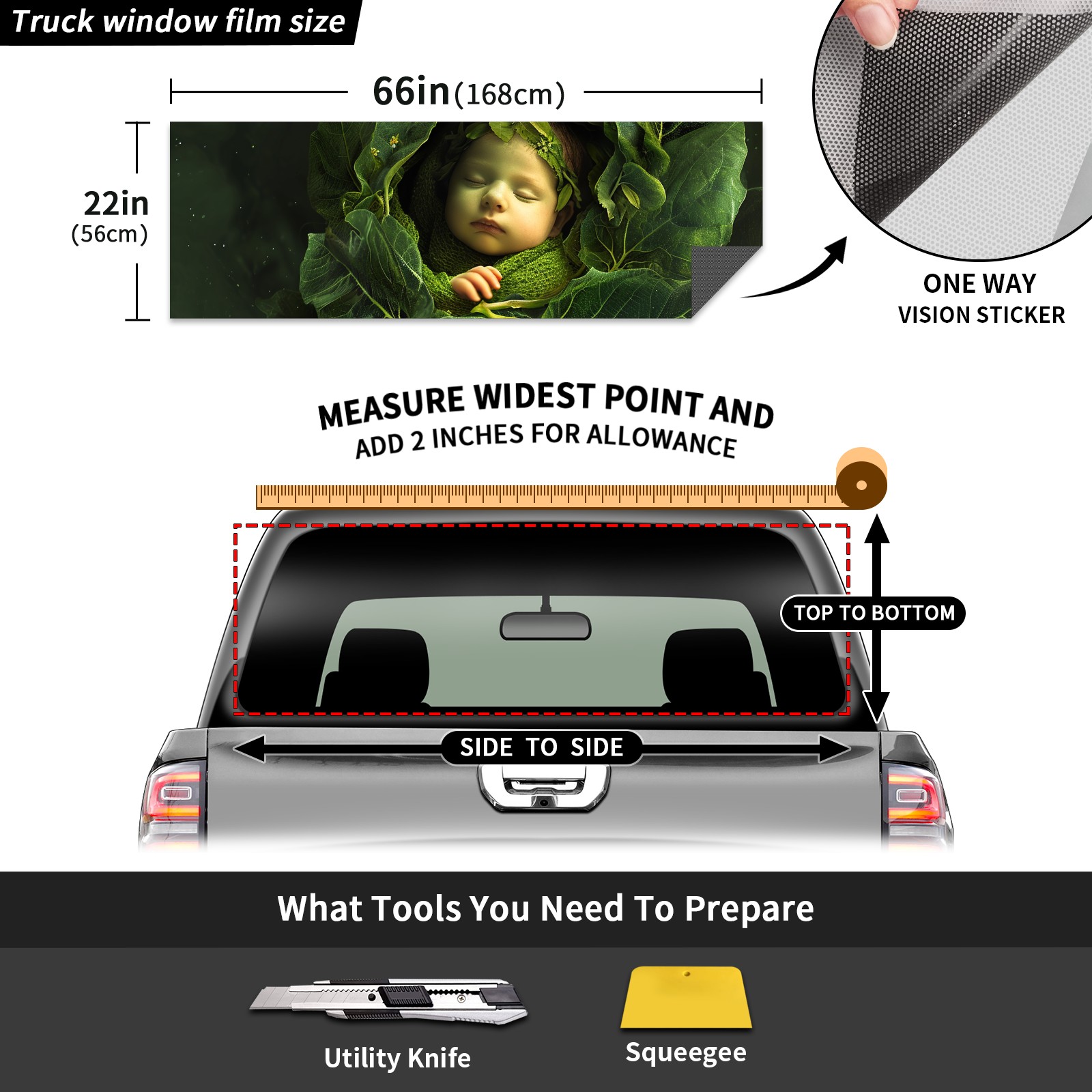 Truck Rear Window Graphics Decals Pickup Trucks Back Window Sticker Full Window Film Decal One Way Visual Waterproof Car Rear Tint Leaf