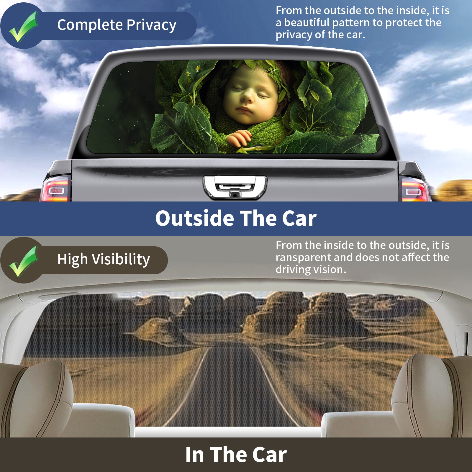 <b>One-Way Light Transmission Window Film Protect Your Privacy While Allowing You To Enjoy The Scenery Outside Your Window!</b> <br> <b>●Decals Instructions Usage--Teach You To Use Quickly</b> <br> 1.Clean the window galss thoroughly <br> 2.Use a Squeegee or other card to scrape off the remaining water and bumps(don't use too much force) <br> 3.Remove the film's back cover .Use a knife to cut out a suitable contour and wipe off the remaining water(you can also use a hair dryer to blow dry) <br> 4.Find a suitable location and stick a sticker <br> <b>●Unique Design</b> <br> ZXIVGOQFR Back window stickers ‘s smart looking and unique cute design makes your vehicle special under sunshine. Makes your car easy to identify, perfect for finding your car in crowded parking lots and garages.funny visor reflects personality and attitude. <br> <b>●Perfect Gift for all Drivers<br></b> We create all the gifts and accessories you only need to choose what you like. Get full tailgate wraps, rear window decals, and everything you need to make your pickup truck look awesome. <br> <b>Decorate Your Pickup Truck With Rear Window Decal Today!</b>