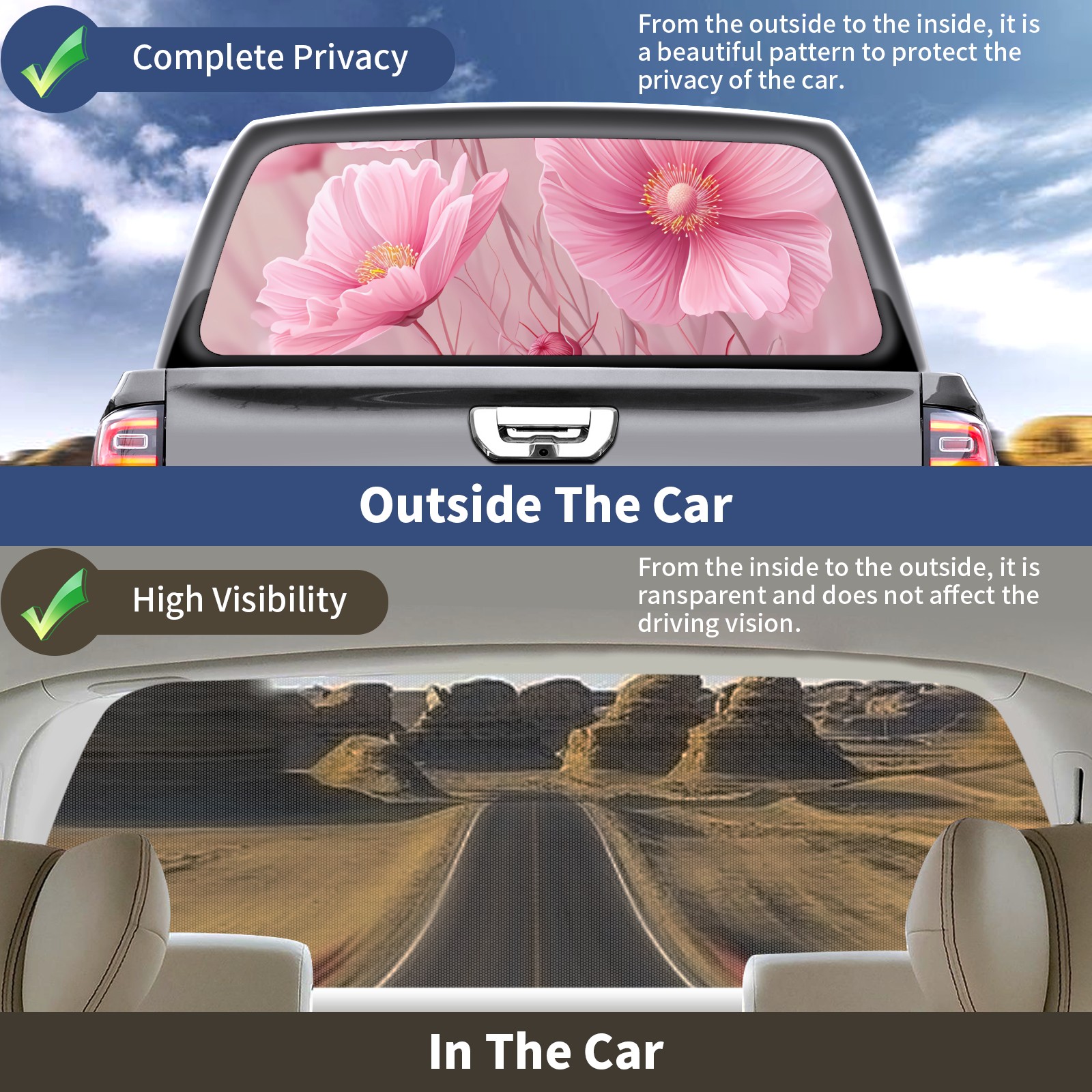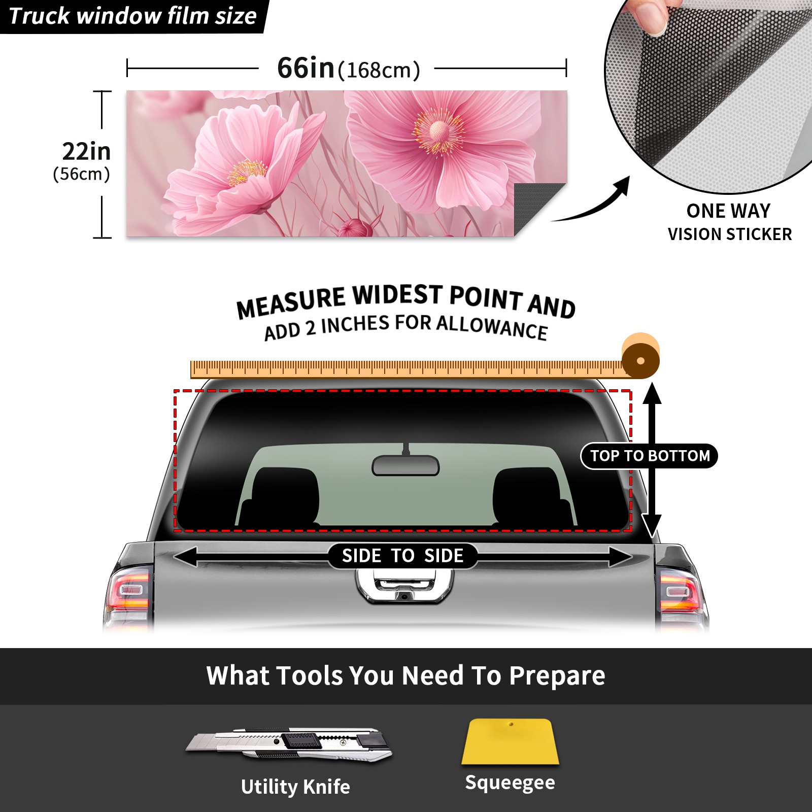 Truck Rear Window Graphics Decals Pickup Trucks Back Window Sticker Full Window Film Decal One Way Visual Waterproof Car Rear Tint Cute Bouquet B