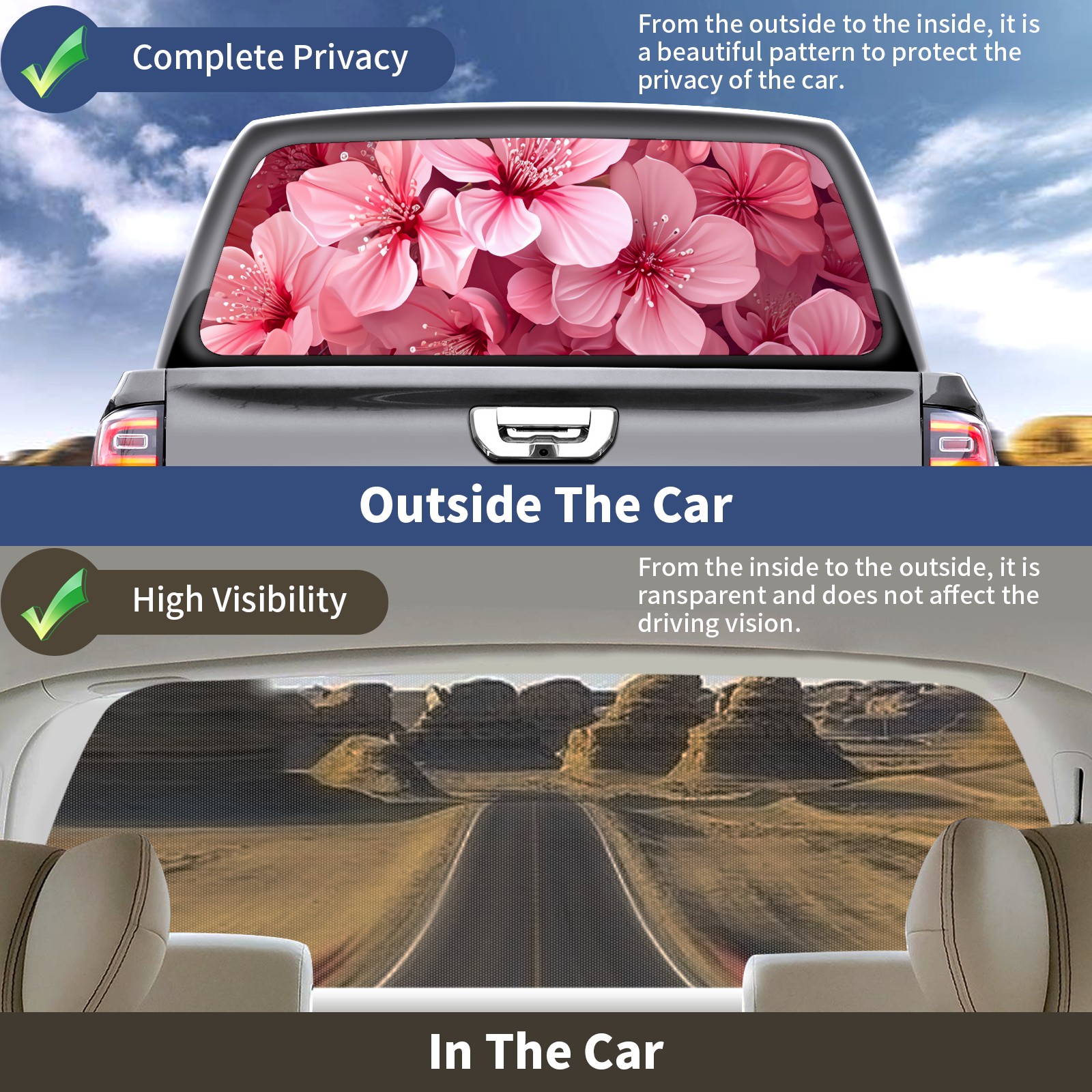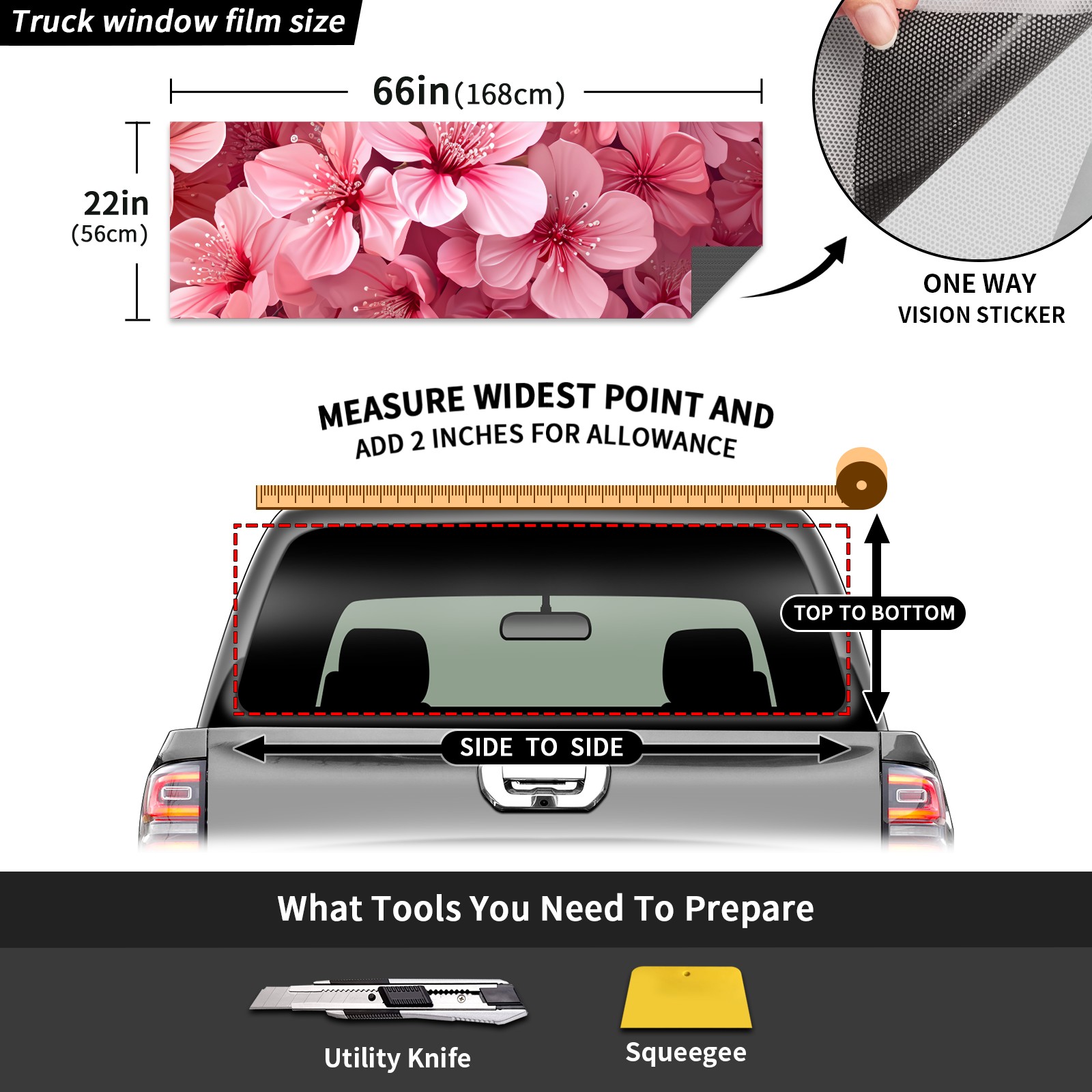 Truck Rear Window Graphics Decals Pickup Trucks Back Window Sticker Full Window Film Decal One Way Visual Waterproof Car Rear Tint Floral C
