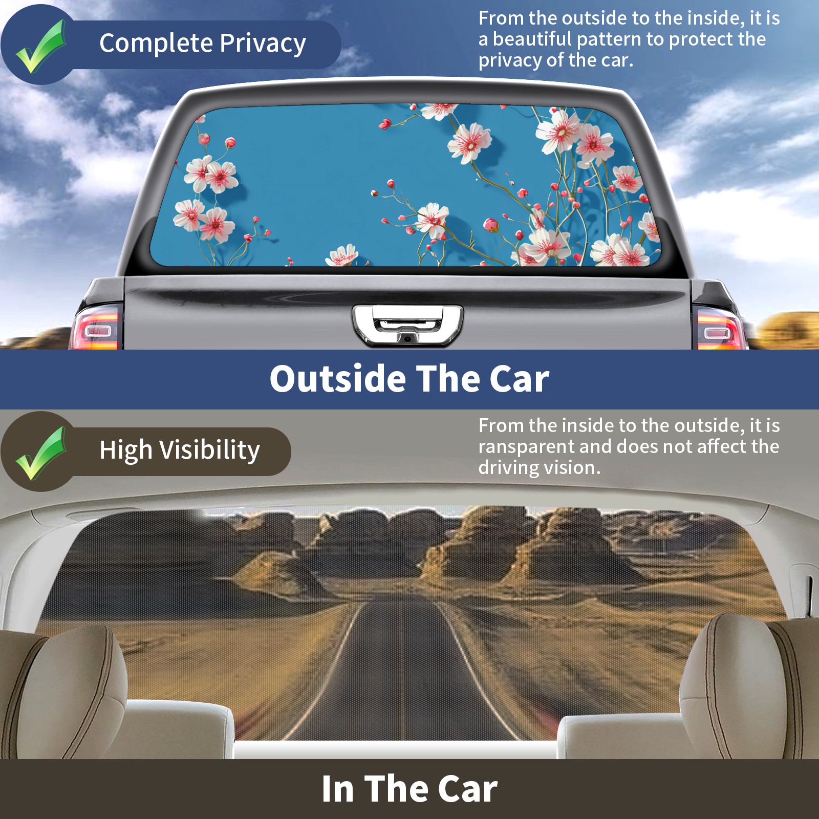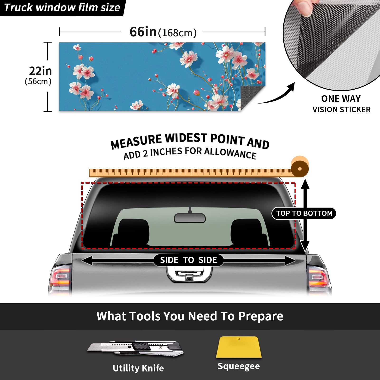 Truck Rear Window Graphics Decals Pickup Trucks Back Window Sticker Full Window Film Decal One Way Visual Waterproof Car Rear Tint Lovely Bouquet A