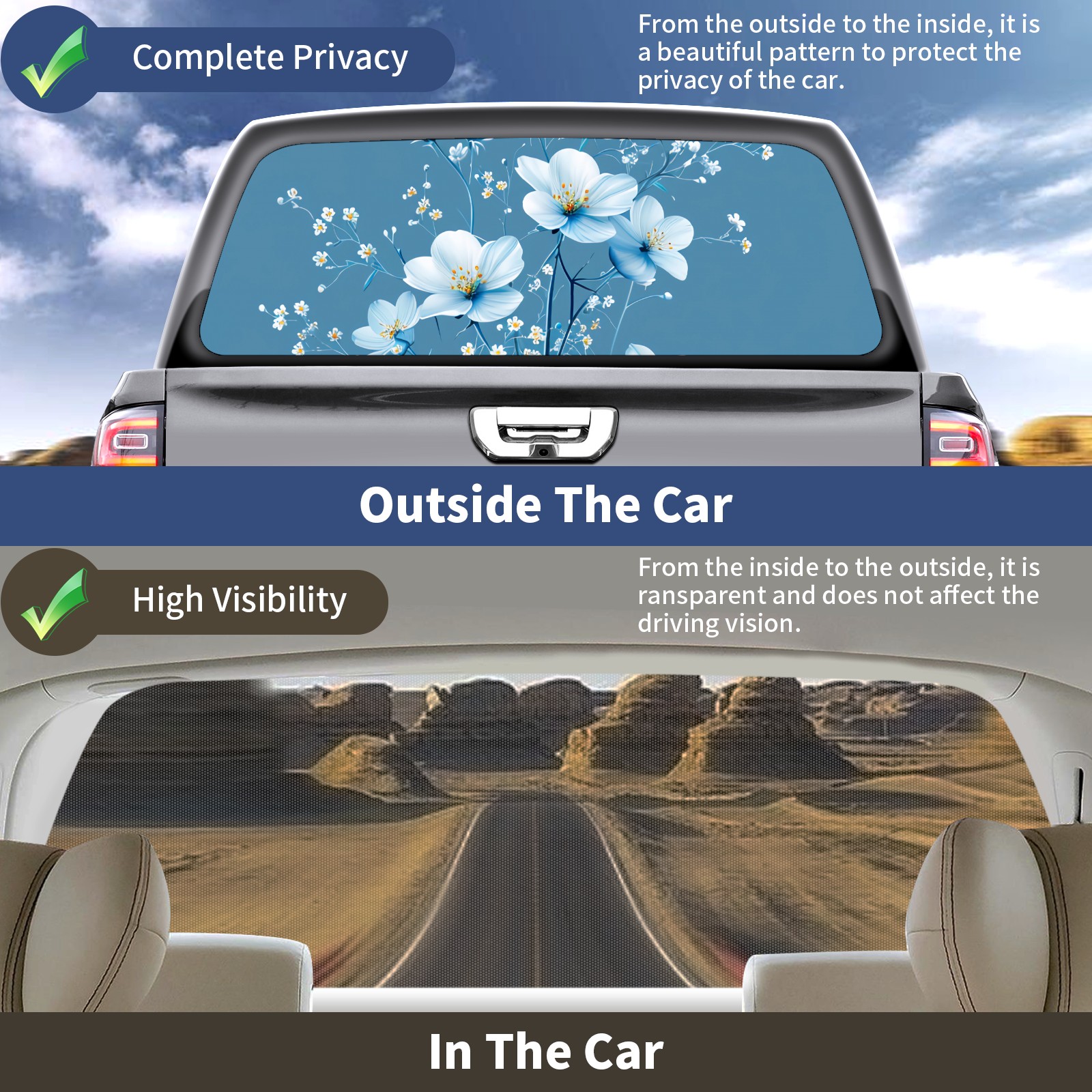 • <b>One-Way Light Transmission Window Film Protect Your Privacy While Allowing You To Enjoy The Scenery Outside Your Window!</b> <br> <b>●Decals Instructions Usage--Teach You To Use Quickly</b> <br> 1.Clean the window galss thoroughly <br> 2.Use a Squeegee or other card to scrape off the remaining water and bumps(don't use too much force) <br> 3.Remove the film's back cover .Use a knife to cut out a suitable contour and wipe off the remaining water(you can also use a hair dryer to blow dry) <br> 4.Find a suitable location and stick a sticker <br> <b>●Unique Design</b> <br> ZXIVGOQFR Back window stickers ‘s smart looking and unique cute design makes your vehicle special under sunshine. Makes your car easy to identify, perfect for finding your car in crowded parking lots and garages.funny visor reflects personality and attitude. <br> <b>●Perfect Gift for all Drivers<br></b> We create all the gifts and accessories you only need to choose what you like. Get full tailgate wraps, rear window decals, and everything you need to make your pickup truck look awesome. <br> <b>Decorate Your Pickup Truck With Rear Window Decal Today!</b>
