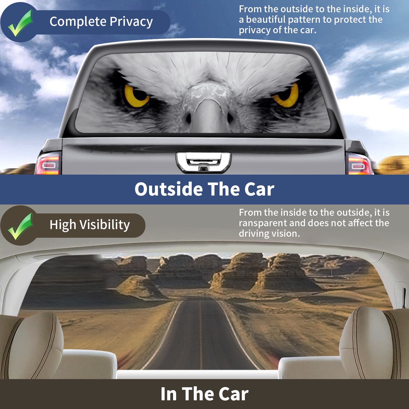 • <p><strong>Truck Rear Window Graphics Decals Pickup Trucks Back Window Film Stickers 66" x 22" Perforated Vinyl Wrap Stickers Decorations for Car Rear Window</strong></p><p><strong><br /></strong></p><p><strong>Features :</strong></p><p>- Size of the rear window decals for trucks is 66x22 Inches (168x56cm).</p><p>- High quality perforated vinyl window film, one way vision sticker.</p><p>- Perforated is see through from the inside but not from outside.</p><p>- Clear printing, waterproof and durable.</p><p>- The car back window graphics stickers fits most truck and makes your vehicle more beautiful.&nbsp;</p><p><br /></p><p><strong>【Installation Instructions】</strong></p><p><strong>1. CLEAN SURFACE -</strong> Clean the rear window thoroughly and make sure the surface clean.</p><p><strong>2. STICK THE DECALS -</strong> Tear off the paper on the back and stick the decal on the window.</p><p><strong>3. SCRAPE OFF AIR BUBBLES -</strong> Use a squeegee or other card to scrape off the excess air bubbles.</p><p><strong>4. TRIM THE EXCESS -</strong> Use a knife to cut off the excess stickers of the window, finally complete.</p><p><br /></p><p>1. Please measure the size before purchasing, back window graphics decal for truck can be cut to your desired size.</p><p>2.The graphics stickers for truck back window is a great gift for yourself also can as a birthday / halloween / christmas gift for your friends and family.</p>