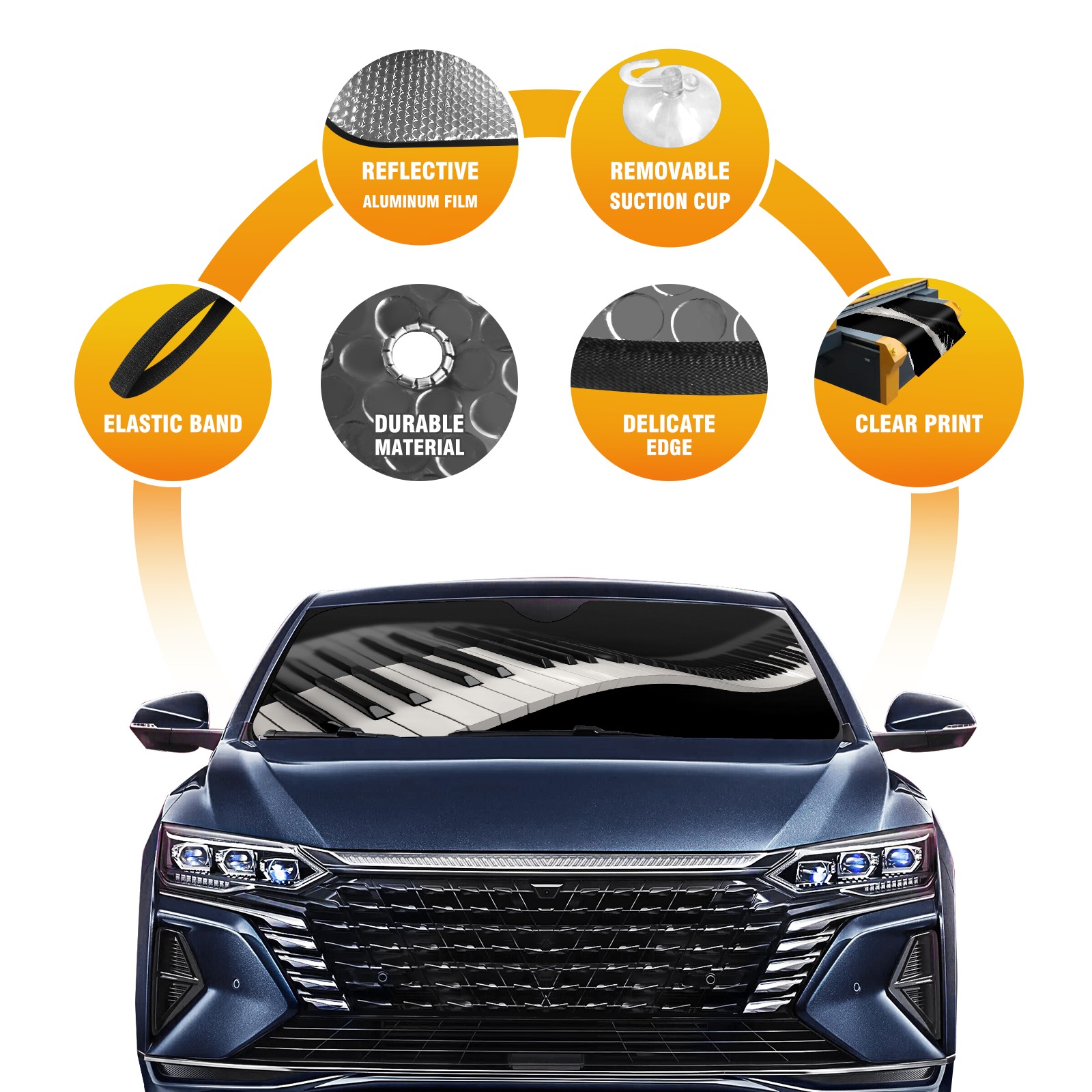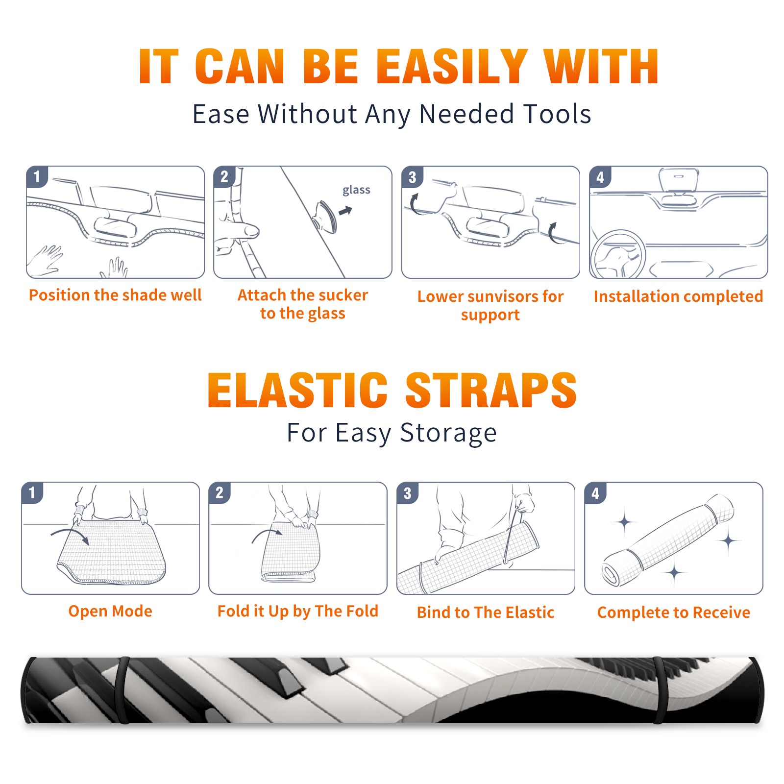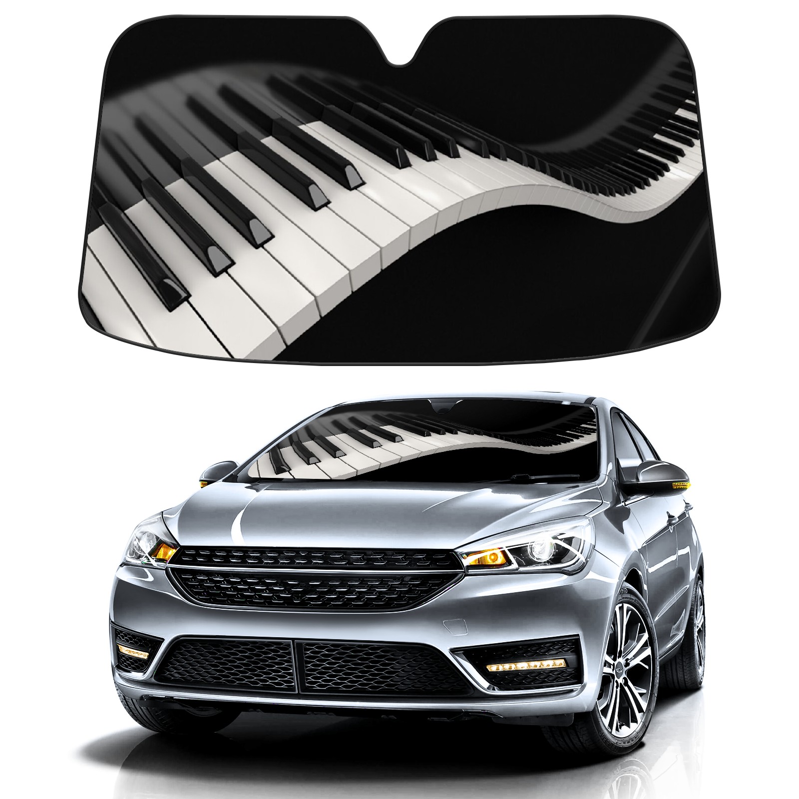 Car Windshield Sun Shade for Front Window Black And White Piano Keyboard Foldable Vehicle Windshield Car Sun Visor Covers Automotive Window Protector Car Privacy Sun Blocker