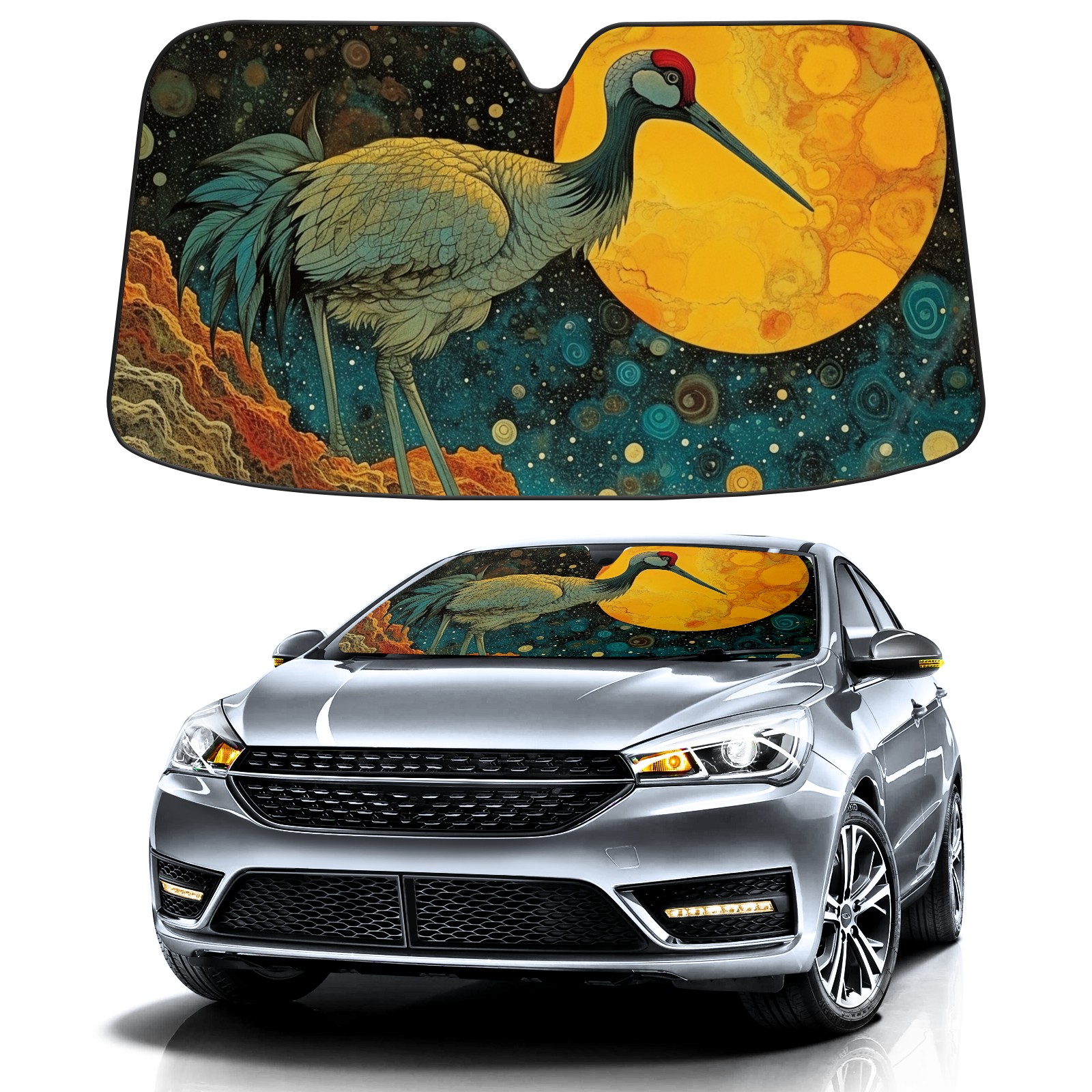 Car Windshield Sun Shade for Front Window Psychedelic Moebius Bird Foldable Vehicle Windshield Car Sun Visor Covers Automotive Window Protector Car Privacy Sun Blocker