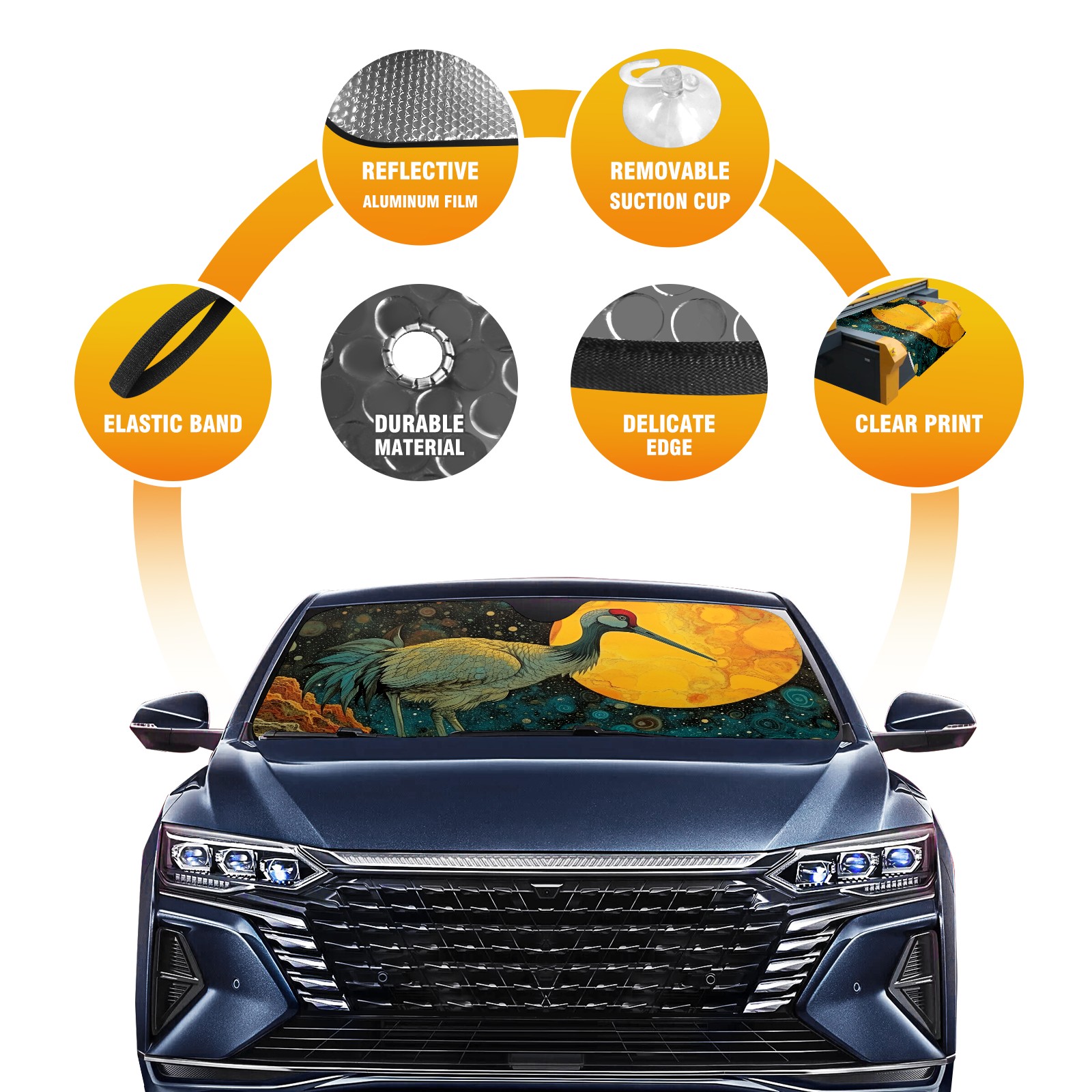 <b>ZXIVGOQFR Foldable Premium Car Windshield Sunshade is your great solution to reduce your car’s interior temperature dramatically! This is definitely a must-have item for your summer travel! </b> <br> ●<b>Size: 63"L x 33.5"W </b> <br></b> ●<b>Blocking Uv Rays & Heat Insulation<br></b> Our vehicle sunshade provides effective UV, sun, and summer heat protection .Maintains dashboards by preventing fading and cracking <br> ●<b>Easy-To-Store Folding Design Makes Storage Convenient <br></b> ZXIVGOQFR car sunshades come with removable suction cups and elastic bands that you can install easily and quickly, and the removable suction cups will not leave any marks on your windows when removed. Within seconds, windshield visor can be installed and removed. When not in use,the front windshield can be easily and effectively placed on the door pocket or the dashboard, which is beautiful and does not take up space in the car.<br> <br> <b>PUT UP A 'PROTECTIVE UMBRELLA' FOR YOUR BELOVED CAR!</b>