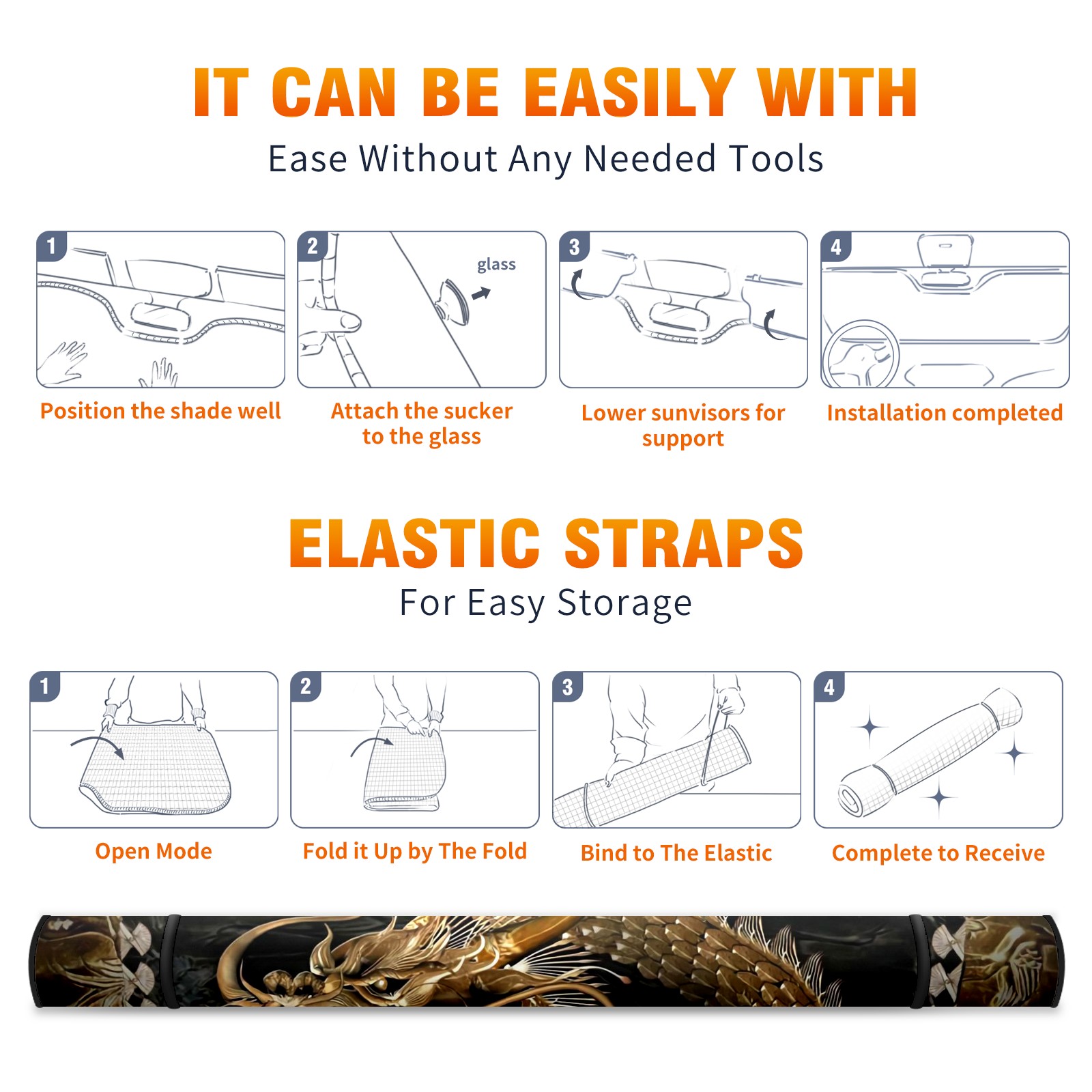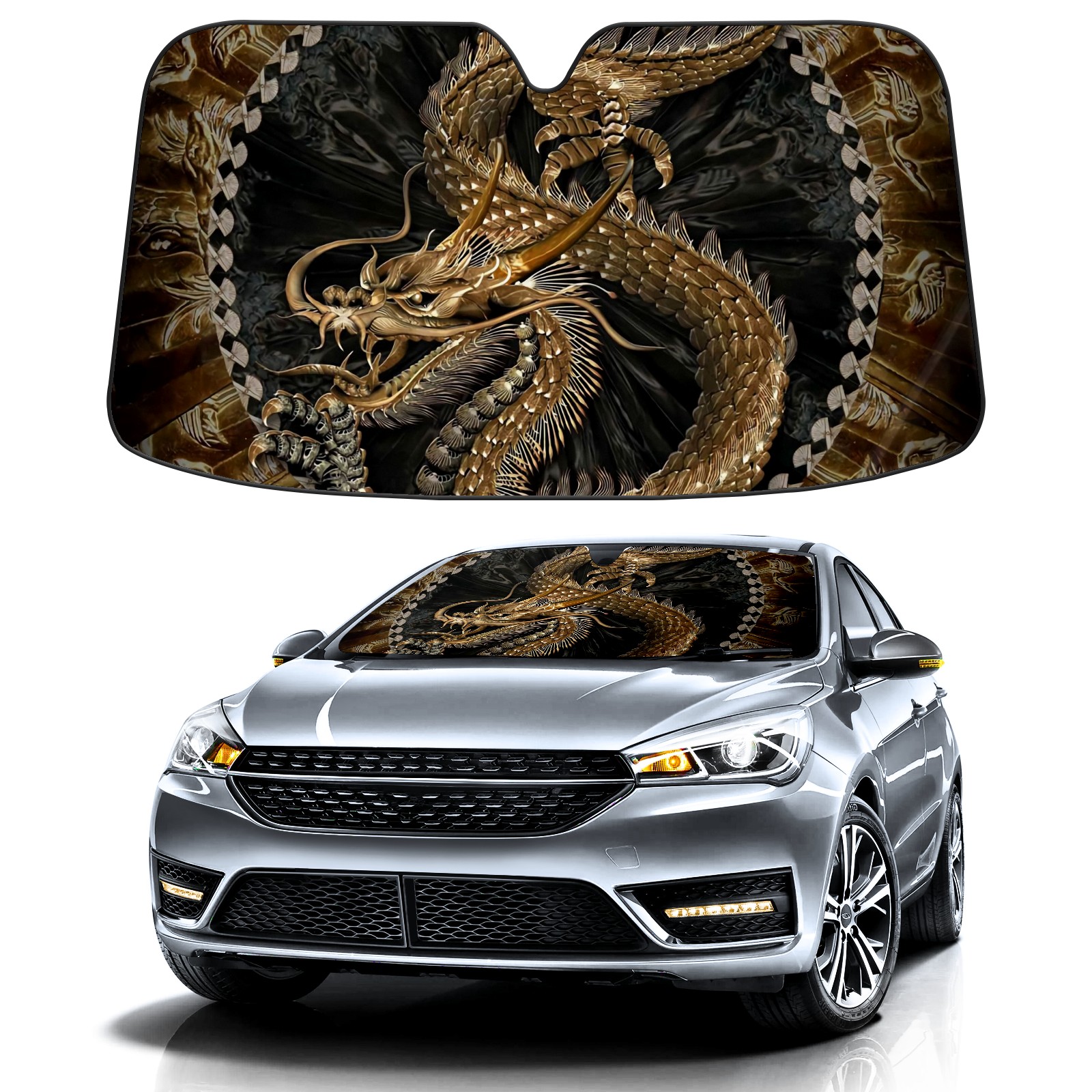 Car Windshield Sun Shade for Front Window Chinese Golden Dragon Foldable Vehicle Windshield Car Sun Visor Covers Automotive Window Protector Car Privacy Sun Blocker