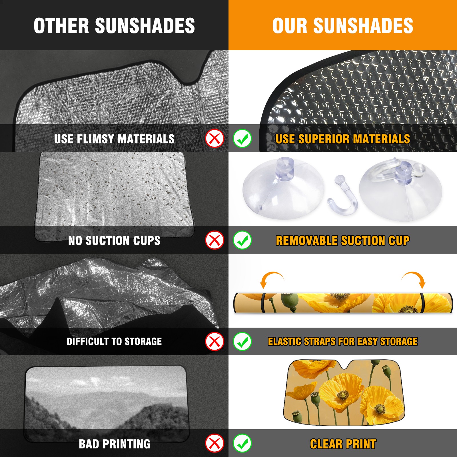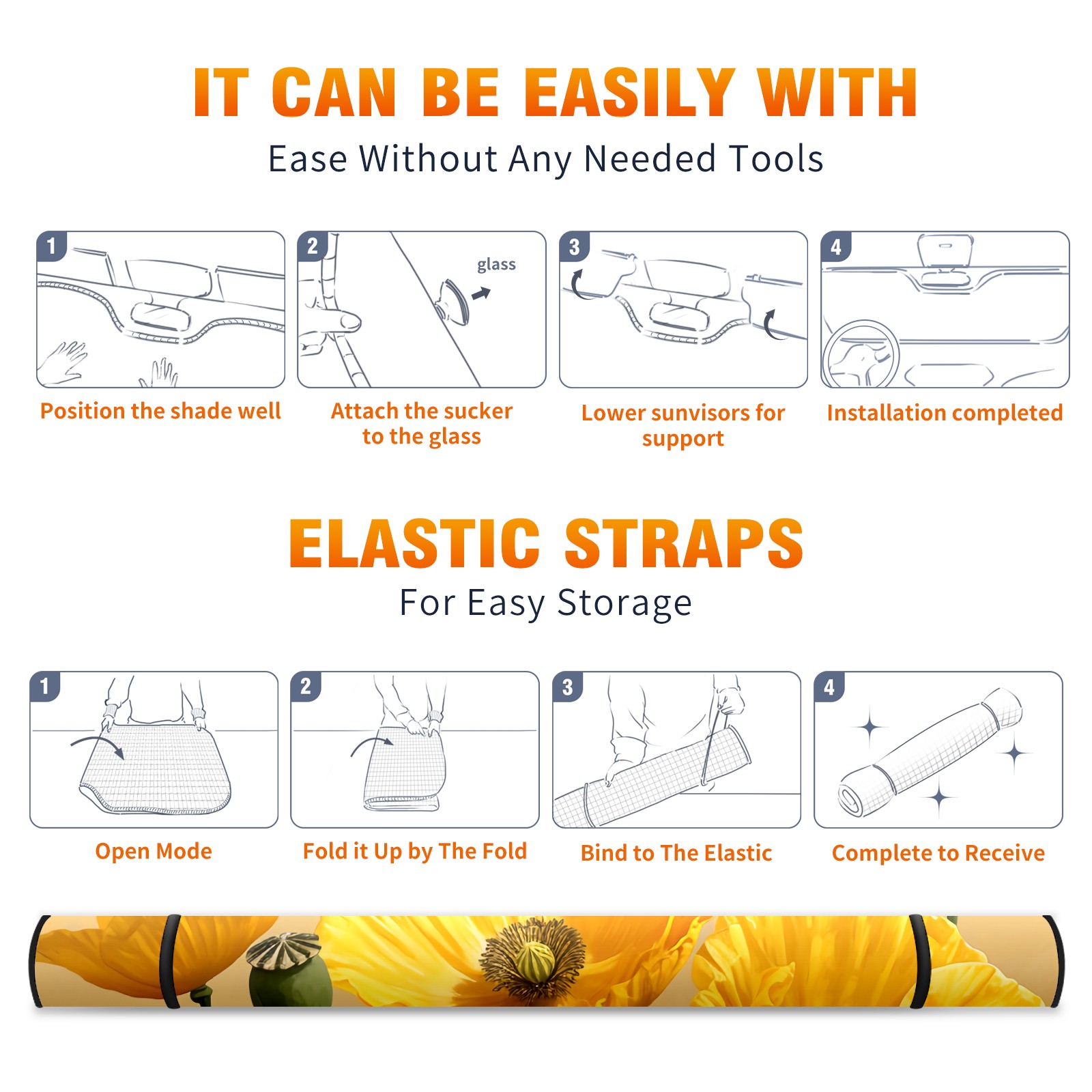 • <b>ZXIVGOQFR Foldable Premium Car Windshield Sunshade is your great solution to reduce your car’s interior temperature dramatically! This is definitely a must-have item for your summer travel! </b> <br> ●<b>Size: 63"L x 33.5"W </b> <br></b> ●<b>Blocking Uv Rays & Heat Insulation<br></b> Our vehicle sunshade provides effective UV, sun, and summer heat protection .Maintains dashboards by preventing fading and cracking <br> ●<b>Easy-To-Store Folding Design Makes Storage Convenient <br></b> ZXIVGOQFR car sunshades come with removable suction cups and elastic bands that you can install easily and quickly, and the removable suction cups will not leave any marks on your windows when removed. Within seconds, windshield visor can be installed and removed. When not in use,the front windshield can be easily and effectively placed on the door pocket or the dashboard, which is beautiful and does not take up space in the car.<br> <br> <b>PUT UP A 'PROTECTIVE UMBRELLA' FOR YOUR BELOVED CAR!</b>