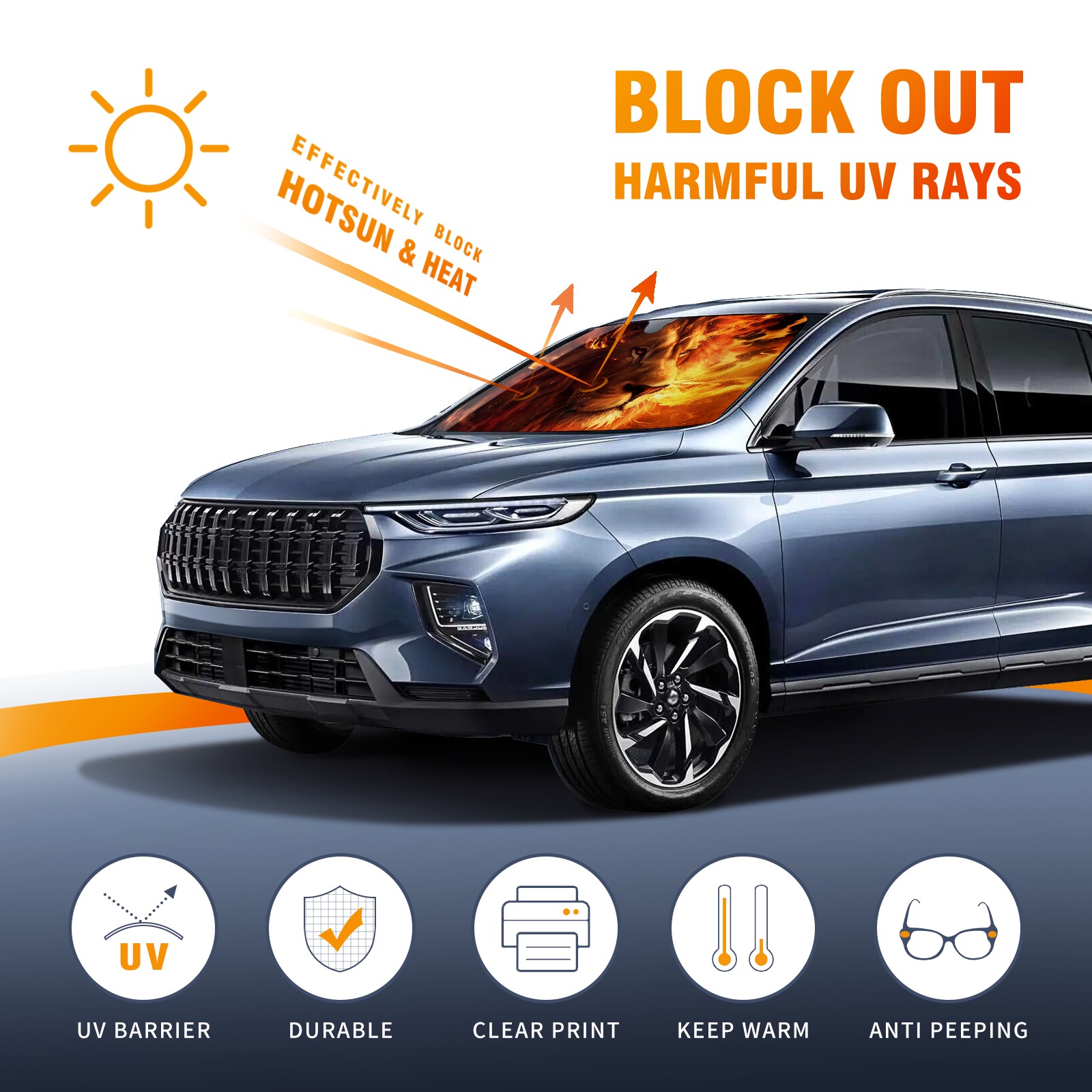 Car Windshield Sun Shade for Front Window Tiger Foldable Vehicle Windshield Car Sun Visor Covers Automotive Window Protector Car Privacy Sun Blocker
