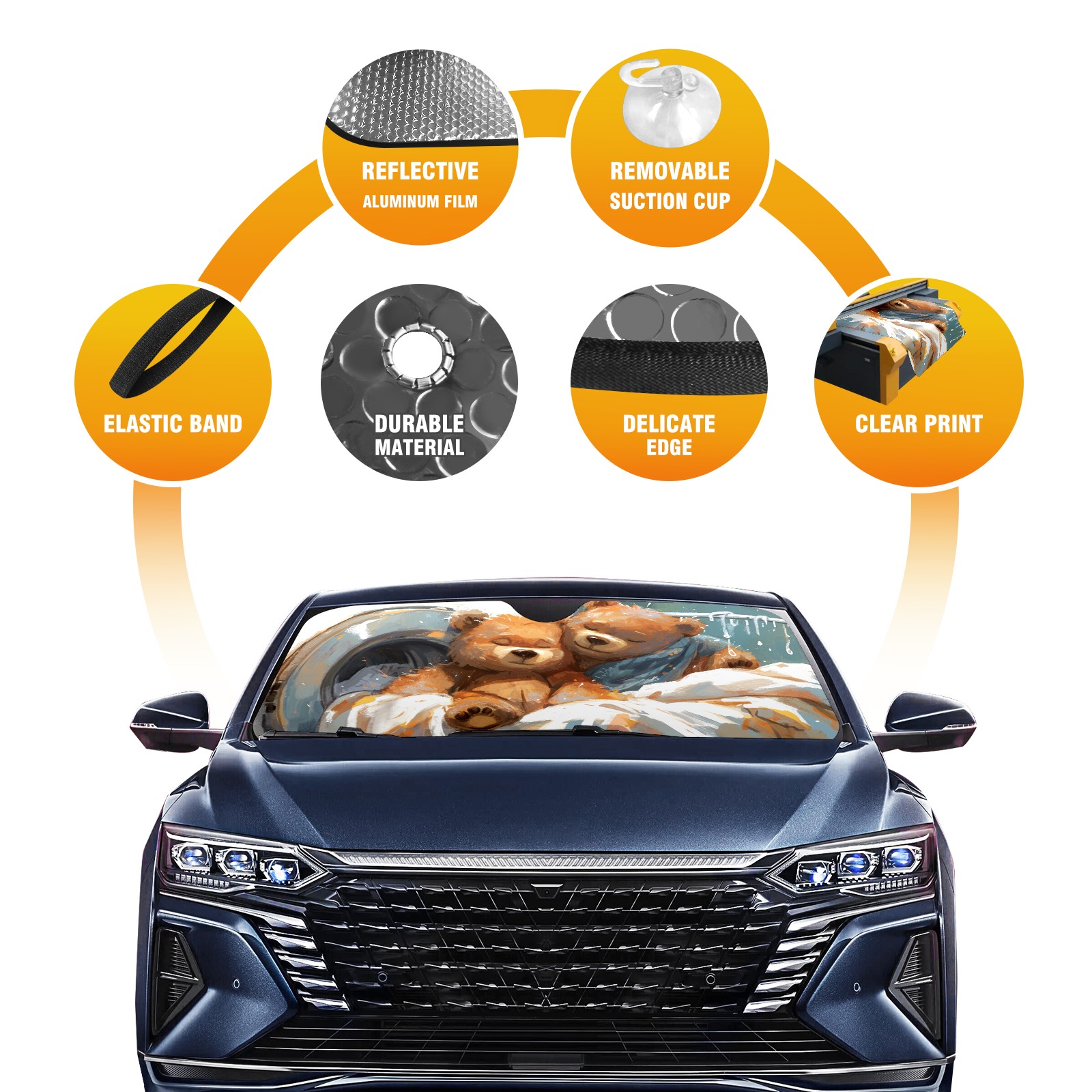 Car Windshield Sun Shade for Front Window Bear Foldable Vehicle Windshield Car Sun Visor Covers Automotive Window Protector Car Privacy Sun Blocker