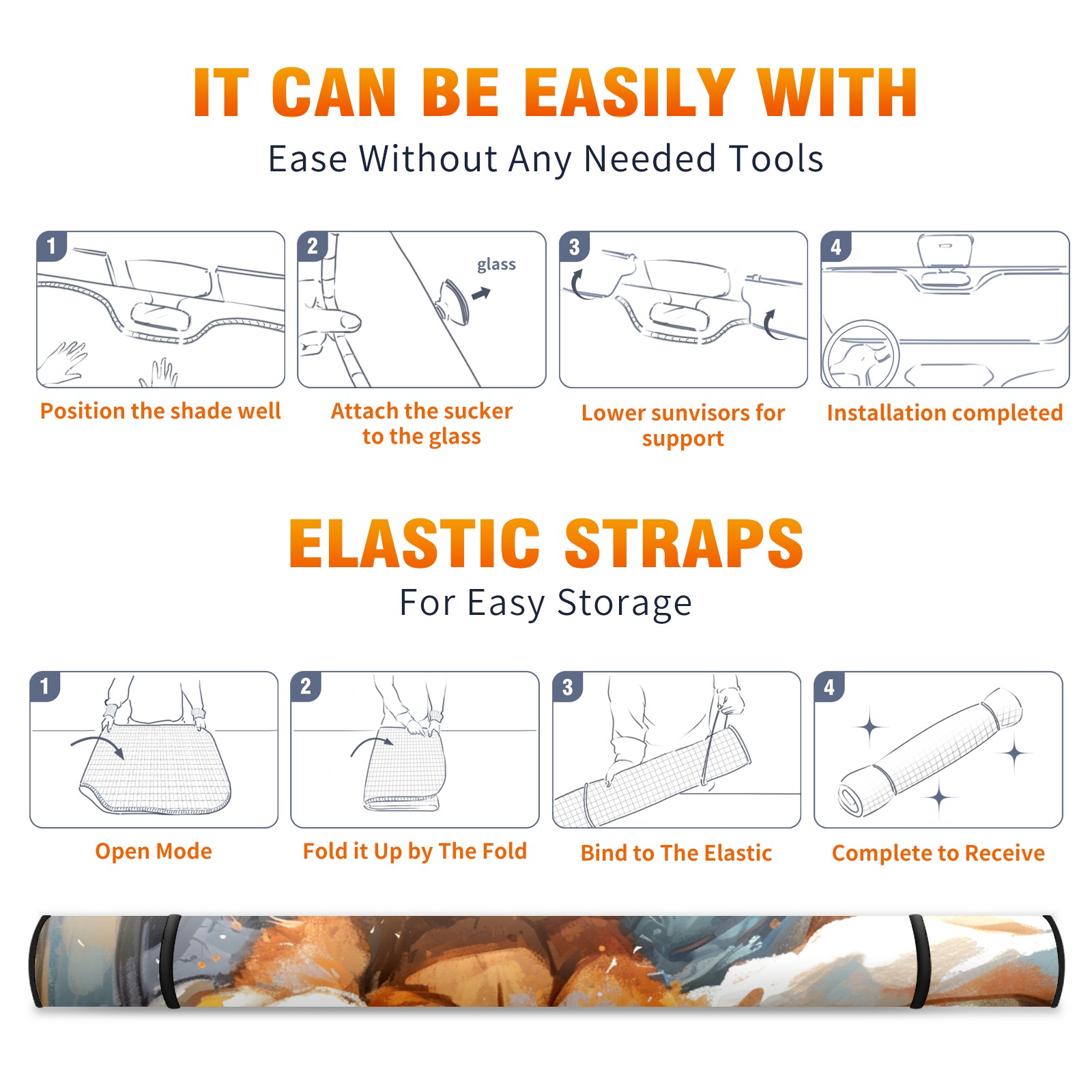 • <b>ZXIVGOQFR Foldable Premium Car Windshield Sunshade is your great solution to reduce your car’s interior temperature dramatically! This is definitely a must-have item for your summer travel! </b> <br> ●<b>Size: 63"L x 33.5"W </b> <br></b> ●<b>Blocking Uv Rays & Heat Insulation<br></b> Our vehicle sunshade provides effective UV, sun, and summer heat protection .Maintains dashboards by preventing fading and cracking <br> ●<b>Easy-To-Store Folding Design Makes Storage Convenient <br></b> ZXIVGOQFR car sunshades come with removable suction cups and elastic bands that you can install easily and quickly, and the removable suction cups will not leave any marks on your windows when removed. Within seconds, windshield visor can be installed and removed. When not in use,the front windshield can be easily and effectively placed on the door pocket or the dashboard, which is beautiful and does not take up space in the car.<br> <br> <b>PUT UP A 'PROTECTIVE UMBRELLA' FOR YOUR BELOVED CAR!</b>