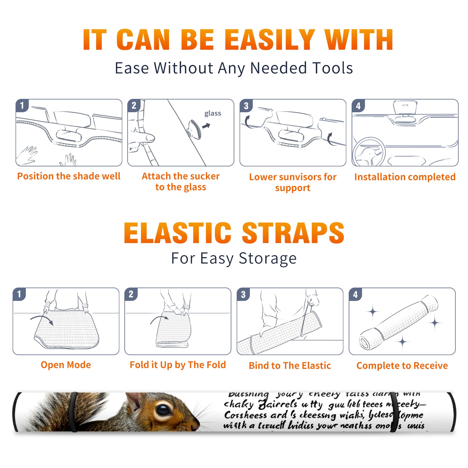 Car Windshield Sun Shade for Front Window Squirrel Foldable Vehicle Windshield Car Sun Visor Covers Automotive Window Protector Car Privacy Sun Blocker