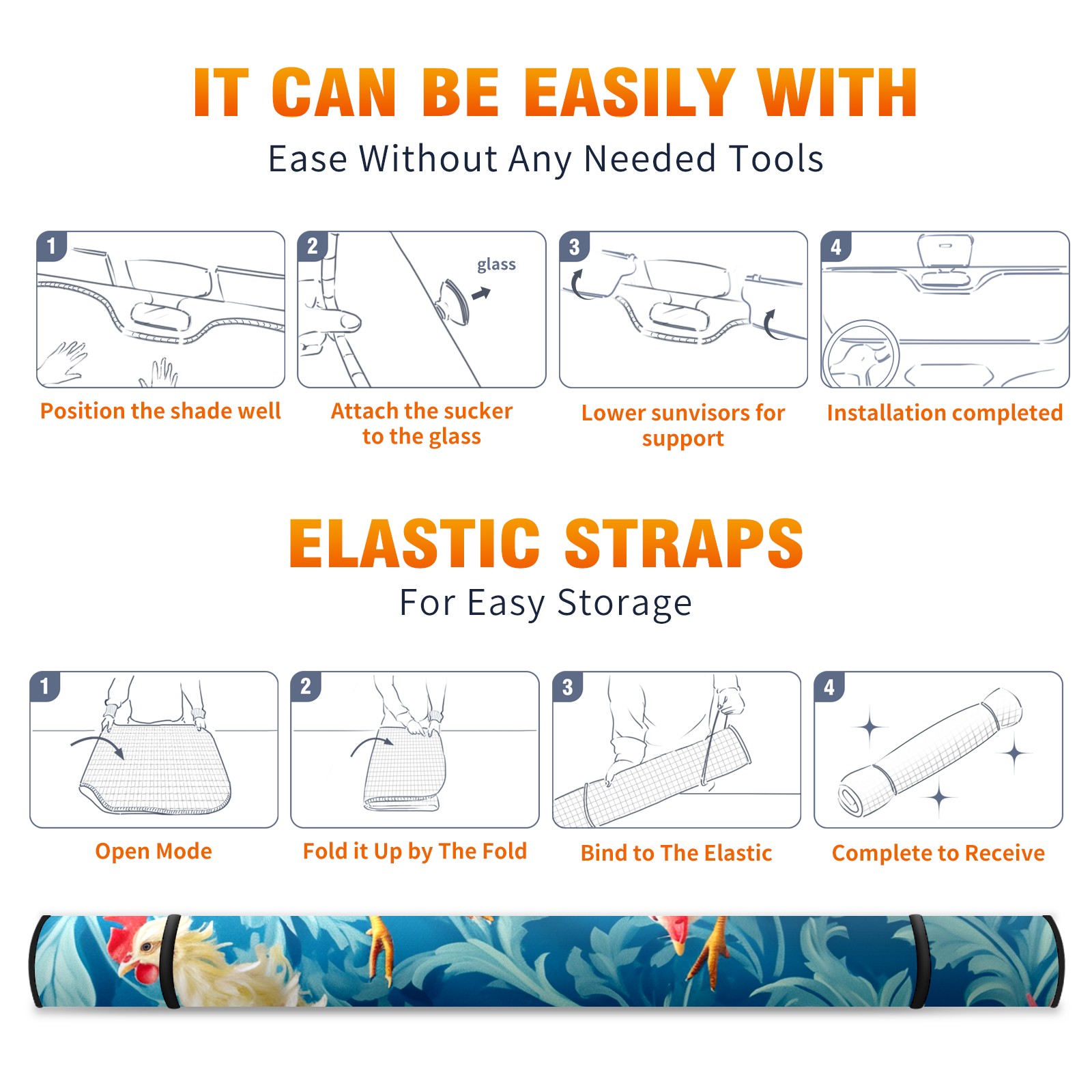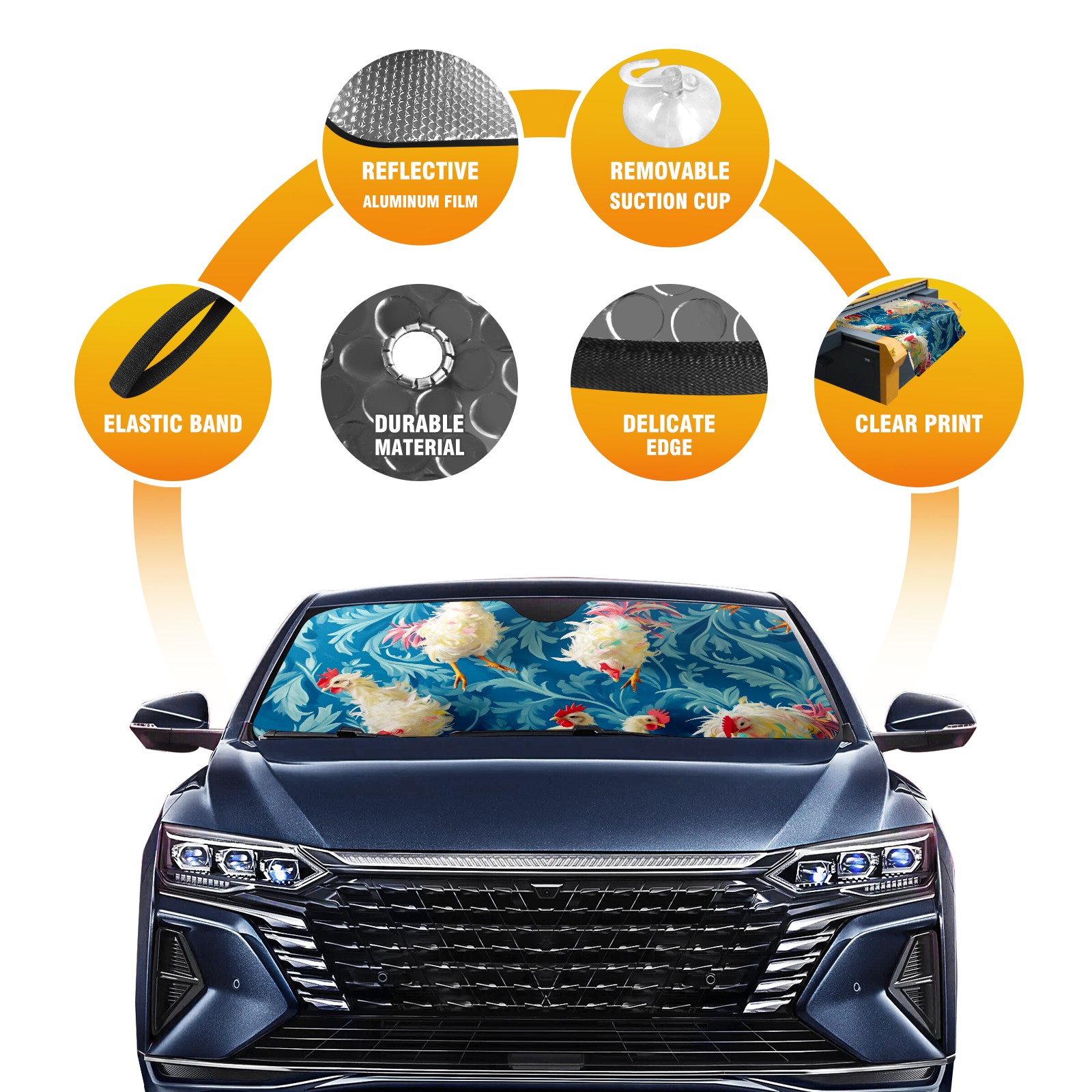 Car Windshield Sun Shade for Front Window Chicken Foldable Vehicle Windshield Car Sun Visor Covers Automotive Window Protector Car Privacy Sun Blocker