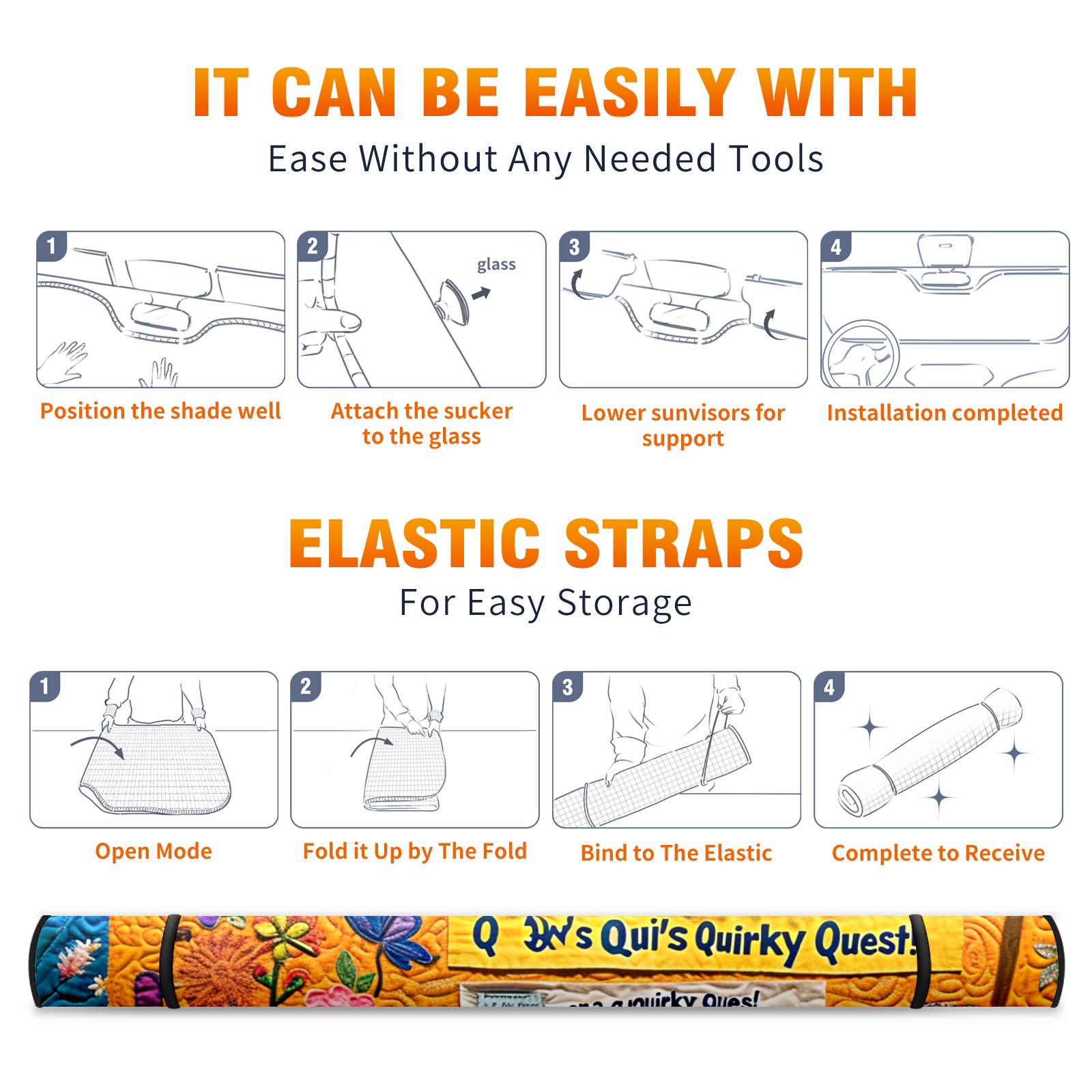 <b>ZXIVGOQFR Foldable Premium Car Windshield Sunshade is your great solution to reduce your car’s interior temperature dramatically! This is definitely a must-have item for your summer travel! </b> <br> ●<b>Size: 63"L x 33.5"W </b> <br></b> ●<b>Blocking Uv Rays & Heat Insulation<br></b> Our vehicle sunshade provides effective UV, sun, and summer heat protection .Maintains dashboards by preventing fading and cracking <br> ●<b>Easy-To-Store Folding Design Makes Storage Convenient <br></b> ZXIVGOQFR car sunshades come with removable suction cups and elastic bands that you can install easily and quickly, and the removable suction cups will not leave any marks on your windows when removed. Within seconds, windshield visor can be installed and removed. When not in use,the front windshield can be easily and effectively placed on the door pocket or the dashboard, which is beautiful and does not take up space in the car.<br> <br> <b>PUT UP A 'PROTECTIVE UMBRELLA' FOR YOUR BELOVED CAR!</b>