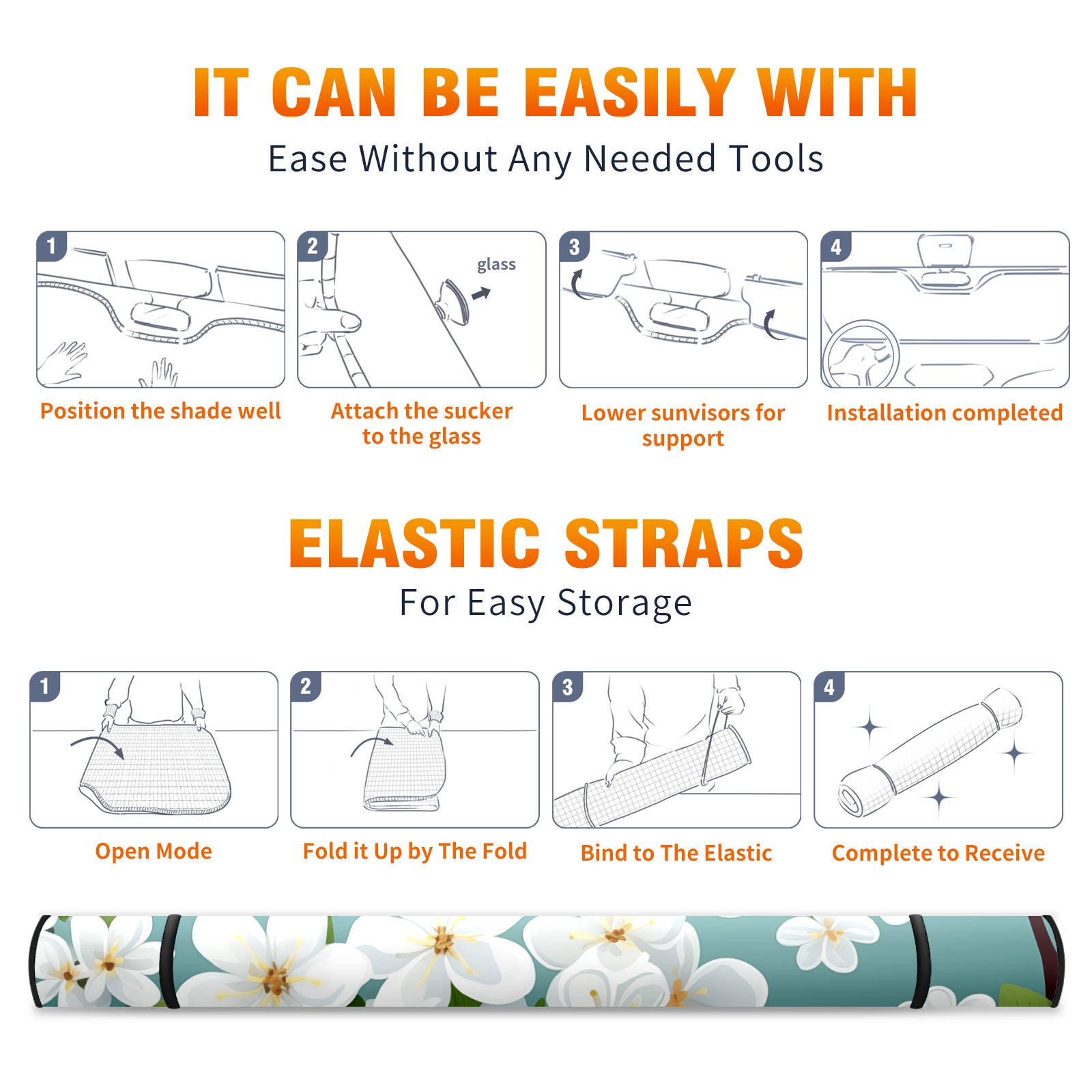 • <b>ZXIVGOQFR Foldable Premium Car Windshield Sunshade is your great solution to reduce your car’s interior temperature dramatically! This is definitely a must-have item for your summer travel! </b> <br> ●<b>Size: 63"L x 33.5"W </b> <br></b> ●<b>Blocking Uv Rays & Heat Insulation<br></b> Our vehicle sunshade provides effective UV, sun, and summer heat protection .Maintains dashboards by preventing fading and cracking <br> ●<b>Easy-To-Store Folding Design Makes Storage Convenient <br></b> ZXIVGOQFR car sunshades come with removable suction cups and elastic bands that you can install easily and quickly, and the removable suction cups will not leave any marks on your windows when removed. Within seconds, windshield visor can be installed and removed. When not in use,the front windshield can be easily and effectively placed on the door pocket or the dashboard, which is beautiful and does not take up space in the car.<br> <br> <b>PUT UP A 'PROTECTIVE UMBRELLA' FOR YOUR BELOVED CAR!</b>