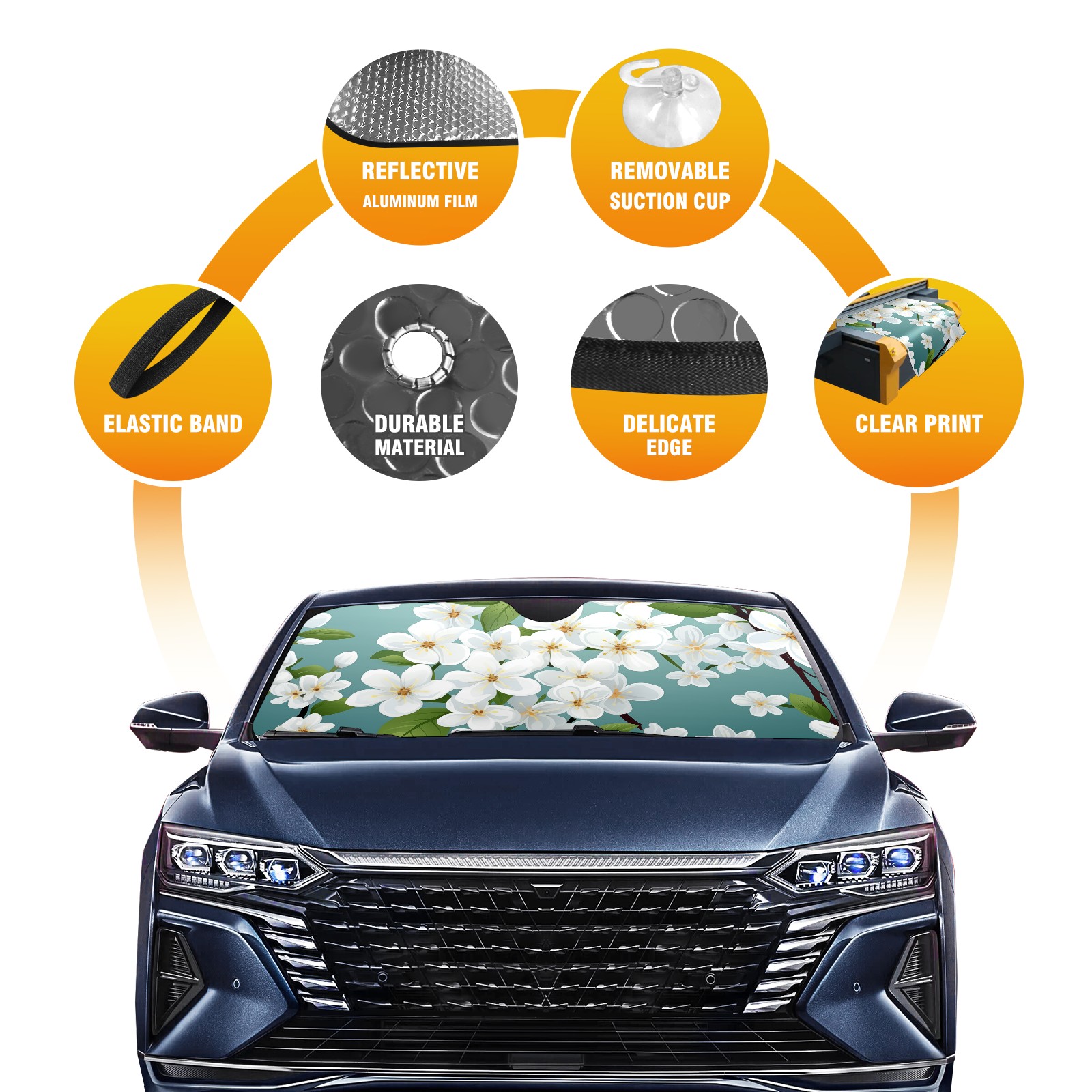 Car Windshield Sun Shade for Front Window Pretty Flowers A Foldable Vehicle Windshield Car Sun Visor Covers Automotive Window Protector Car Privacy Sun Blocker