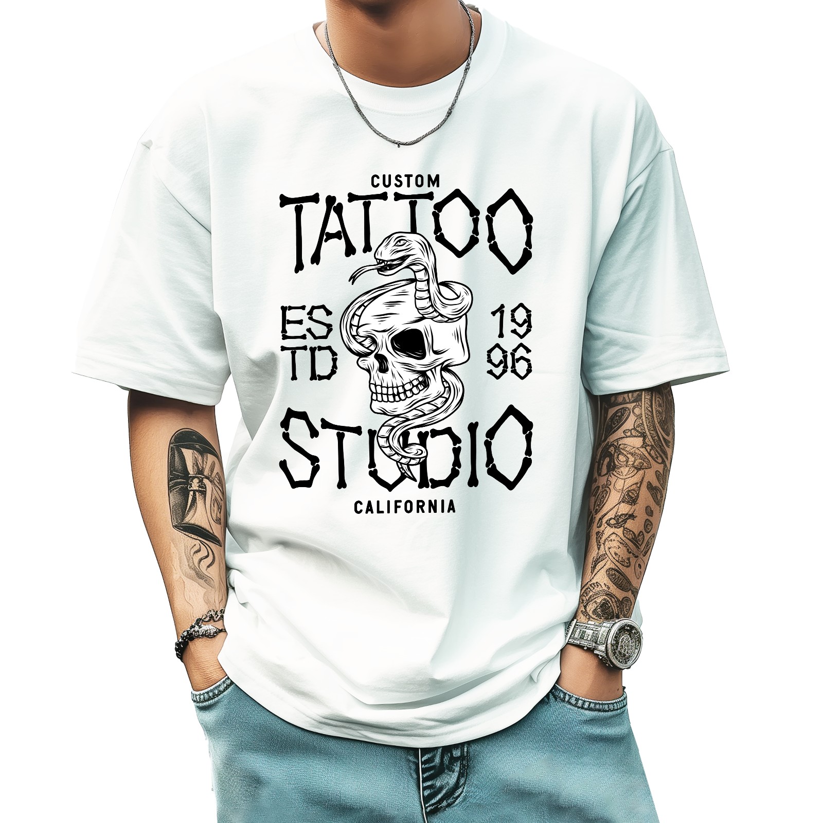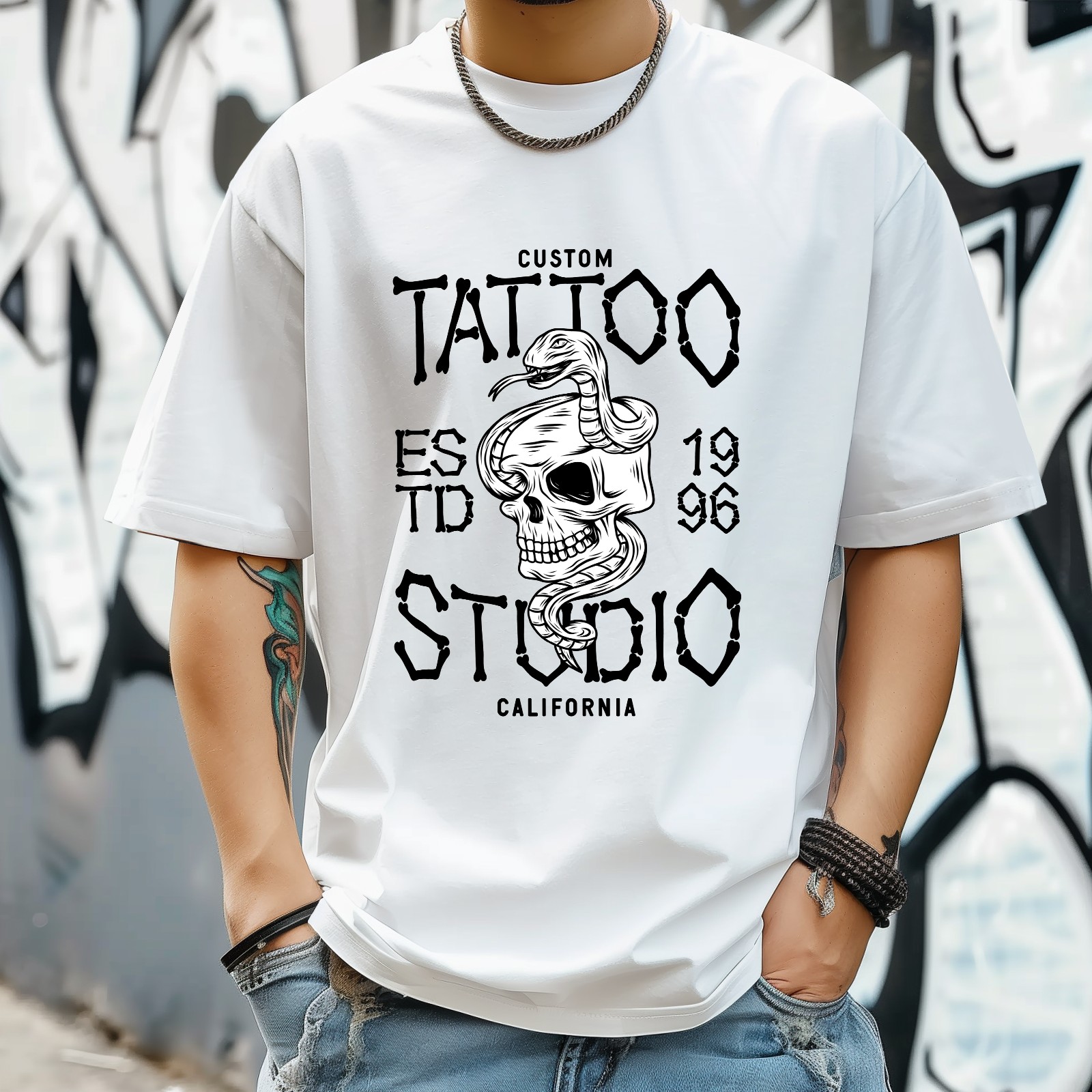 Tatto Studio T-Shirt for Man Tops Short Sleeves Shirt Crew Neck Shirt XS