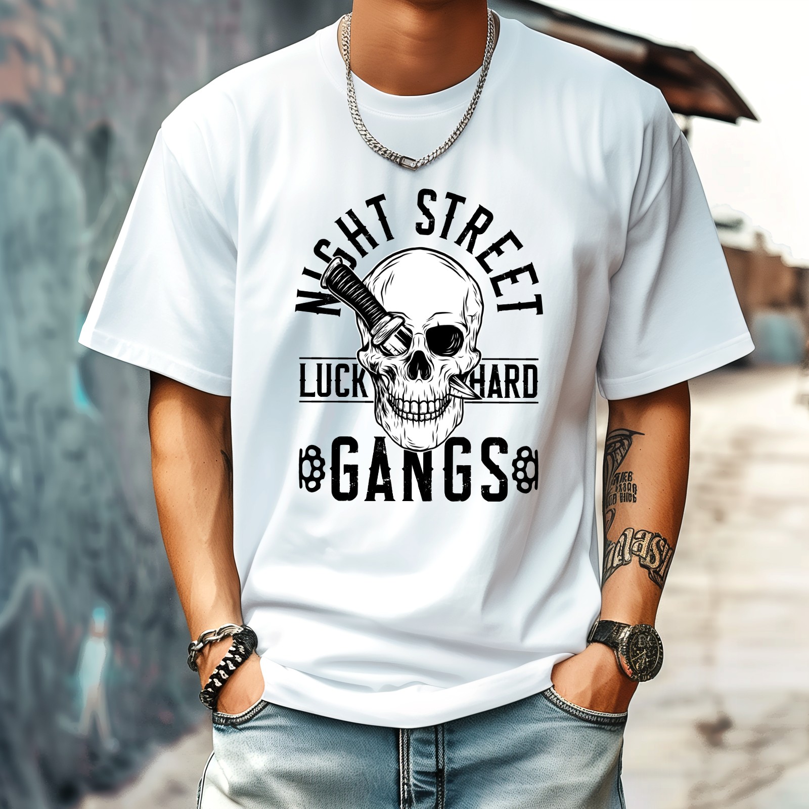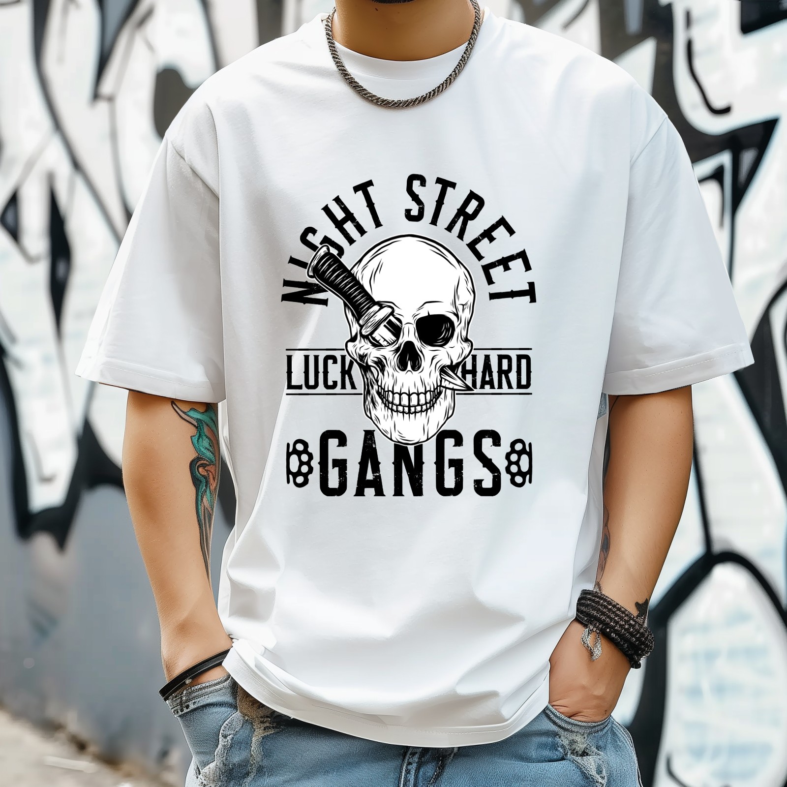 Wisht Street T-Shirt for Man Tops Short Sleeves Shirt Crew Neck Shirt XS