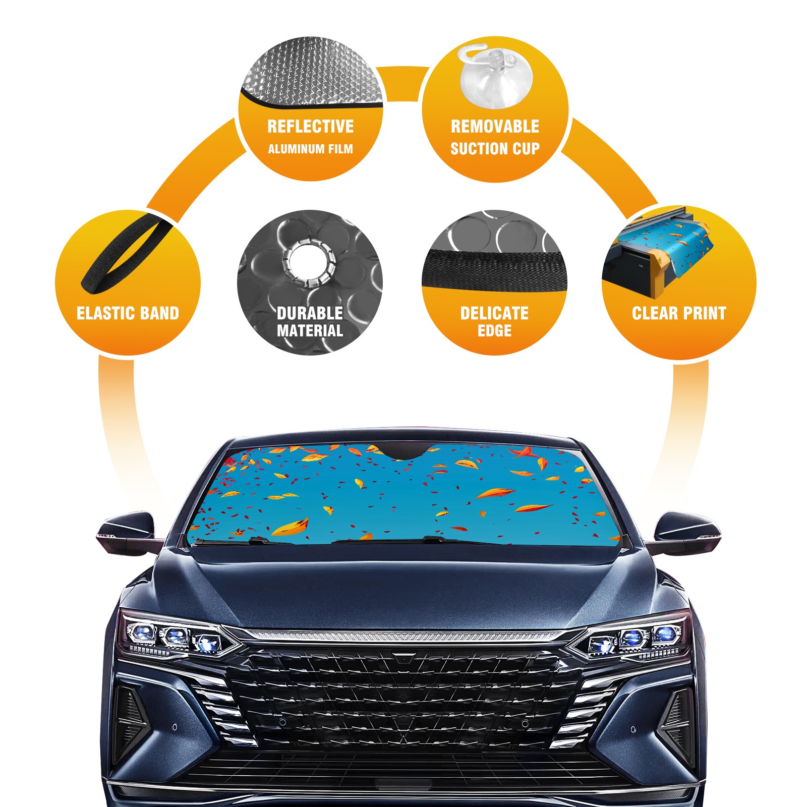 <b>ZXIVGOQFR Foldable Premium Car Windshield Sunshade is your great solution to reduce your car’s interior temperature dramatically! This is definitely a must-have item for your summer travel! </b> <br> ●<b>Size: 63"L x 33.5"W </b> <br></b> ●<b>Blocking Uv Rays & Heat Insulation<br></b> Our vehicle sunshade provides effective UV, sun, and summer heat protection .Maintains dashboards by preventing fading and cracking <br> ●<b>Easy-To-Store Folding Design Makes Storage Convenient <br></b> ZXIVGOQFR car sunshades come with removable suction cups and elastic bands that you can install easily and quickly, and the removable suction cups will not leave any marks on your windows when removed. Within seconds, windshield visor can be installed and removed. When not in use,the front windshield can be easily and effectively placed on the door pocket or the dashboard, which is beautiful and does not take up space in the car.<br> <br> <b>PUT UP A 'PROTECTIVE UMBRELLA' FOR YOUR BELOVED CAR!</b>