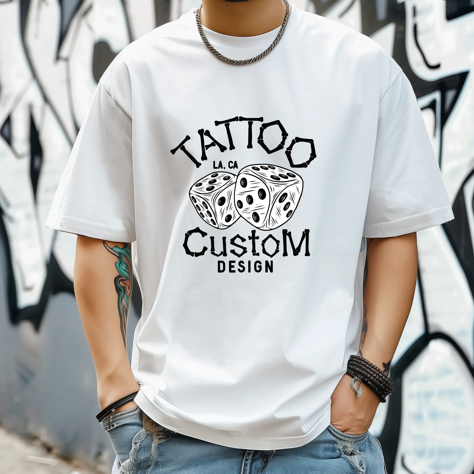 Tattoo T-Shirt for Man Tops Short Sleeves Shirt Crew Neck Shirt XS