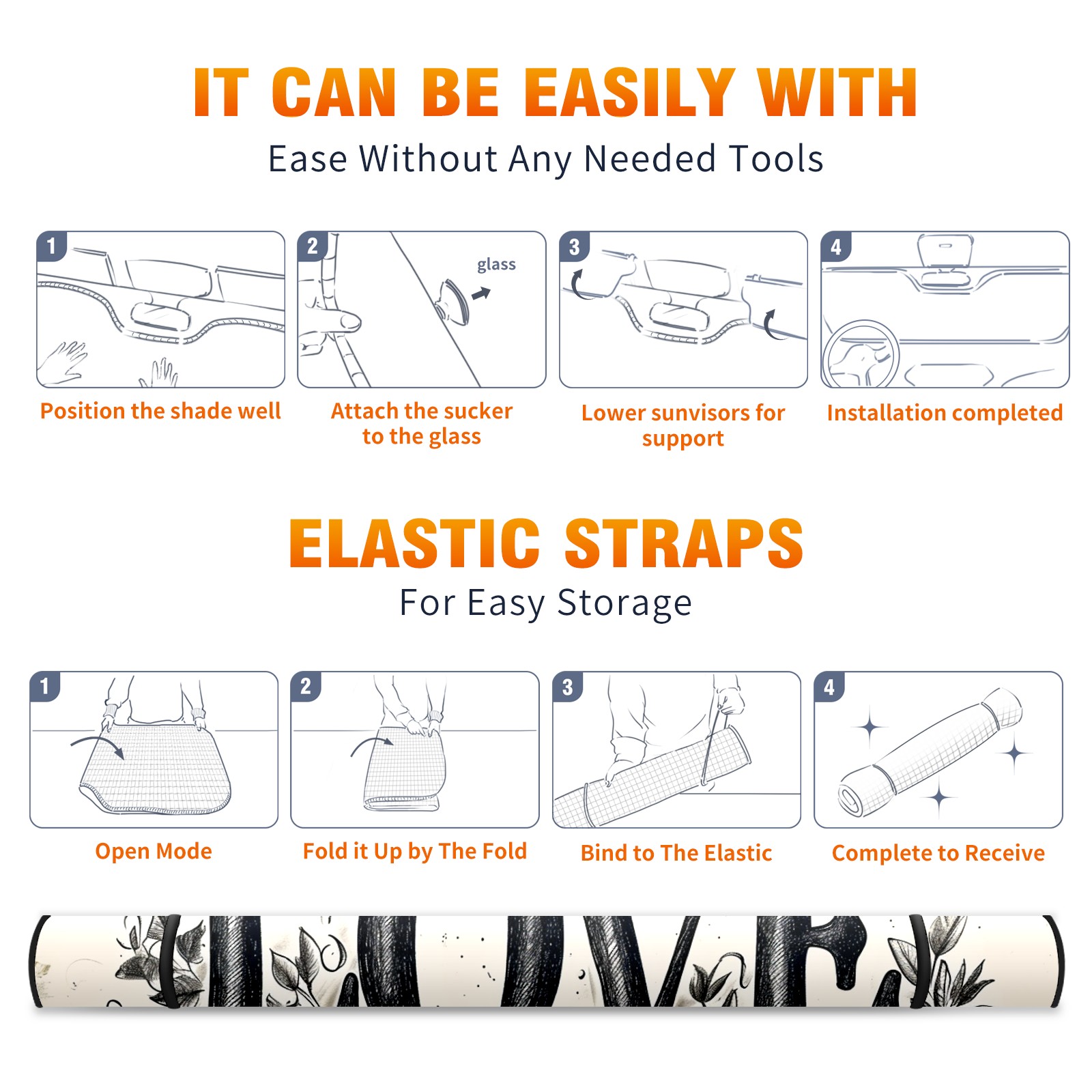 <b>ZXIVGOQFR Foldable Premium Car Windshield Sunshade is your great solution to reduce your car’s interior temperature dramatically! This is definitely a must-have item for your summer travel! </b> <br> ●<b>Size: 63"L x 33.5"W </b> <br></b> ●<b>Blocking Uv Rays & Heat Insulation<br></b> Our vehicle sunshade provides effective UV, sun, and summer heat protection .Maintains dashboards by preventing fading and cracking <br> ●<b>Easy-To-Store Folding Design Makes Storage Convenient <br></b> ZXIVGOQFR car sunshades come with removable suction cups and elastic bands that you can install easily and quickly, and the removable suction cups will not leave any marks on your windows when removed. Within seconds, windshield visor can be installed and removed. When not in use,the front windshield can be easily and effectively placed on the door pocket or the dashboard, which is beautiful and does not take up space in the car.<br> <br> <b>PUT UP A 'PROTECTIVE UMBRELLA' FOR YOUR BELOVED CAR!</b>