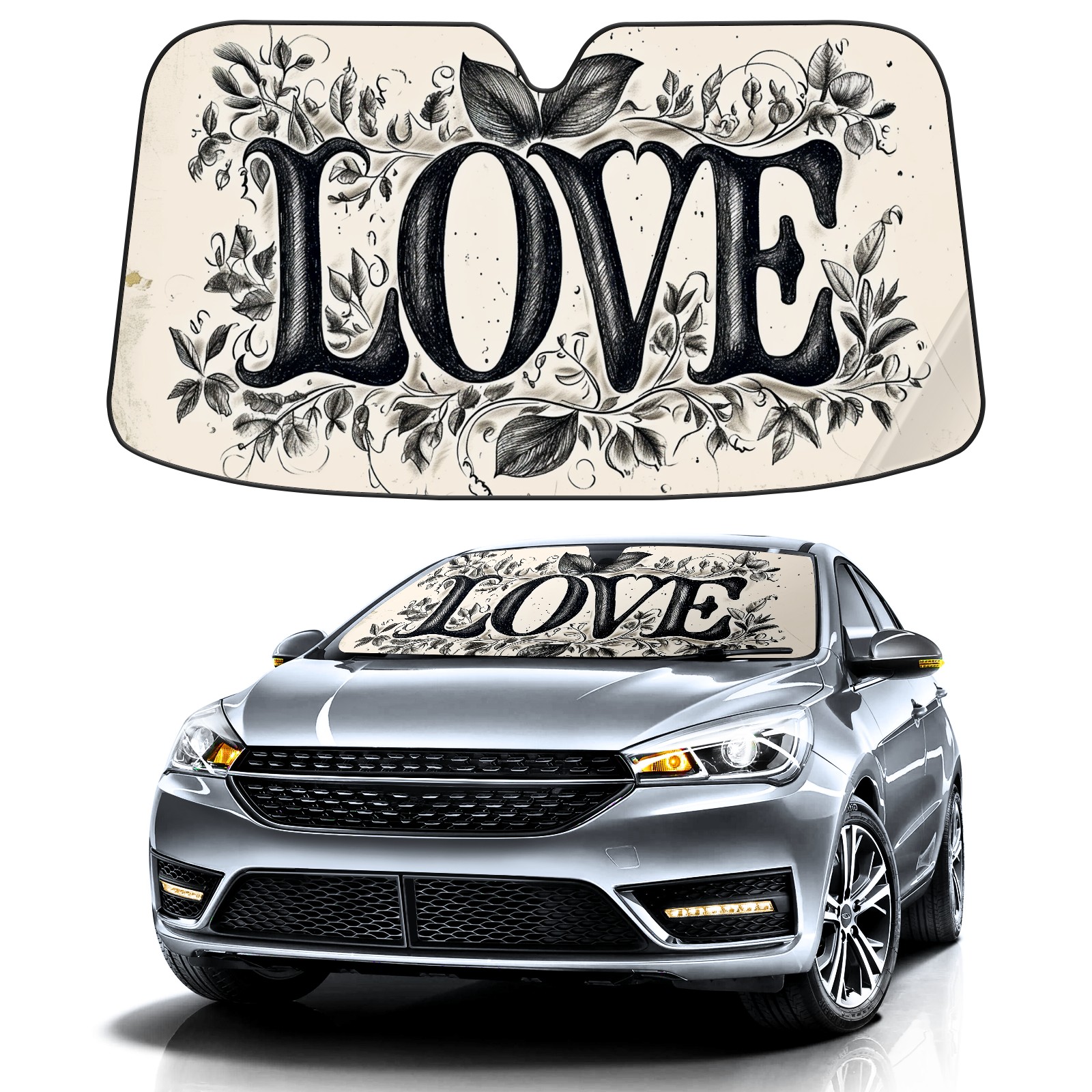 Car Windshield Sun Shade for Front Window LOVE 1 Foldable Vehicle Windshield Car Sun Visor Covers Automotive Window Protector Car Privacy Sun Blocker