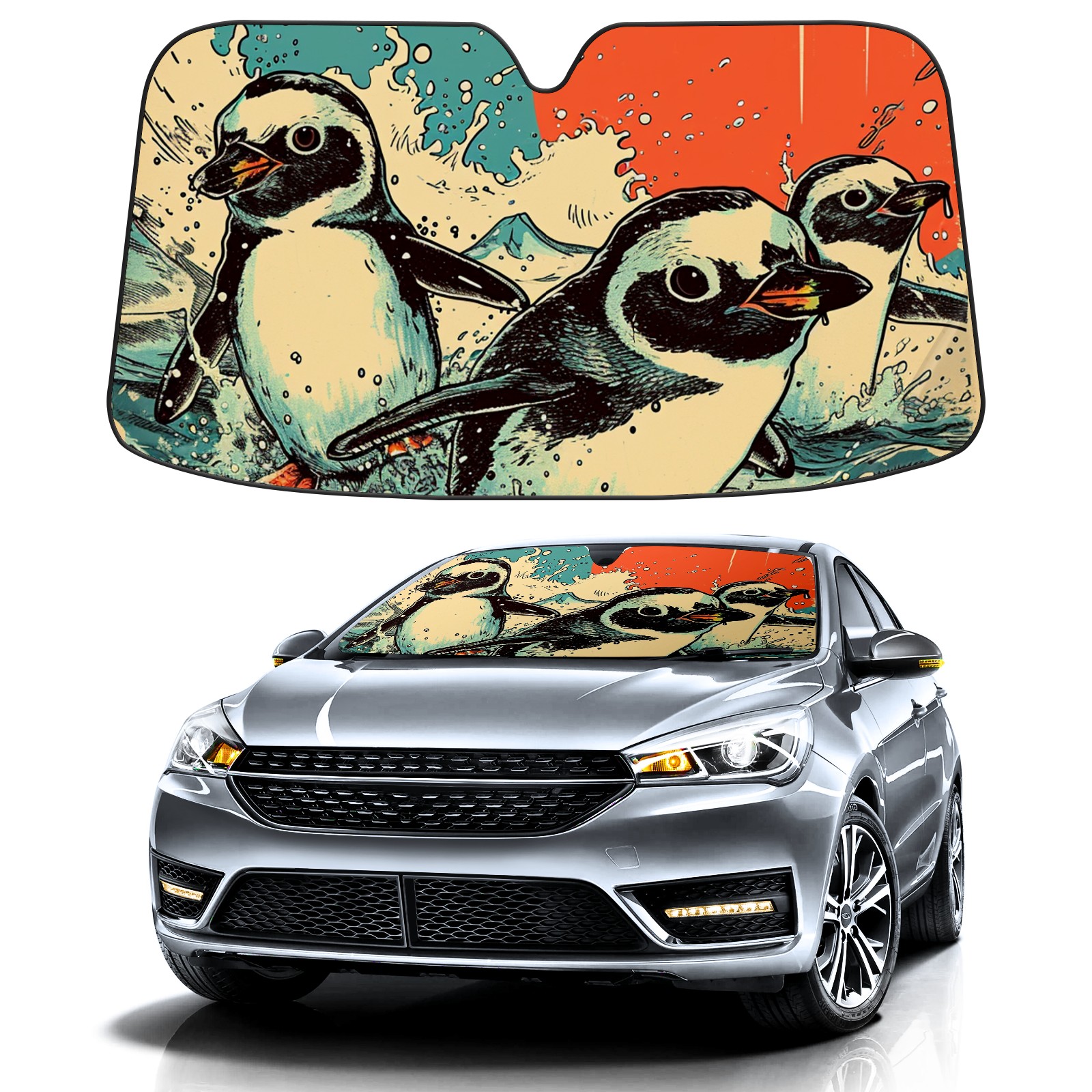 Car Windshield Sun Shade for Front Window Cute Little Penguins 2 Foldable Vehicle Windshield Car Sun Visor Covers Automotive Window Protector Car Privacy Sun Blocker