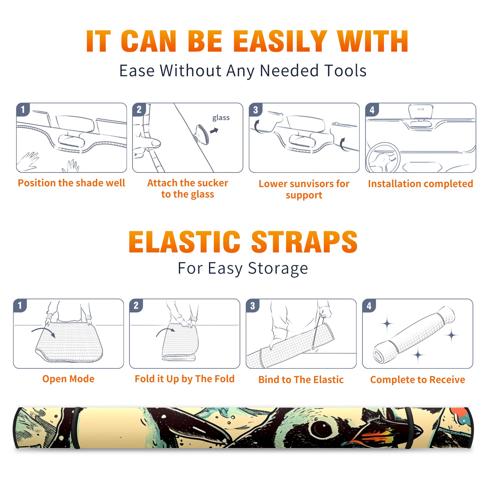 • <b>ZXIVGOQFR Foldable Premium Car Windshield Sunshade is your great solution to reduce your car’s interior temperature dramatically! This is definitely a must-have item for your summer travel! </b> <br> ●<b>Size: 63"L x 33.5"W </b> <br></b> ●<b>Blocking Uv Rays & Heat Insulation<br></b> Our vehicle sunshade provides effective UV, sun, and summer heat protection .Maintains dashboards by preventing fading and cracking <br> ●<b>Easy-To-Store Folding Design Makes Storage Convenient <br></b> ZXIVGOQFR car sunshades come with removable suction cups and elastic bands that you can install easily and quickly, and the removable suction cups will not leave any marks on your windows when removed. Within seconds, windshield visor can be installed and removed. When not in use,the front windshield can be easily and effectively placed on the door pocket or the dashboard, which is beautiful and does not take up space in the car.<br> <br> <b>PUT UP A 'PROTECTIVE UMBRELLA' FOR YOUR BELOVED CAR!</b>