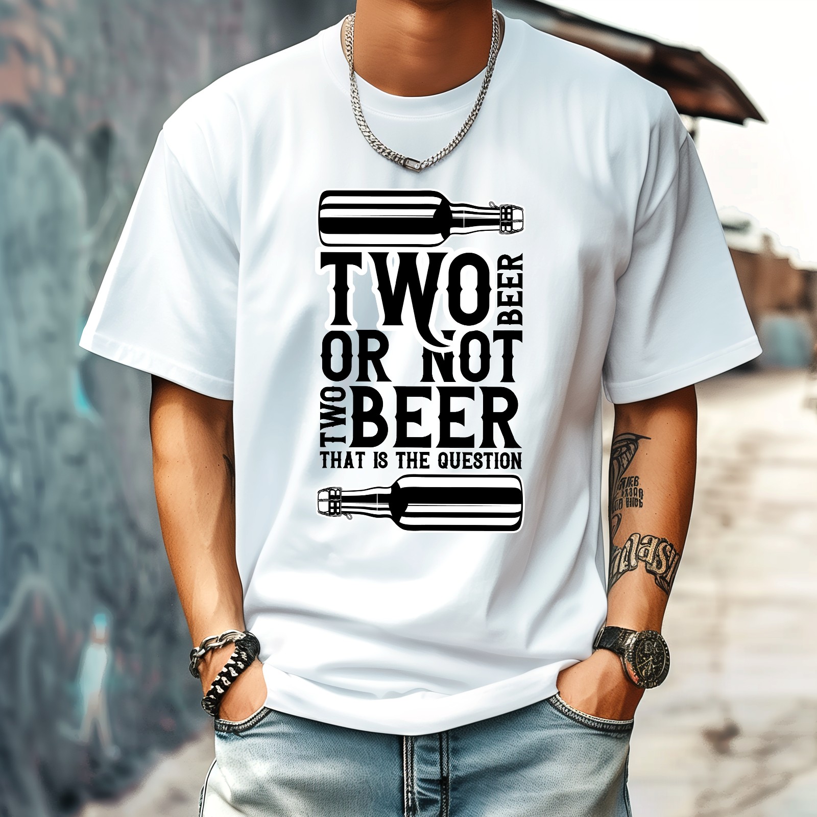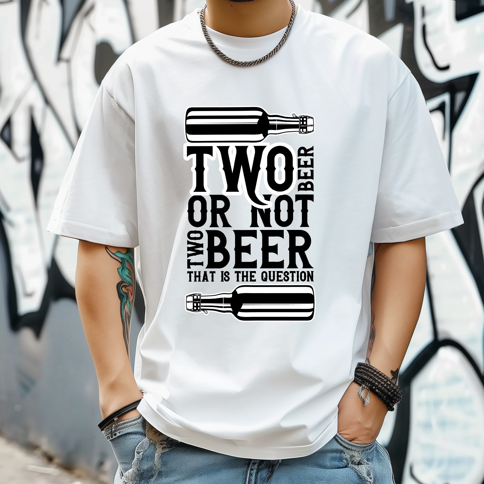 Two Beer T-Shirt for Man Tops Short Sleeves Shirt Crew Neck Shirt XS